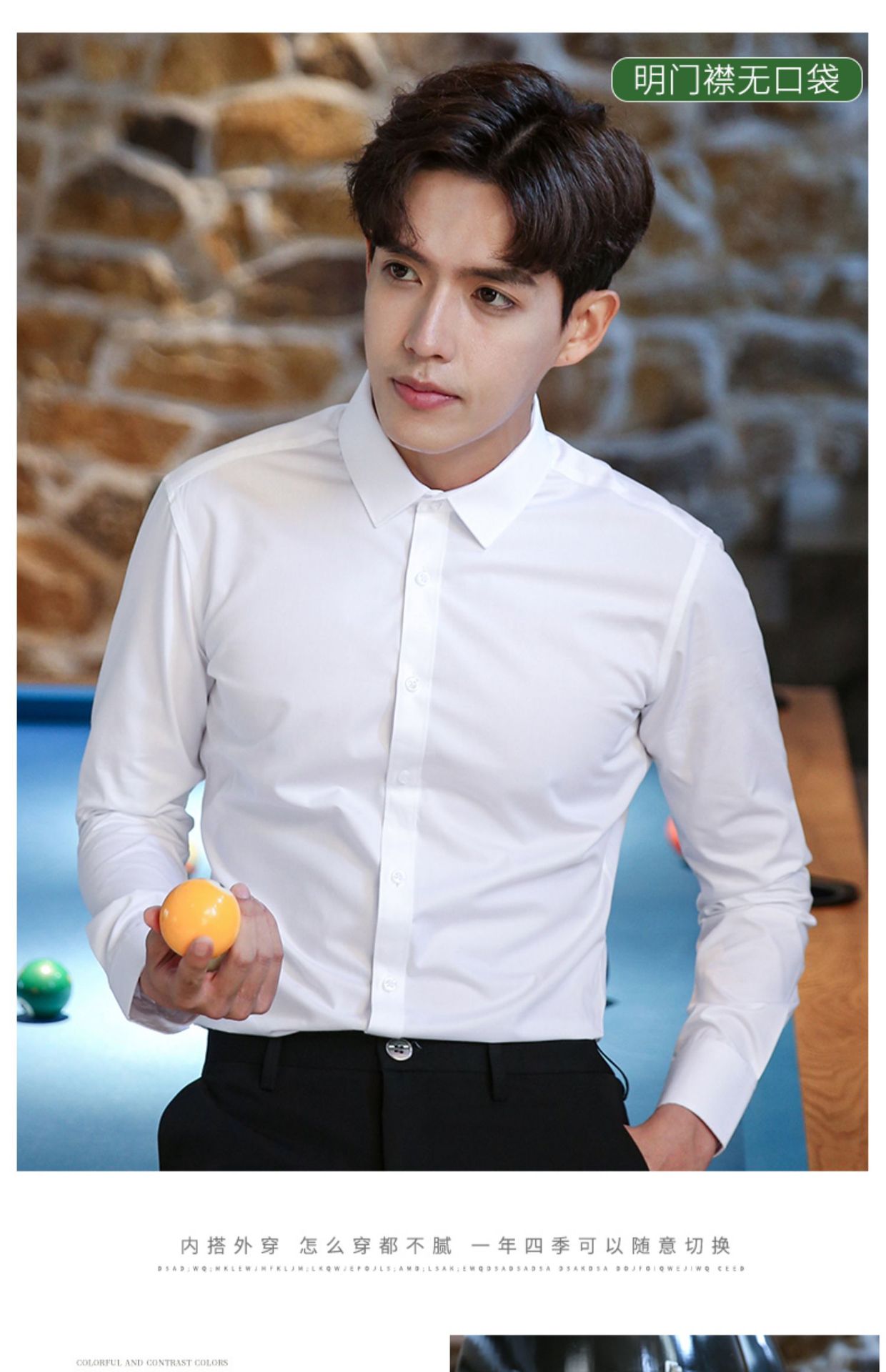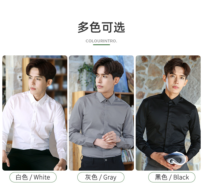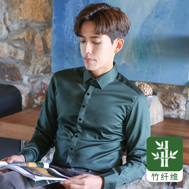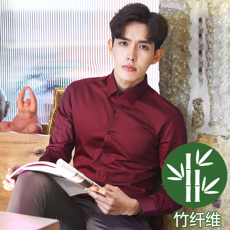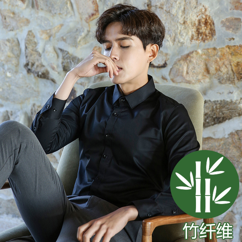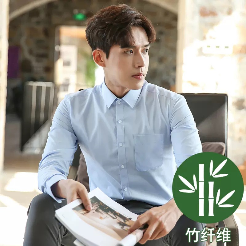 2024 봄 새 셔츠 남성 흰색 대나무 섬유 긴 소매 비 다림질 셔츠 남성 전문 원피스 머리카락 세대
