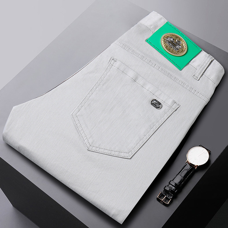 2023 봄과 여름 얇은 고급 유럽 남성 청바지 청소년 슬림핏 스몰 스트레이트 스트레치 코튼 캐주얼 팬츠