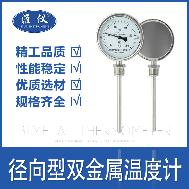 전문가용 방사형 바이메탈 온도계 산업용 wss311/411 온도계 보일러 파이프 온도계