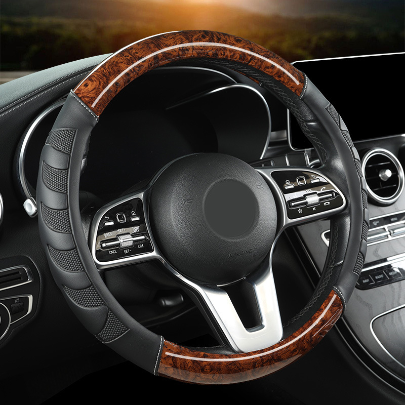 XF673 아마존 폭발 우드 그레인 탄소 섬유 자동차 사계절 핸들 커버 무취 환경 보호 스포츠 핸들 커버