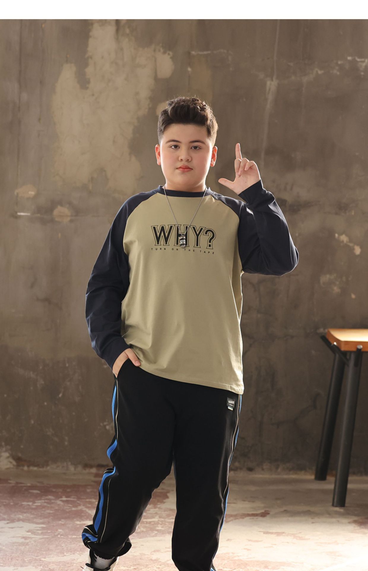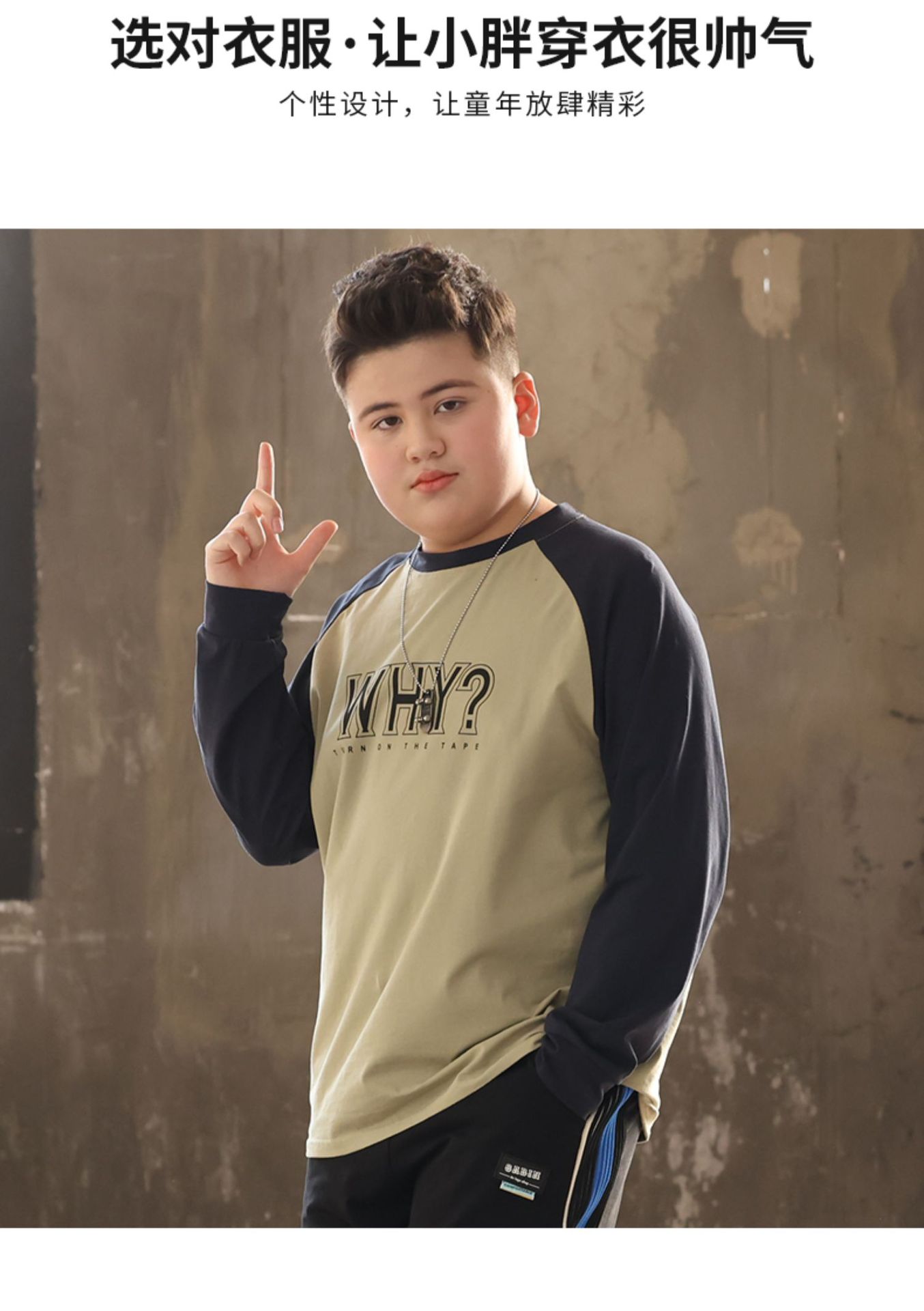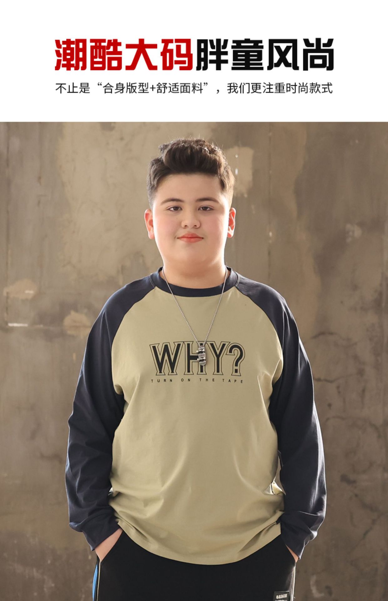 통통한 아동용 긴팔 티셔츠 남아 봄과 가을 플러스 사이즈 아동복 대형 아동용 플러스 사이즈 통통한 남아 롱 티셔츠 라운드 넥 탑