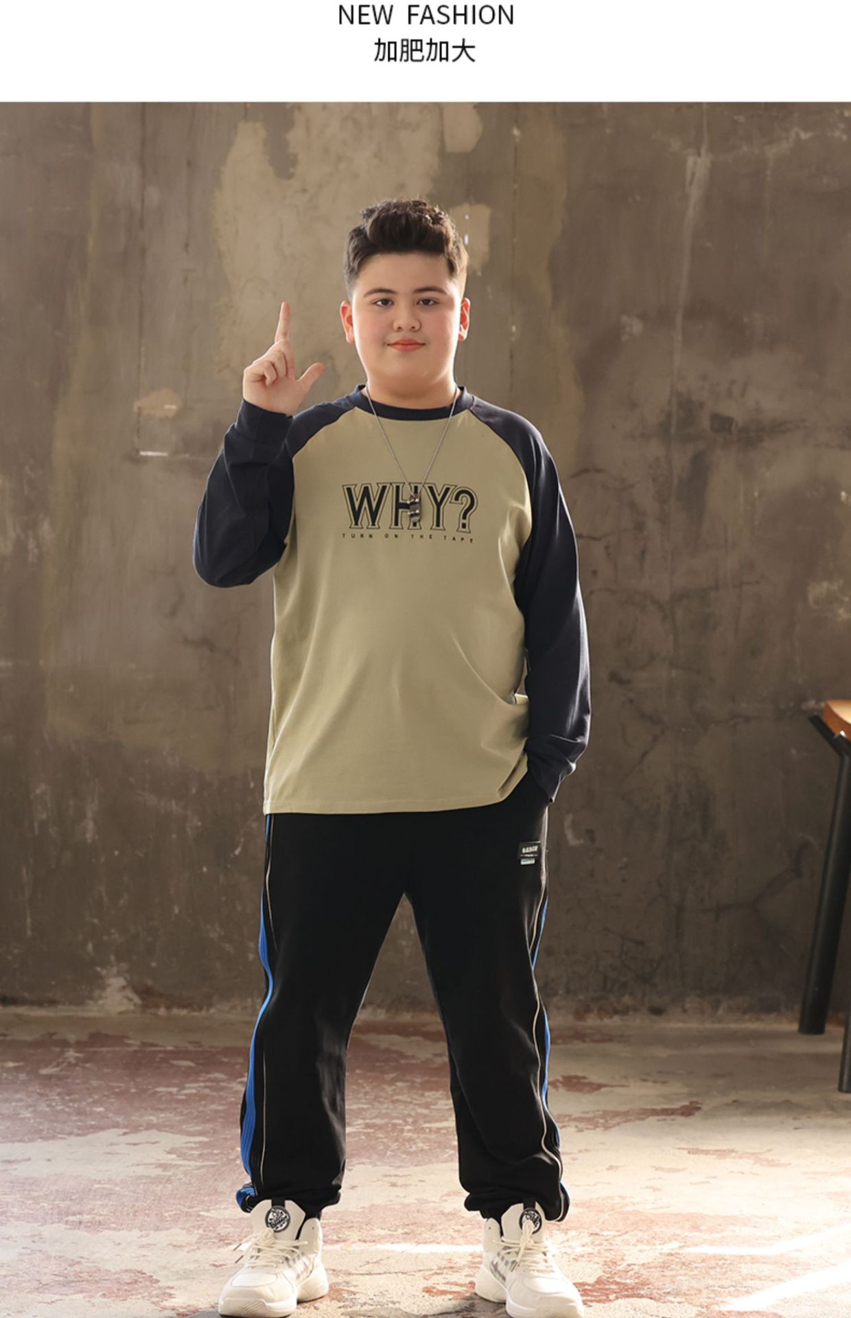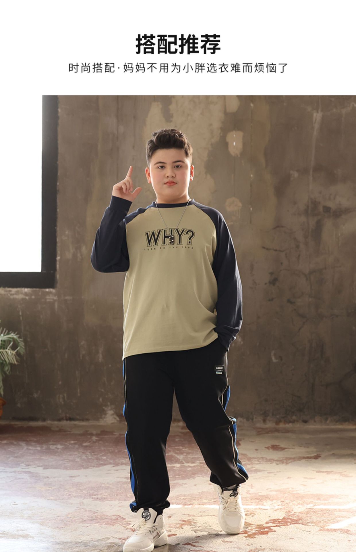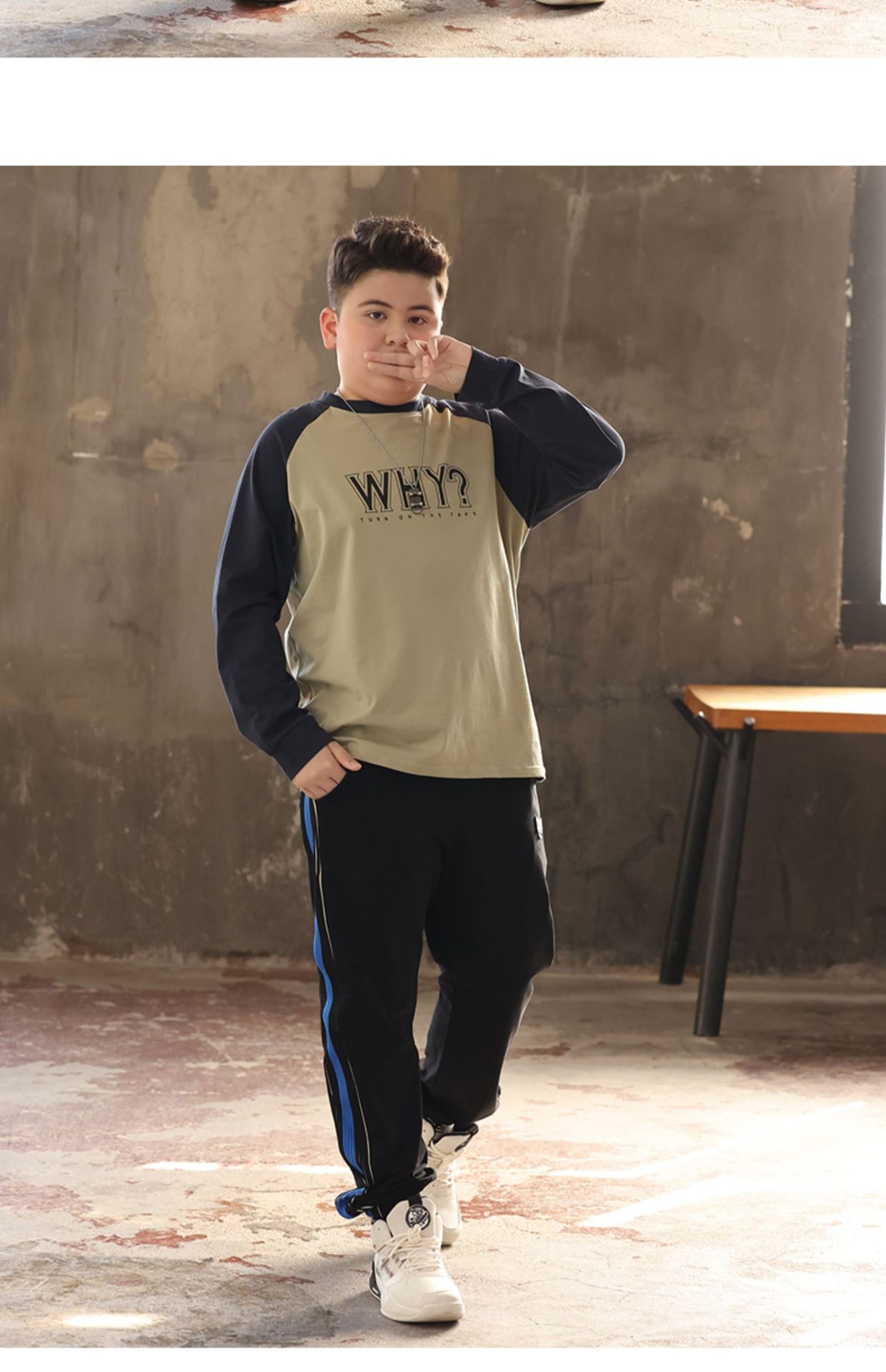 통통한 아동용 긴팔 티셔츠 남아 봄과 가을 플러스 사이즈 아동복 대형 아동용 플러스 사이즈 통통한 남아 롱 티셔츠 라운드 넥 탑