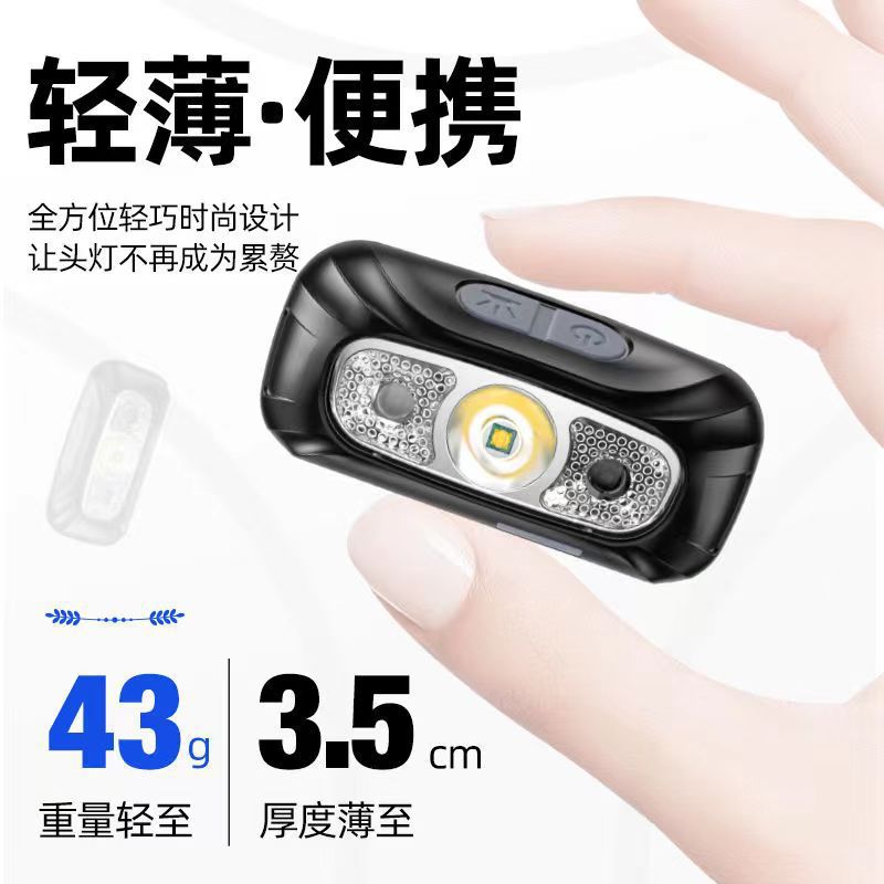 슈퍼 밝은 국경 강한 빛 유도 헤드 라이트 광부의 램프 USB 충전 비상 스마트 헤드 장착 야외 조명 손전등