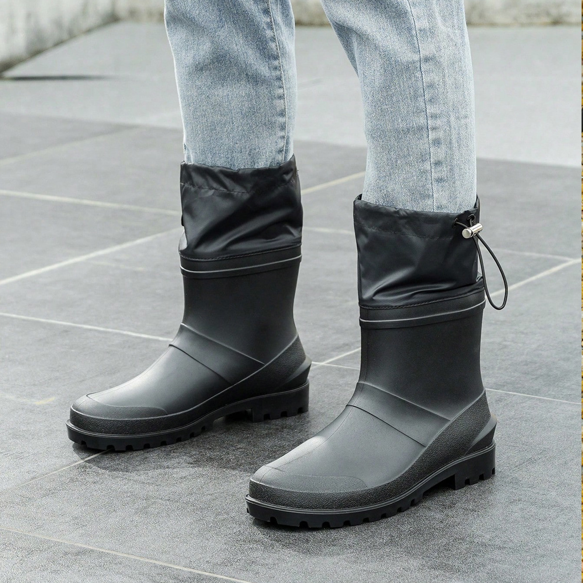 남자의 패션 방수 신발 건설 현장 높은 고무 장화 성인 장화 남자의 중간 배럴 노동 보호 장화 PVC 크로스 보더 고무 신발스토어 가기