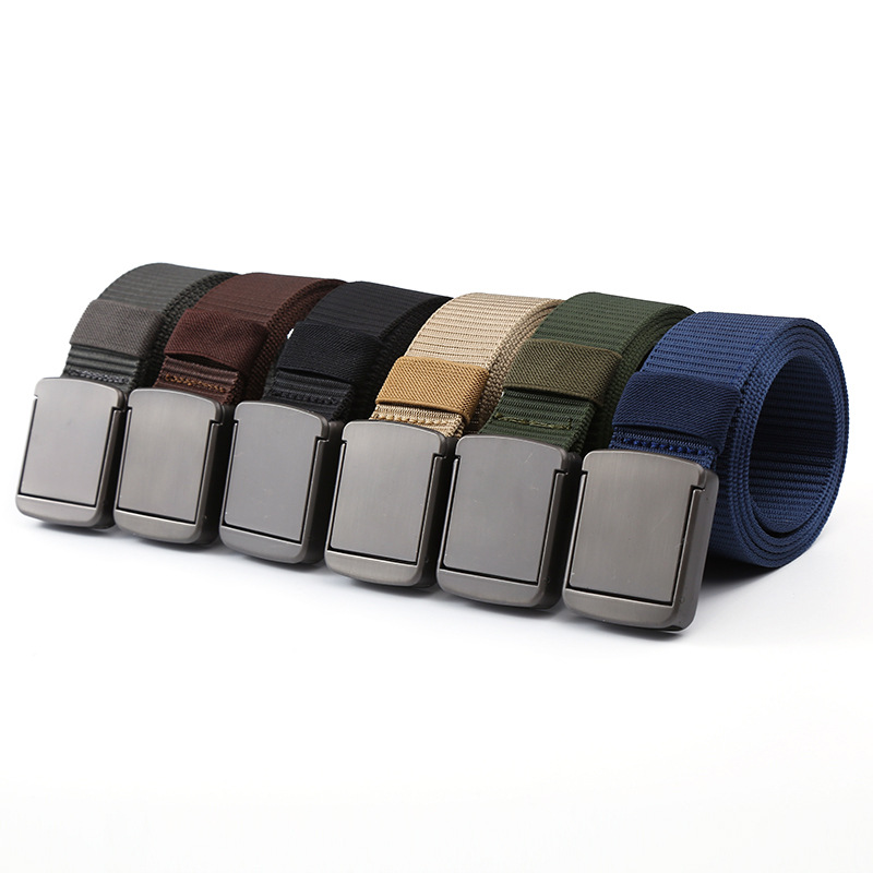 새로운 남자의 합금 광택 플랩 버클 나일론 캐주얼 캔버스 야외 전술 벨트 도매 벨트 바지 벨트스토어 가기