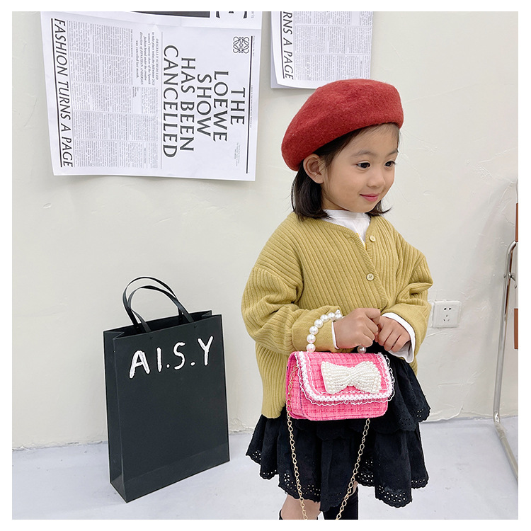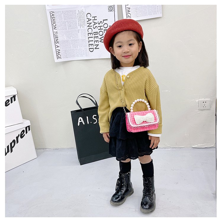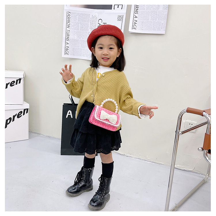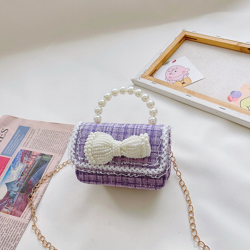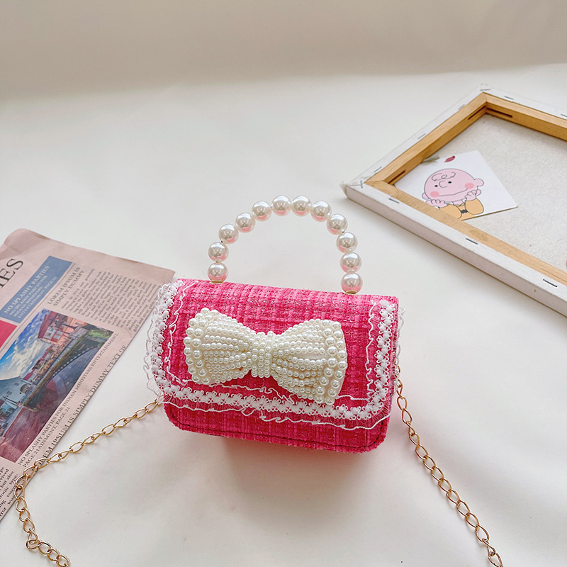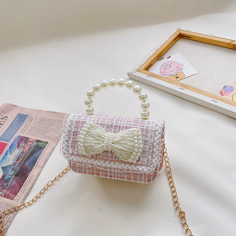 미니 동전 지갑 가방 귀여운 2024 신상 인터넷 인기 여아 공주 가방 리본 진주 크로스백