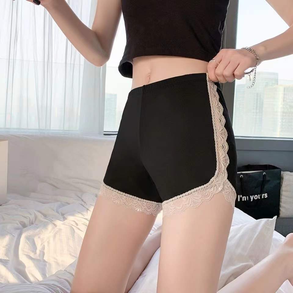 새로운 레이스 안전 바지 여성용 걷기 방지 컬링 얇은 아이스 실크 원활한 배꼽 엉덩이 리프팅 3 점 바닥 반바지스토어 가기