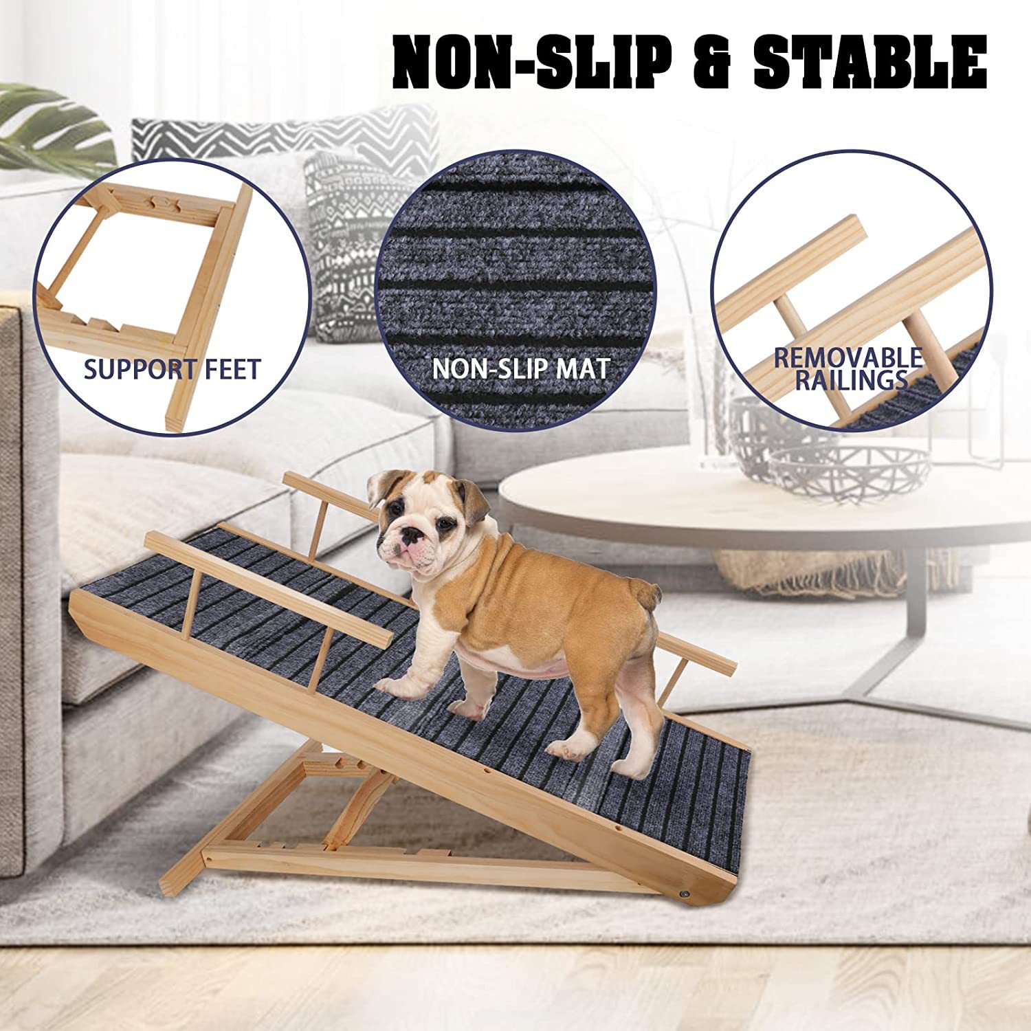새로운 애완동물 사다리 원목 조절 가능 고양이 강아지 사다리 애완동물 용품 미끄럼 방지 경사로 계단스토어 가기