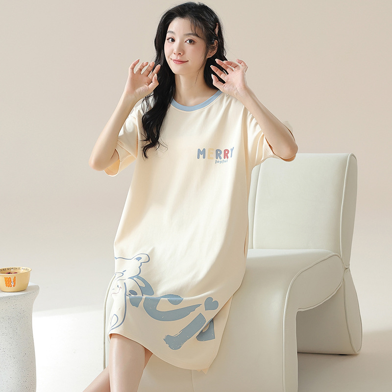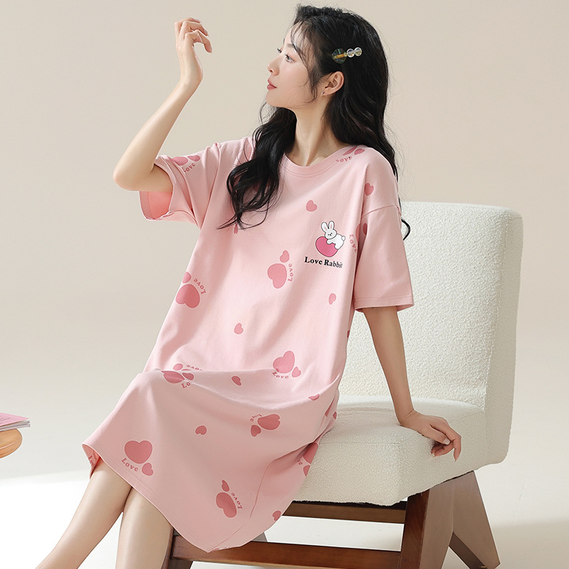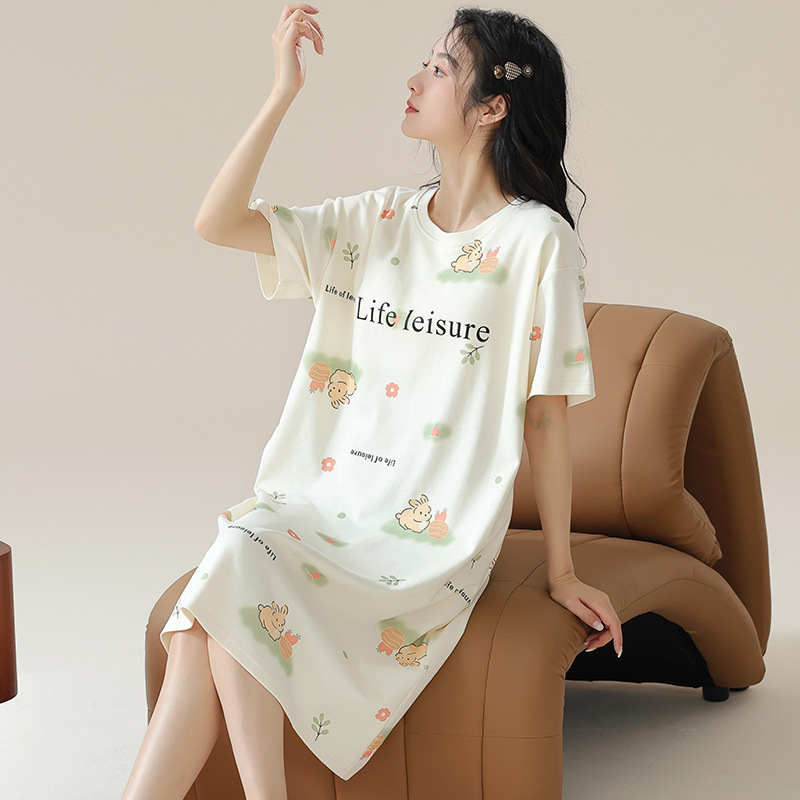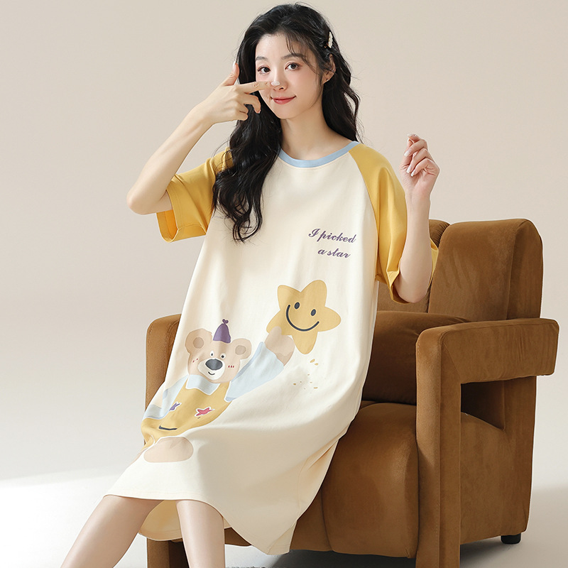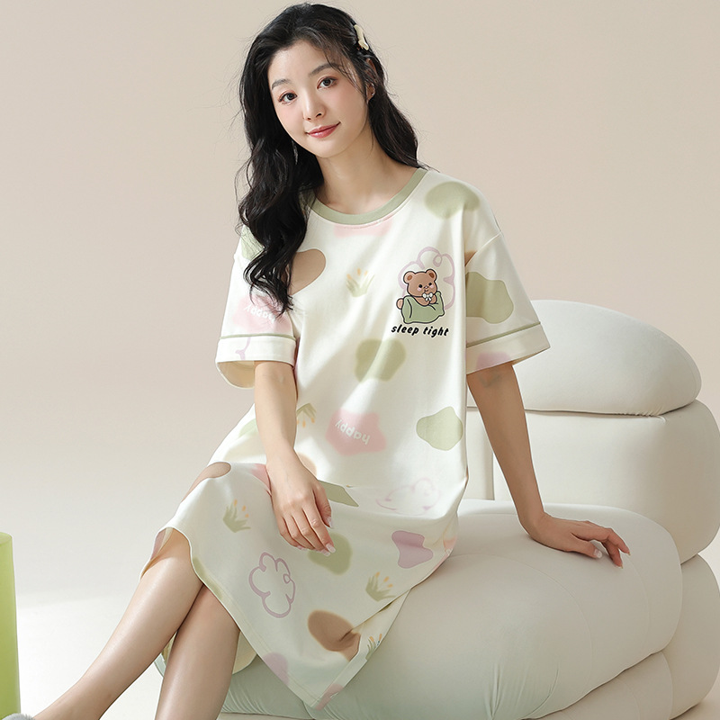 여성용 여름 잠옷 얇은 소재 만화 캐릭터 아동 학생 원피스 임산부 잠옷 여름용 루즈핏 외출복 가능