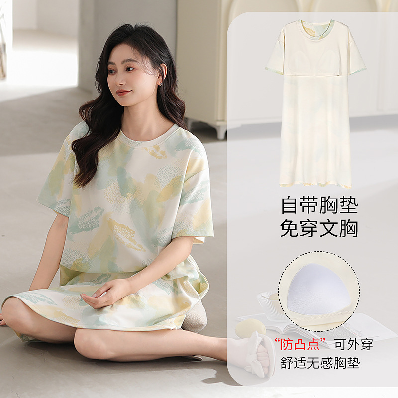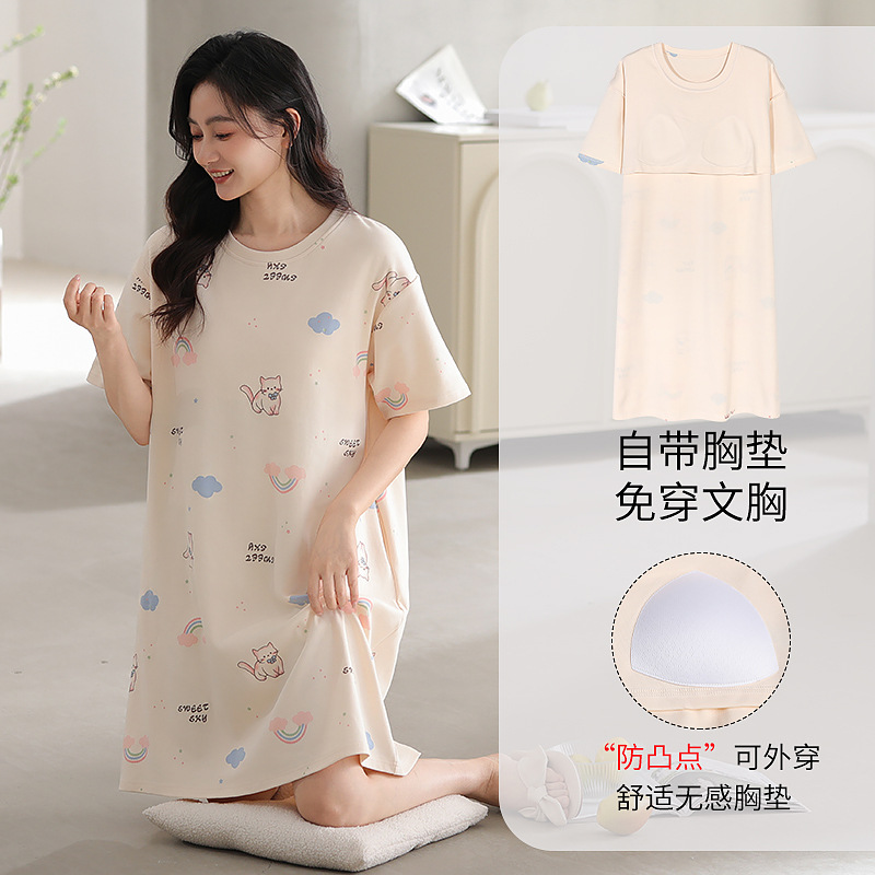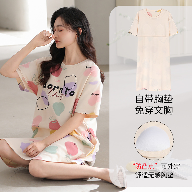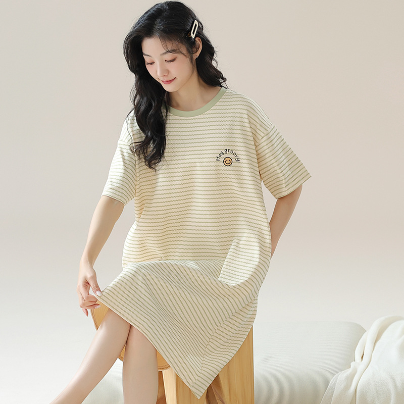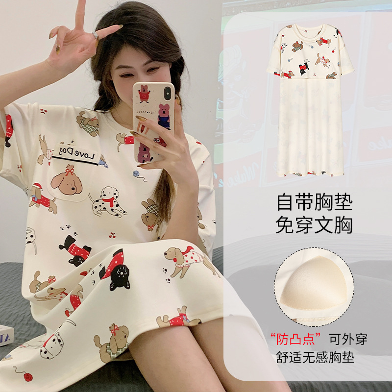여성용 여름 잠옷 얇은 소재 만화 캐릭터 아동 학생 원피스 임산부 잠옷 여름용 루즈핏 외출복 가능