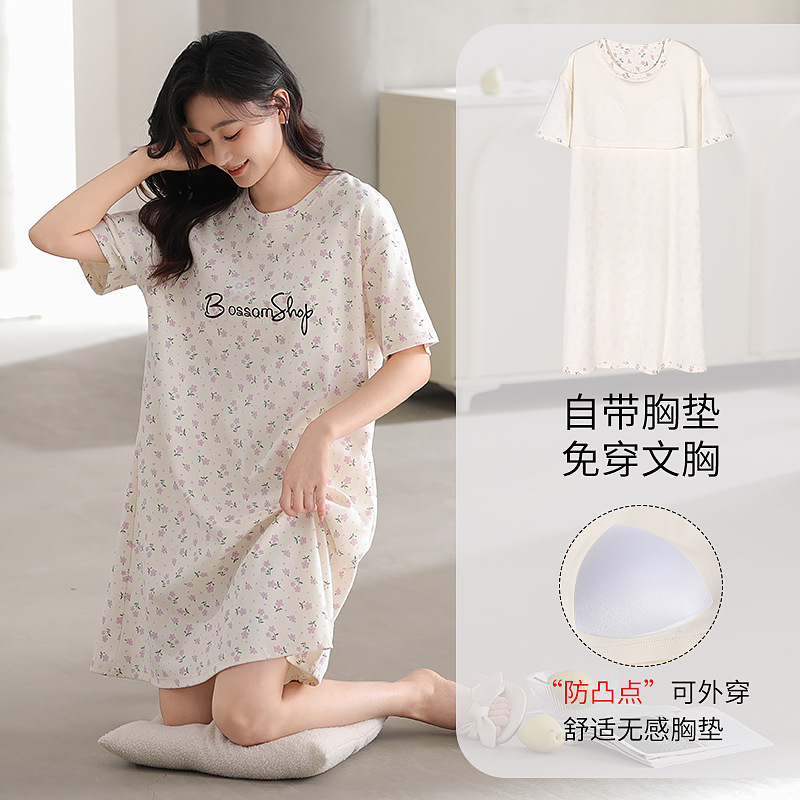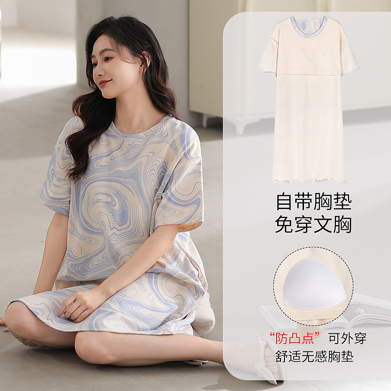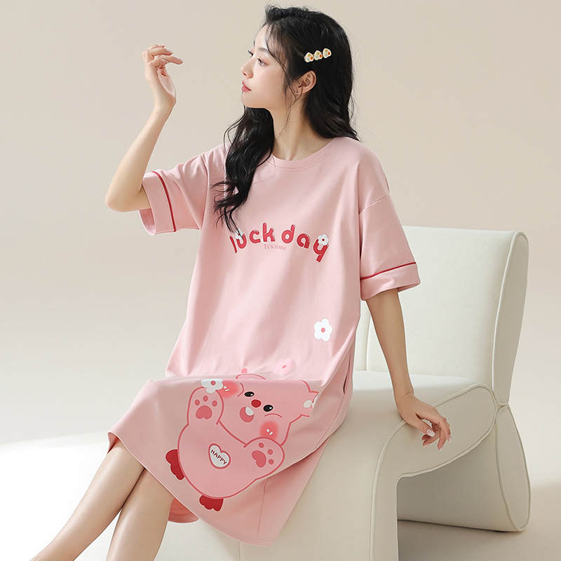 여성용 여름 잠옷 얇은 소재 만화 캐릭터 아동 학생 원피스 임산부 잠옷 여름용 루즈핏 외출복 가능스토어 가기