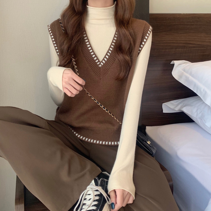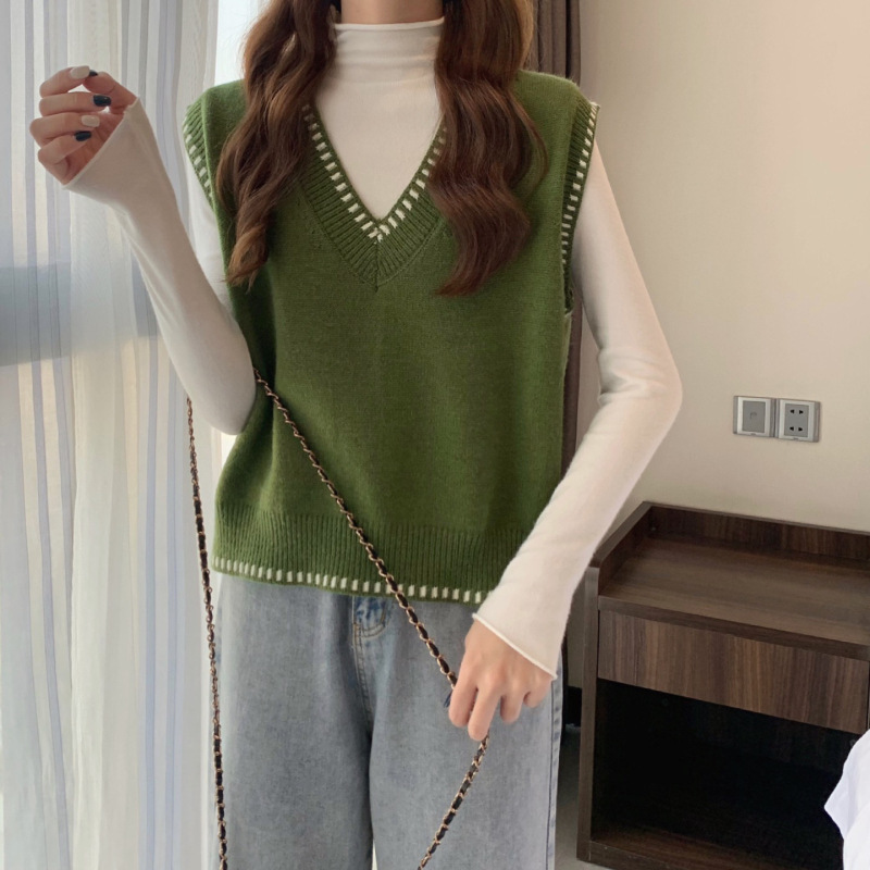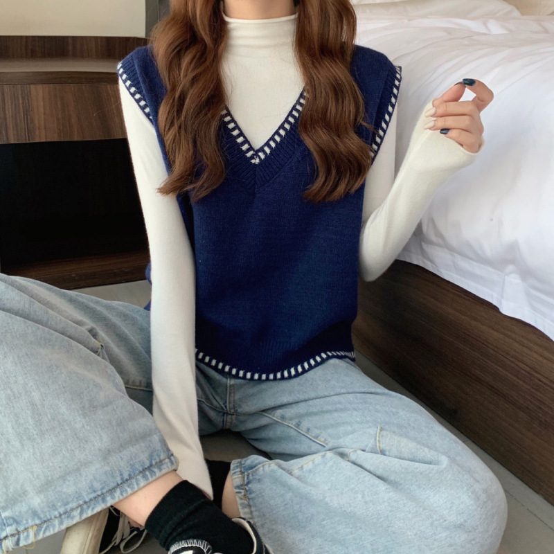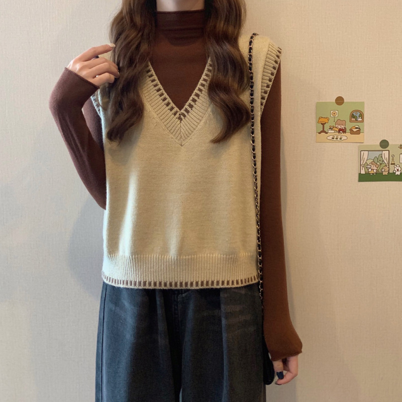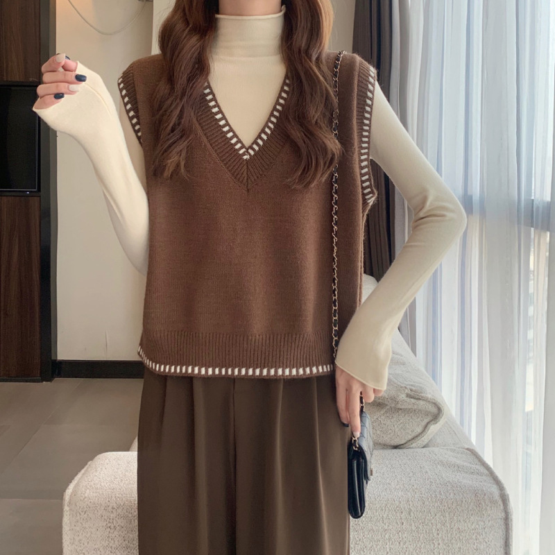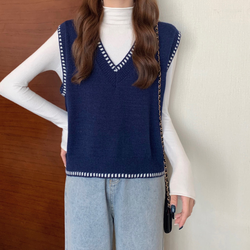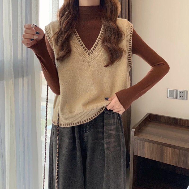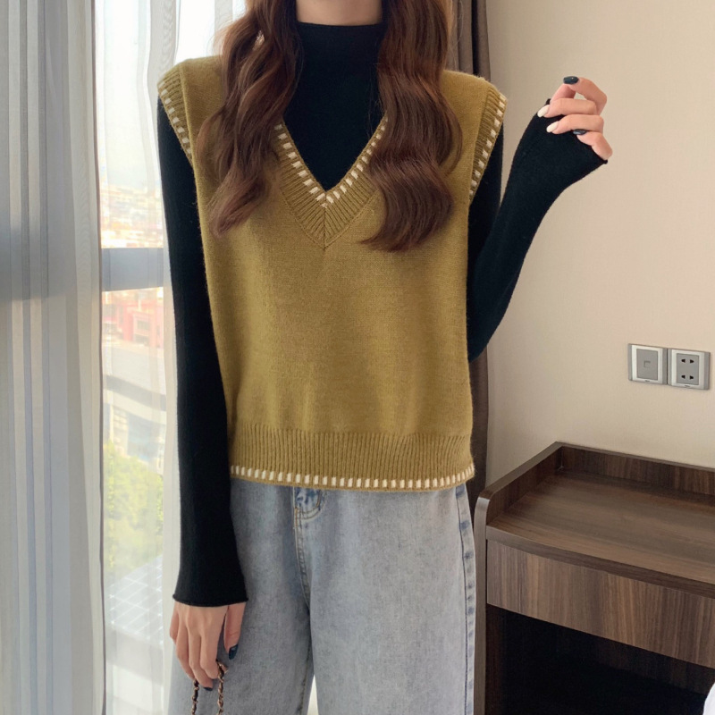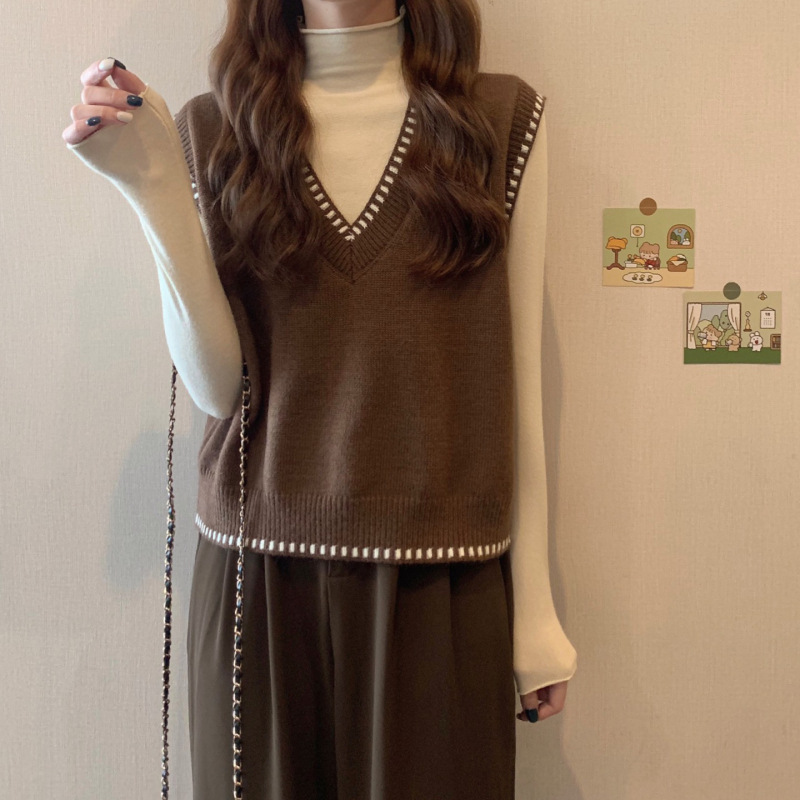 니트 조끼 여성의 봄과 가을 2023 새로운 V 넥 느슨한 스택 조끼 스웨터 조끼 디자인 감각 틈새 복장스토어 가기