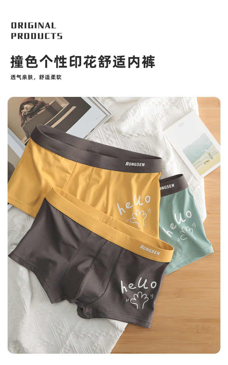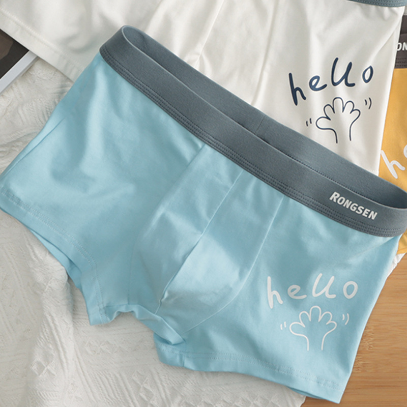 남자 속옷 순면 유행 복서 바지 단색 편안한 통기성 4 코너 소년 청소년 여름 짧은 바지 얇은스토어 가기