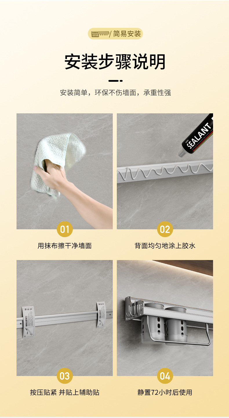 펀치 없는 주방 다기능 수납 랙 벽걸이 용품 벽걸이 랙 가정용 나이프 홀더 젓가락 보관 랙