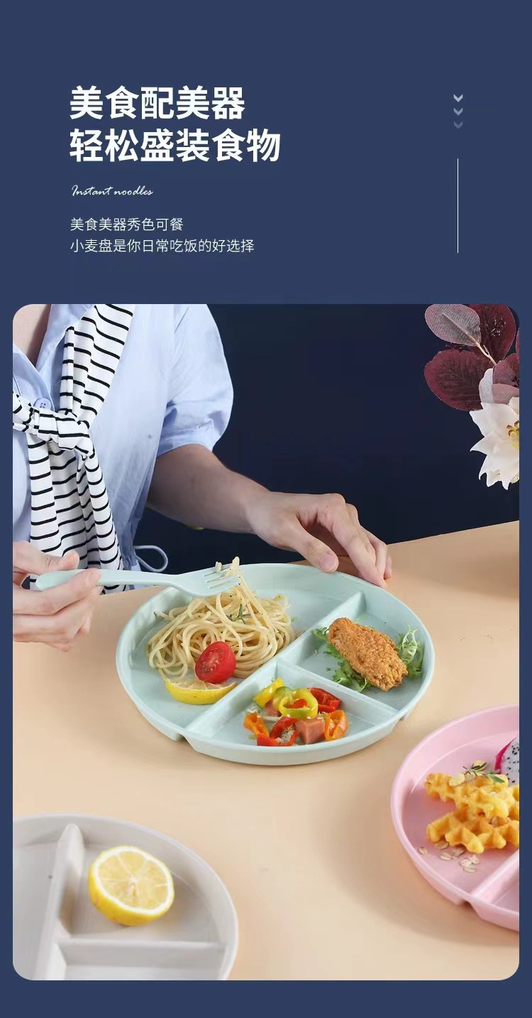 북유럽 스타일 분할 플레이트 지방 감소 디너 플레이트 분할 플레이트 단일 식사 정량적 플레이트 3 구획 가정용 낙하 방지 플라스틱 플레이트스토어 가기