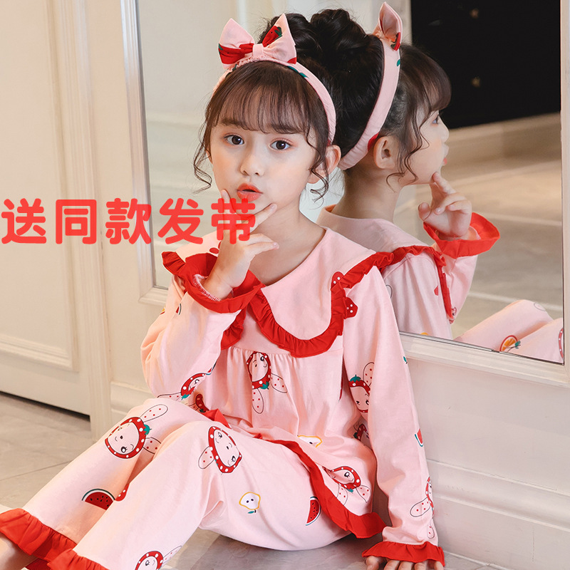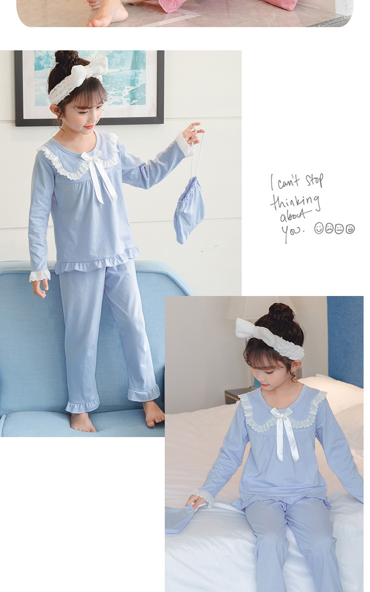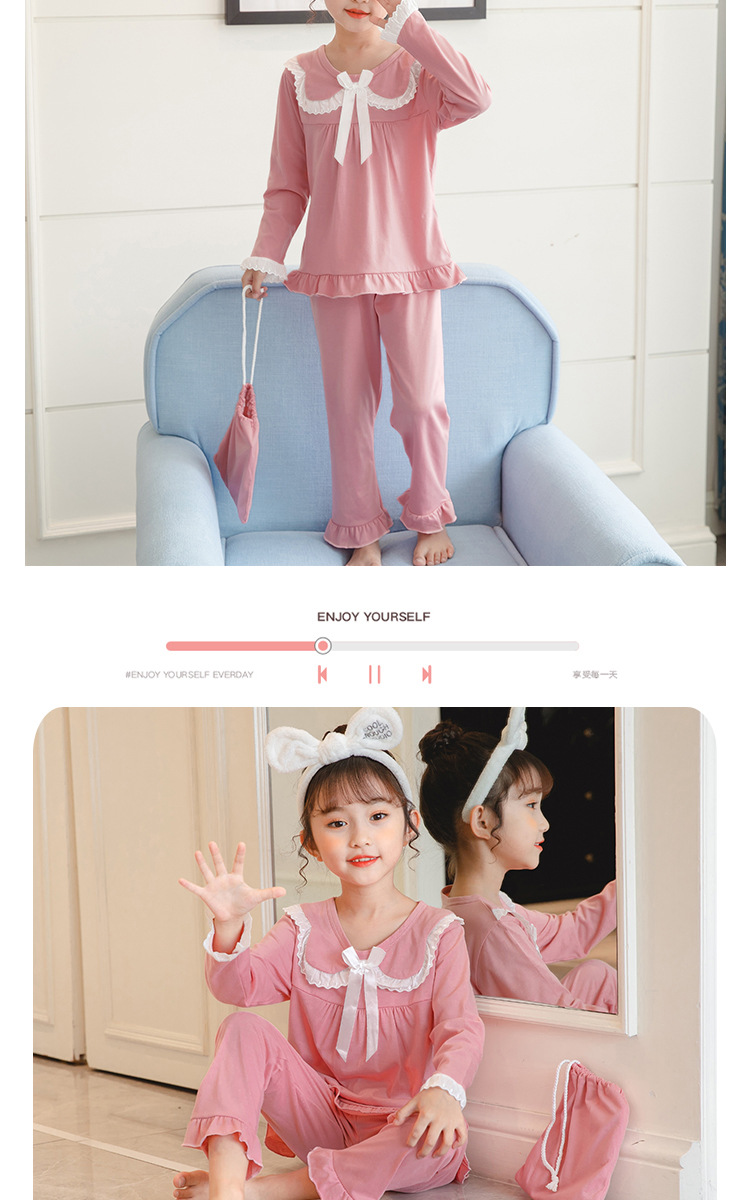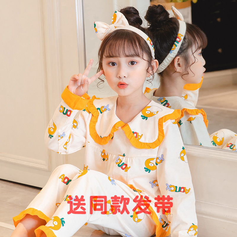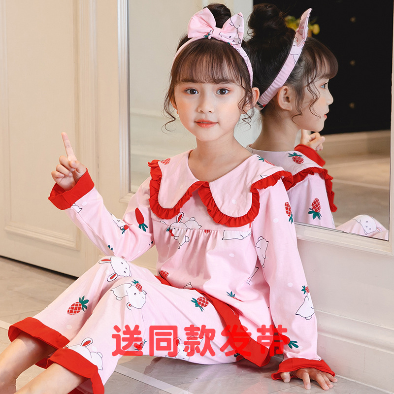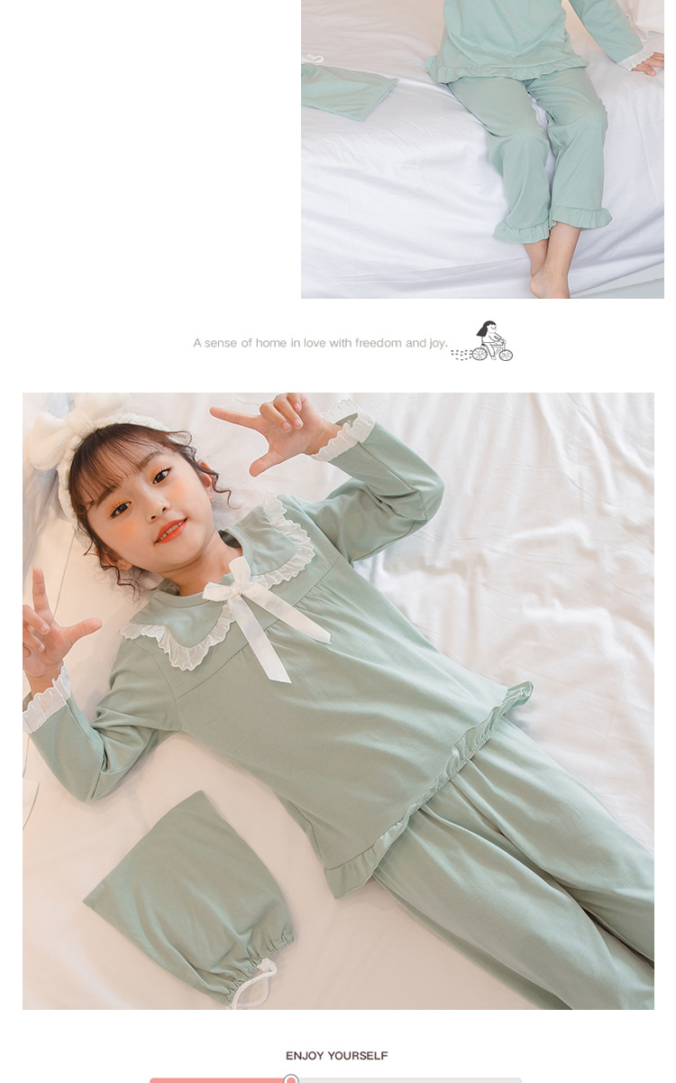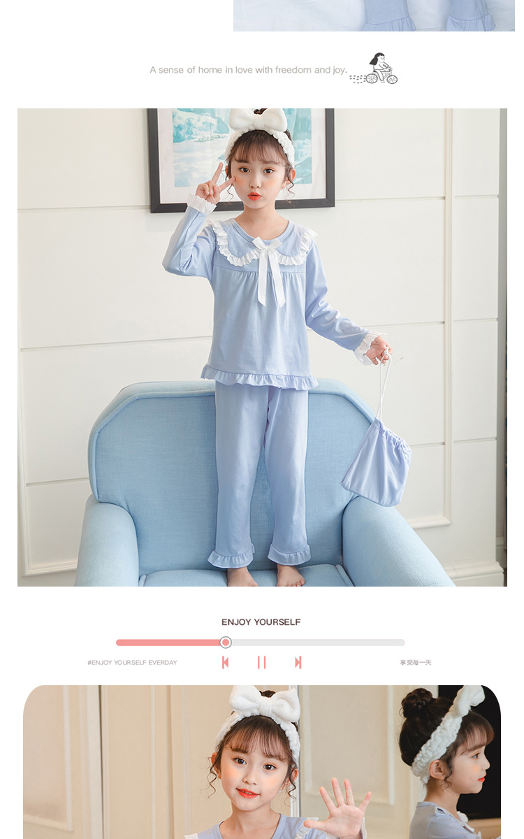 어린이 잠옷 소녀 봄과 가을 여름 새로운 단색 면 귀여운 긴 소매 세트 소녀 잠옷 어린이 의류 공주 스타일스토어 가기