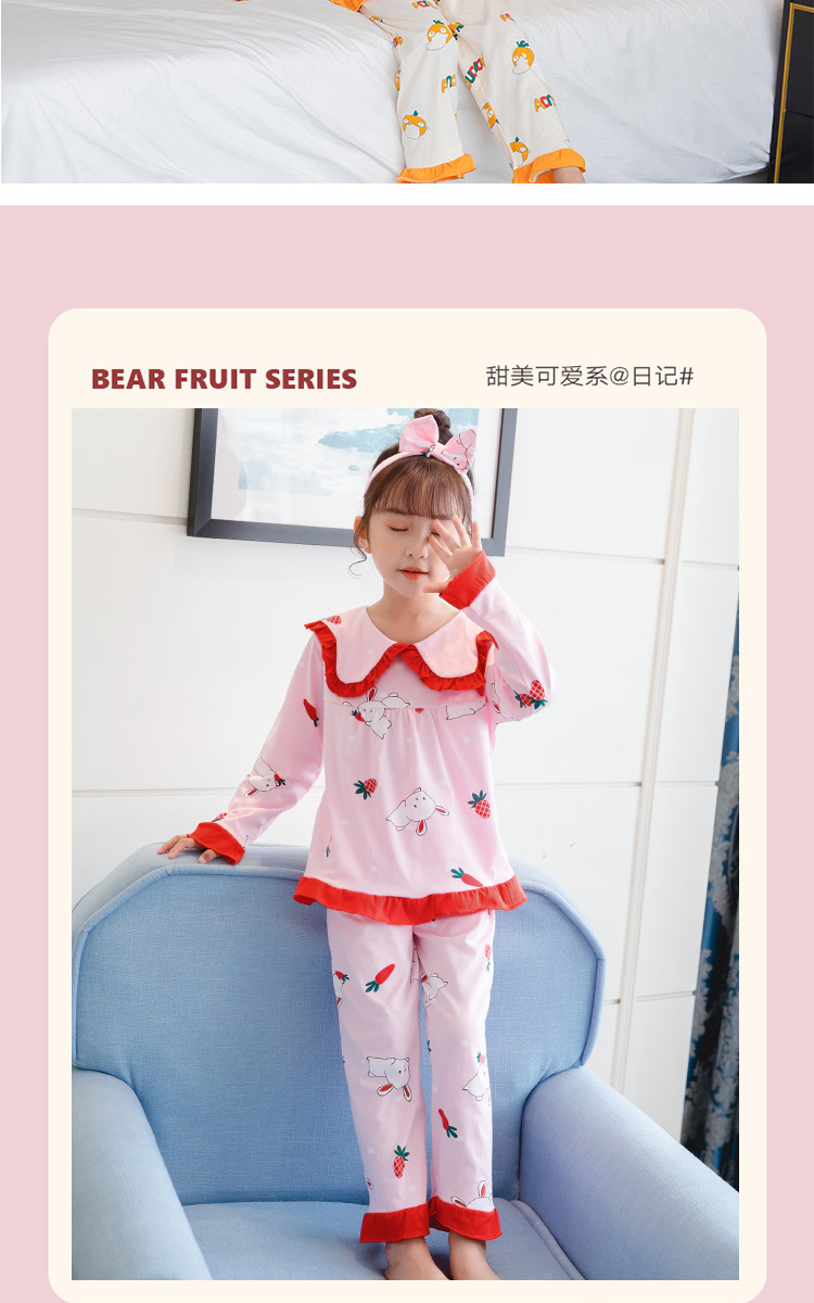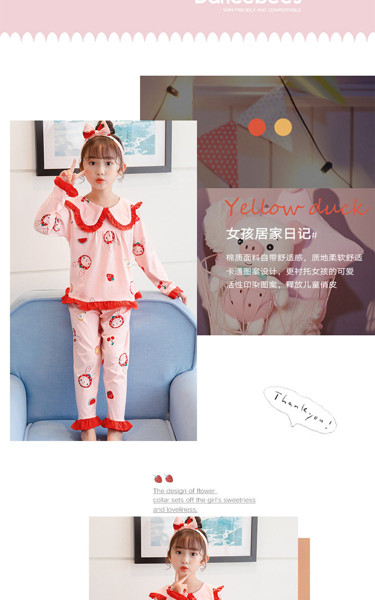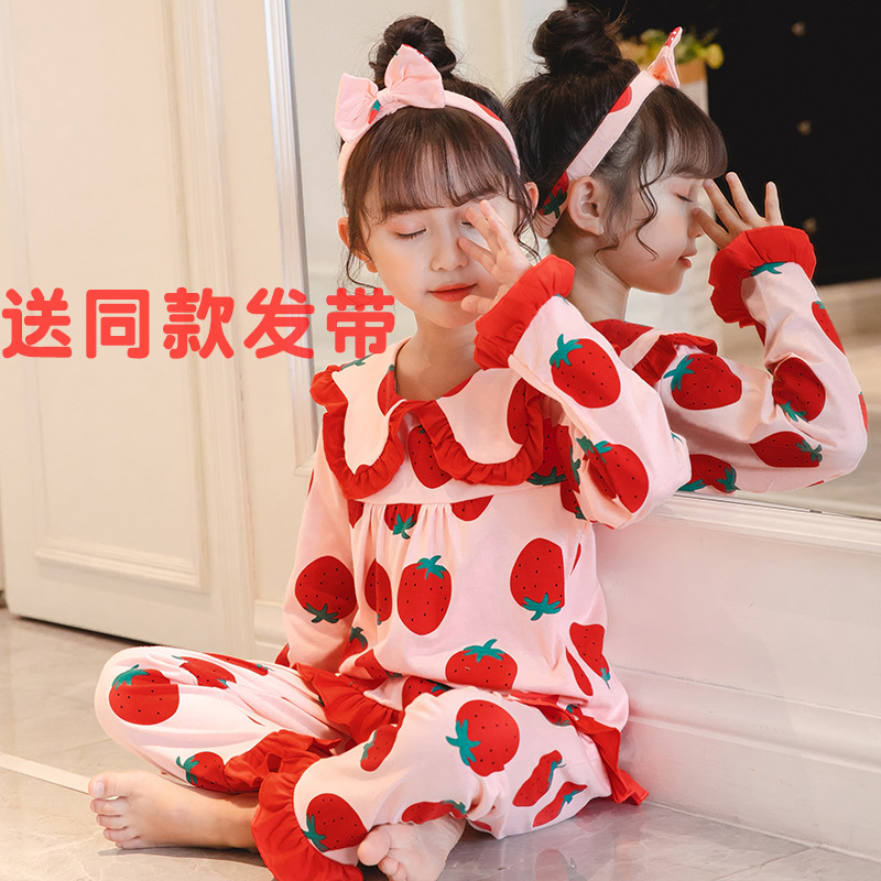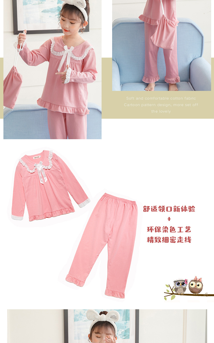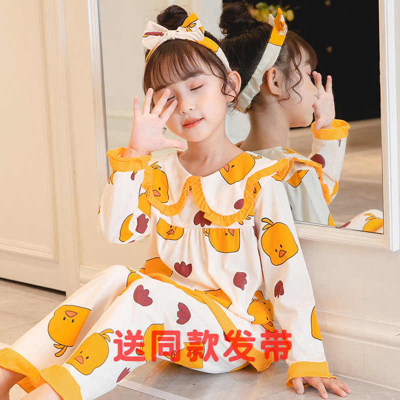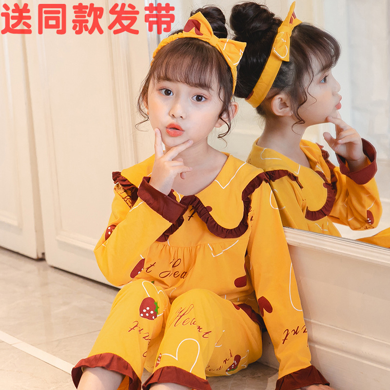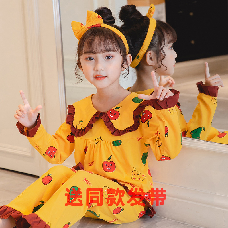 어린이 잠옷 소녀 봄과 가을 여름 새로운 단색 면 귀여운 긴 소매 세트 소녀 잠옷 어린이 의류 공주 스타일스토어 가기