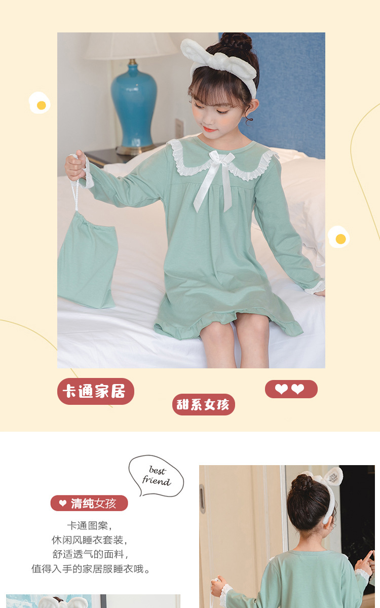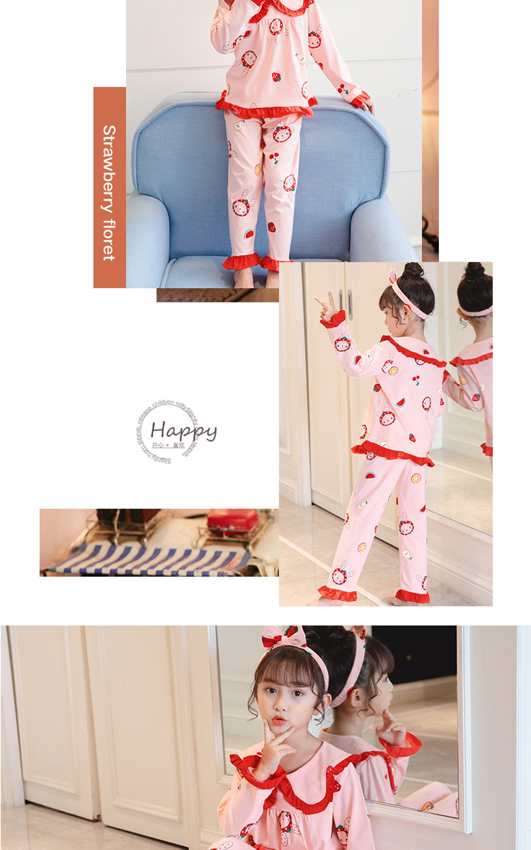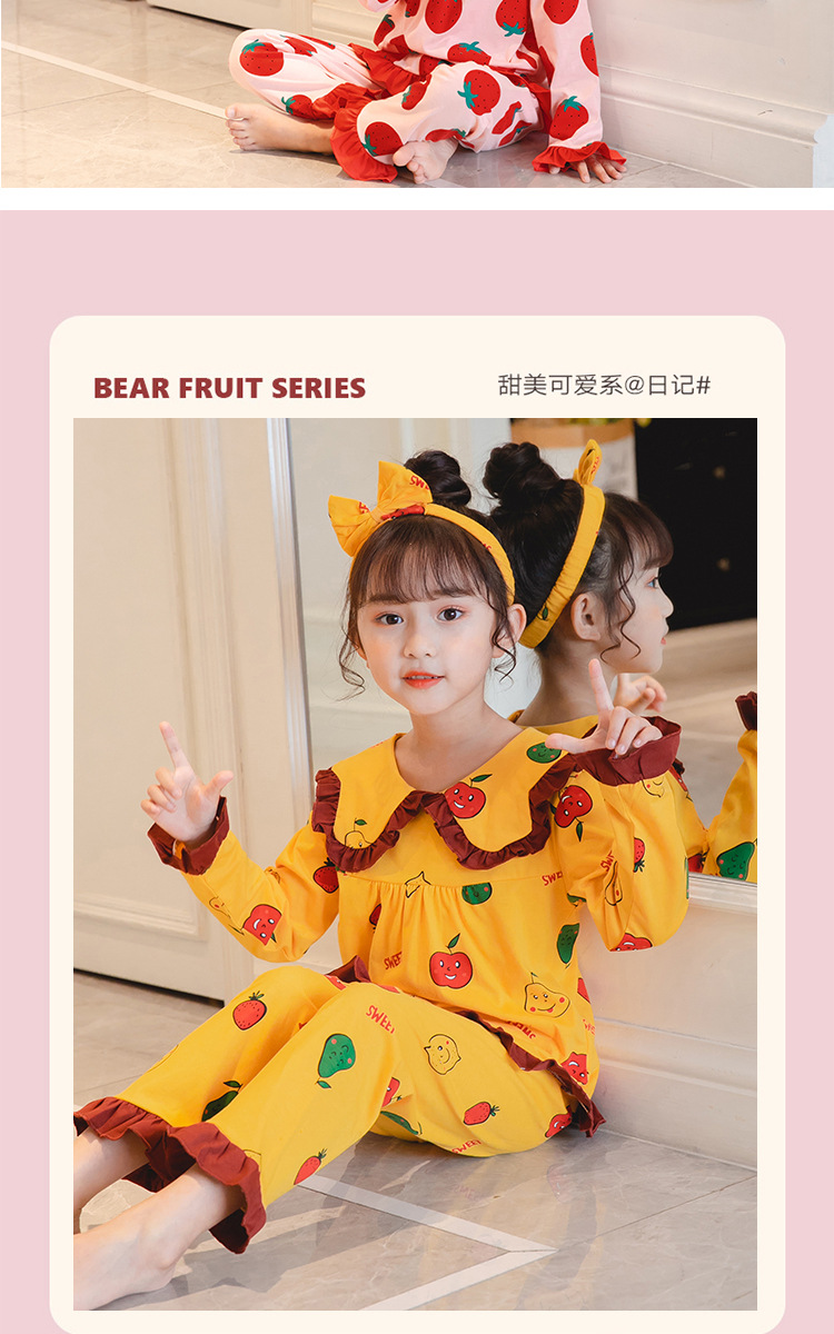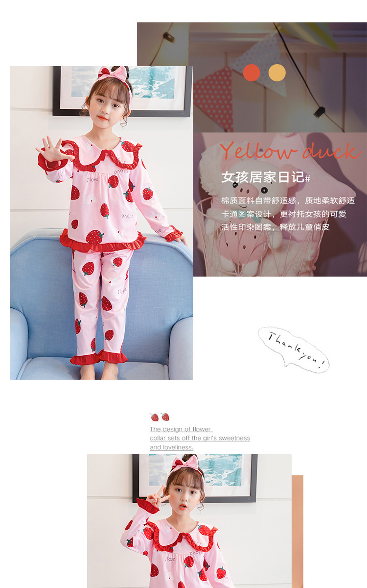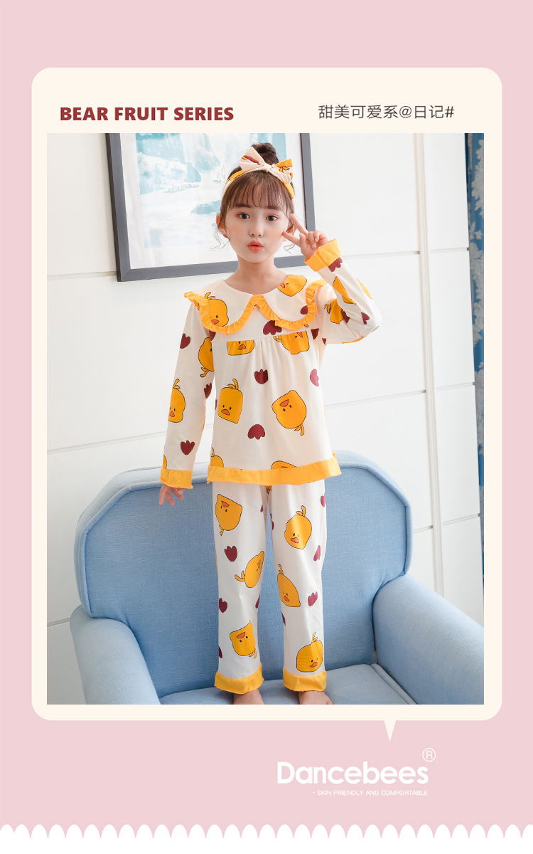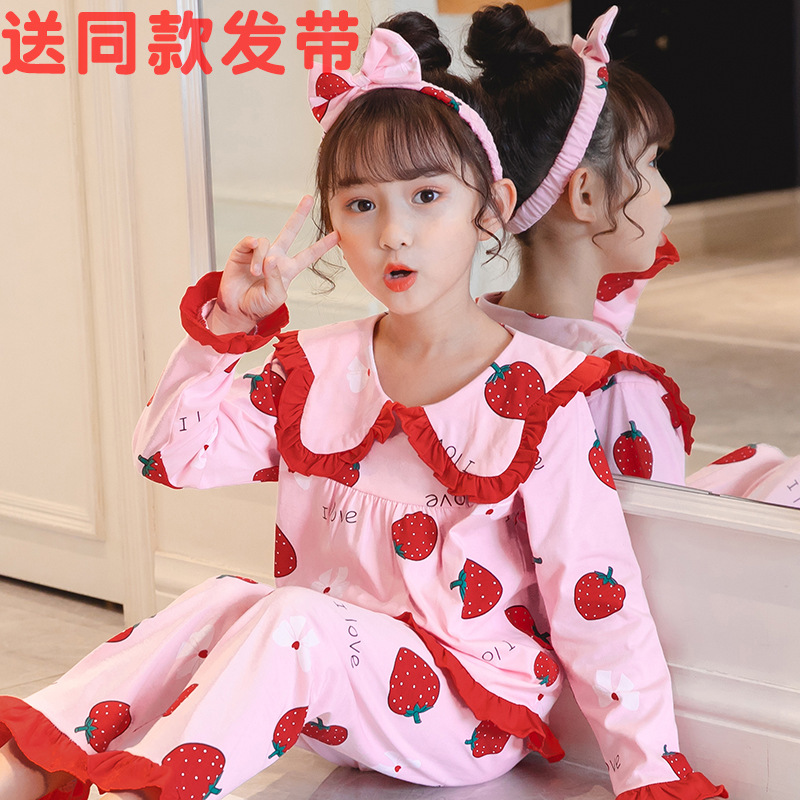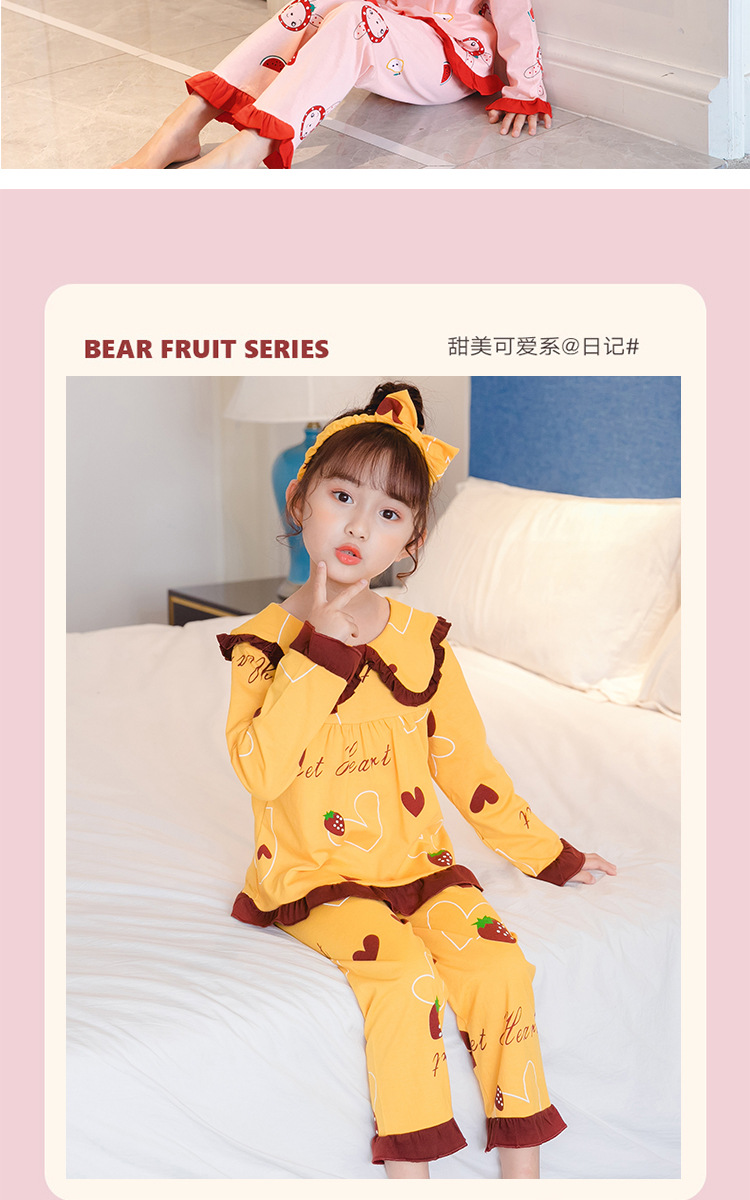 어린이 잠옷 소녀 봄과 가을 여름 새로운 단색 면 귀여운 긴 소매 세트 소녀 잠옷 어린이 의류 공주 스타일스토어 가기