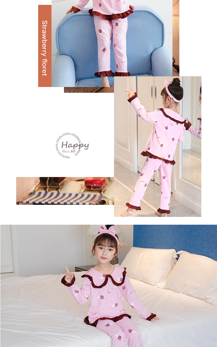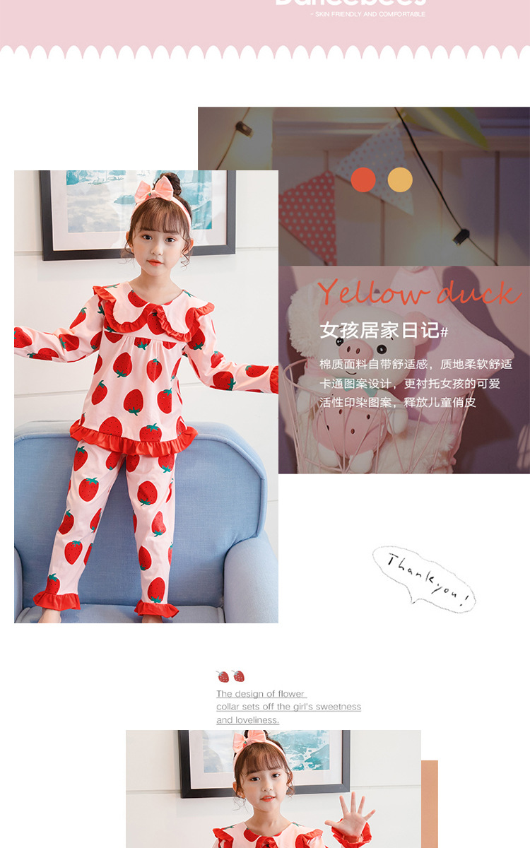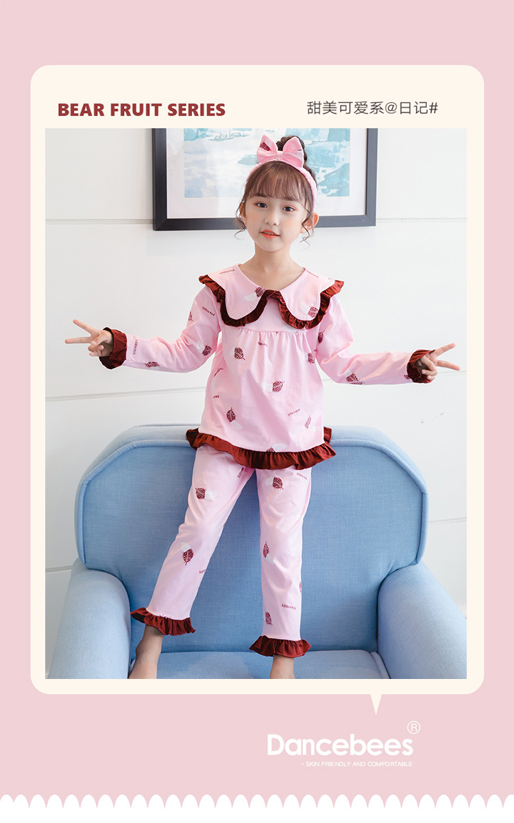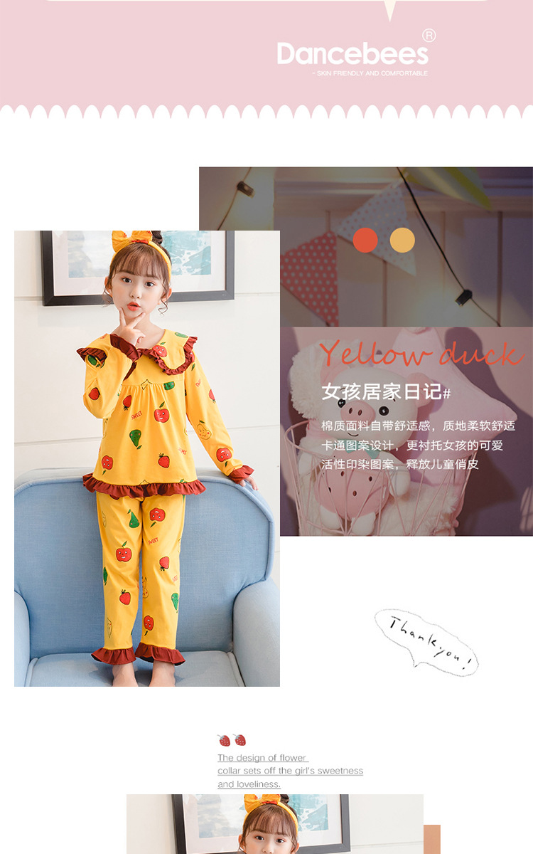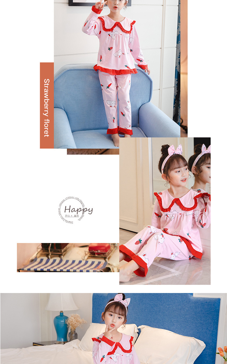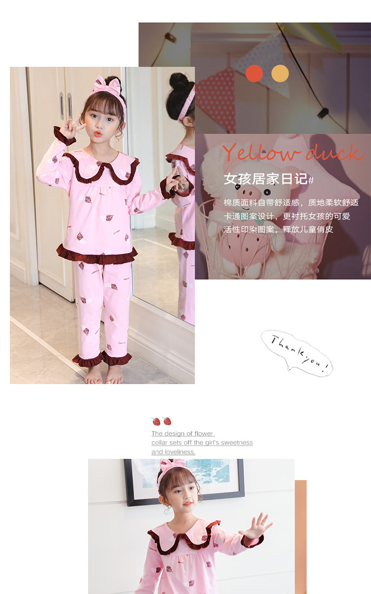 어린이 잠옷 소녀 봄과 가을 여름 새로운 단색 면 귀여운 긴 소매 세트 소녀 잠옷 어린이 의류 공주 스타일스토어 가기