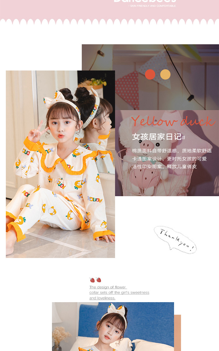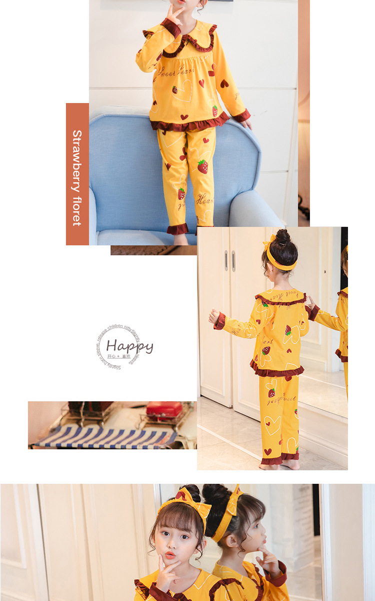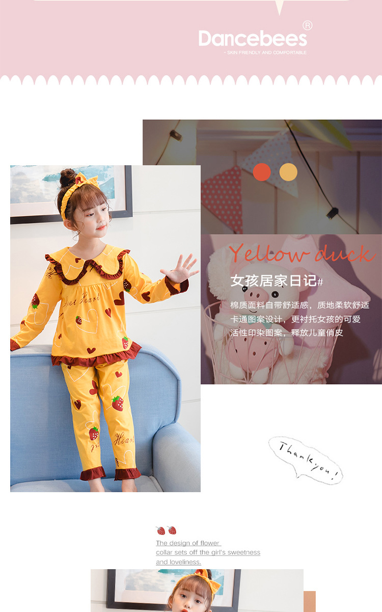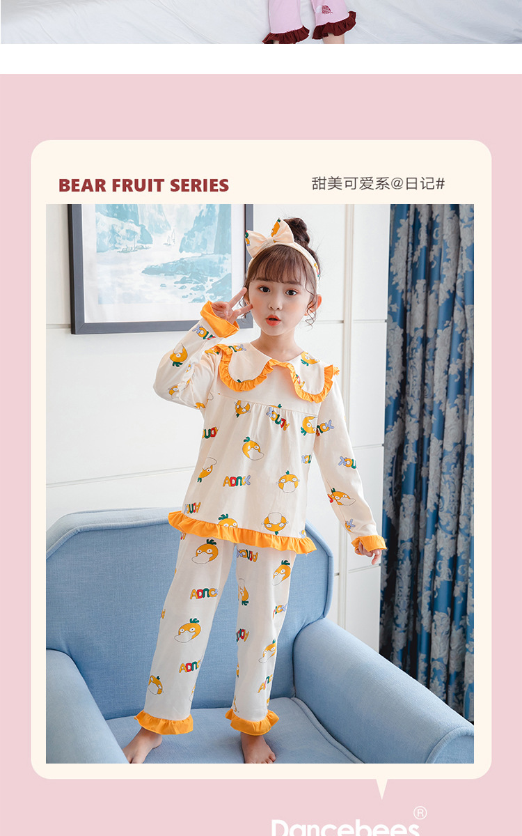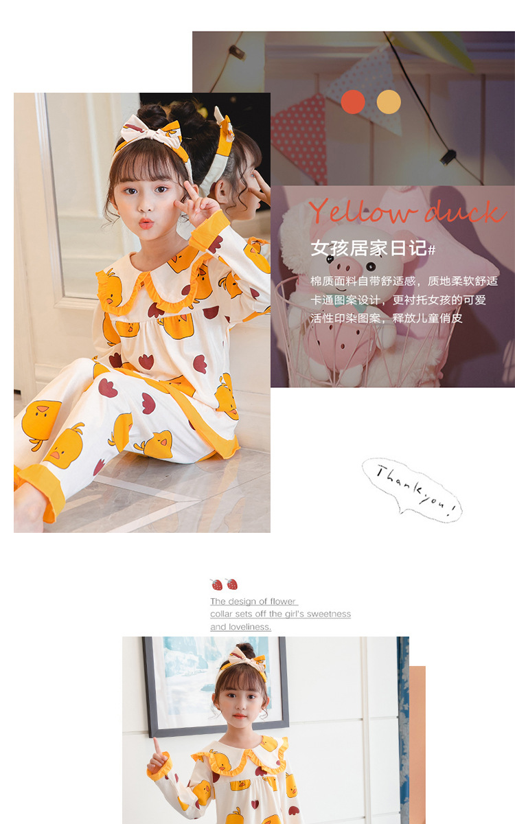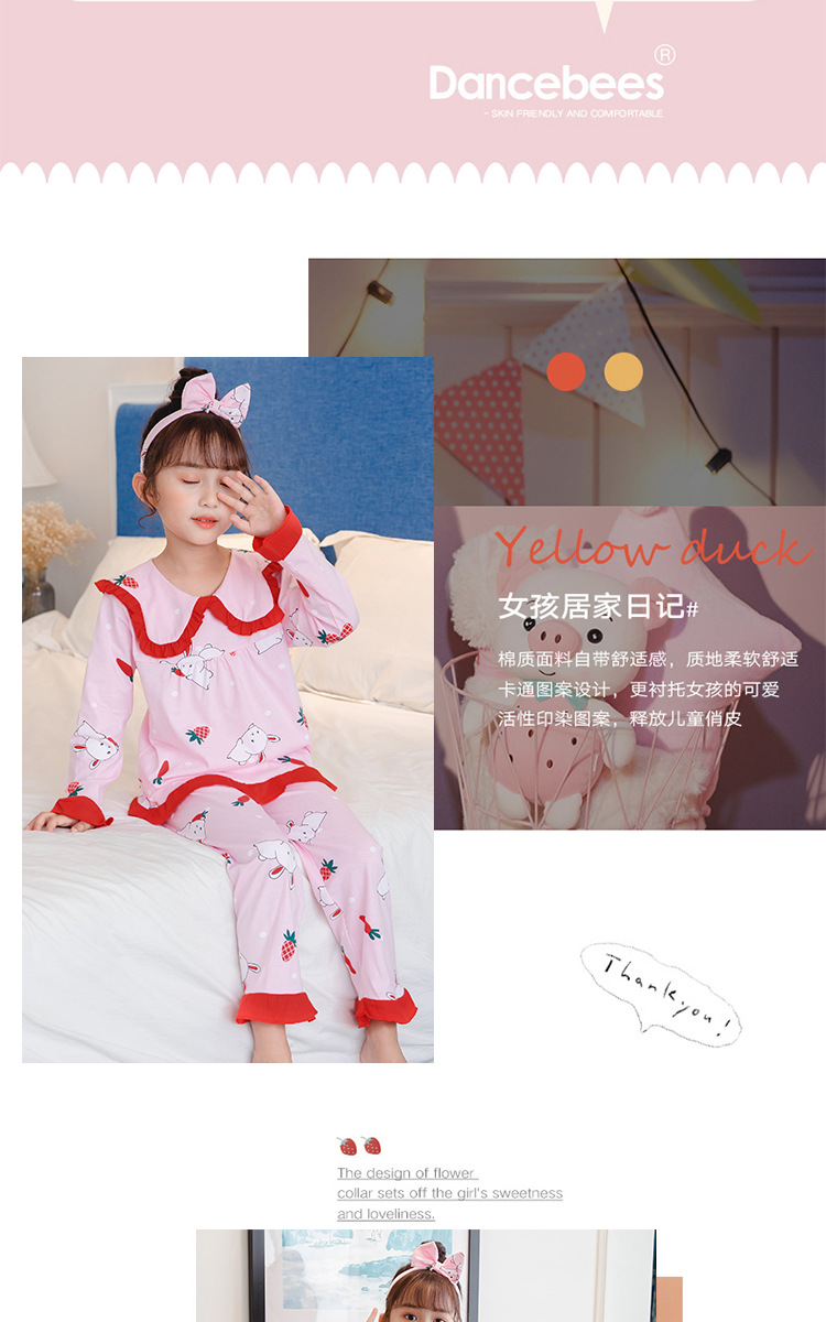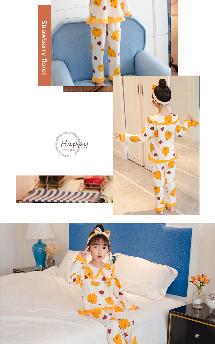 어린이 잠옷 소녀 봄과 가을 여름 새로운 단색 면 귀여운 긴 소매 세트 소녀 잠옷 어린이 의류 공주 스타일스토어 가기