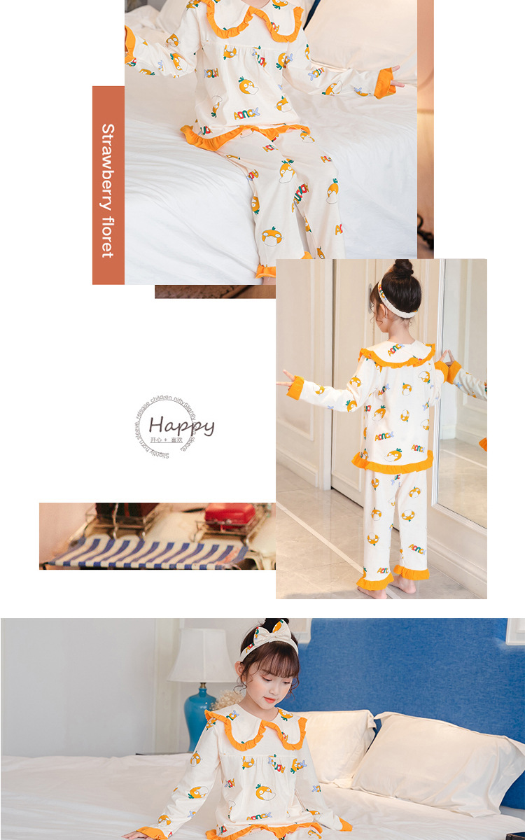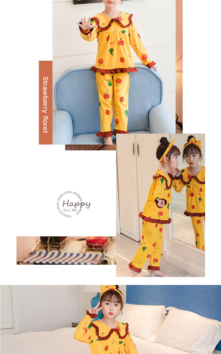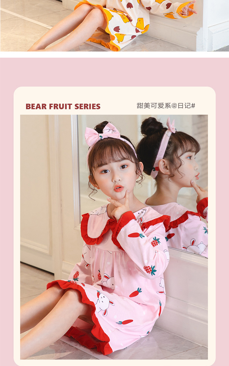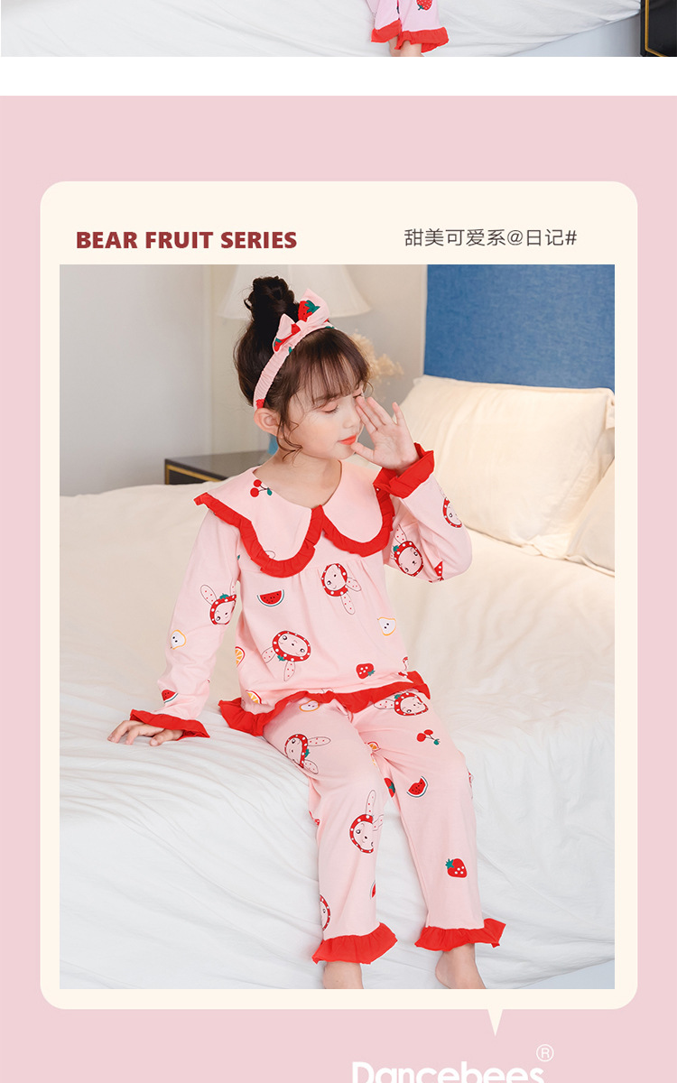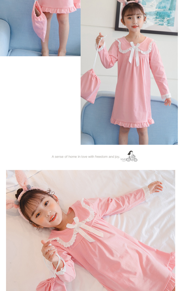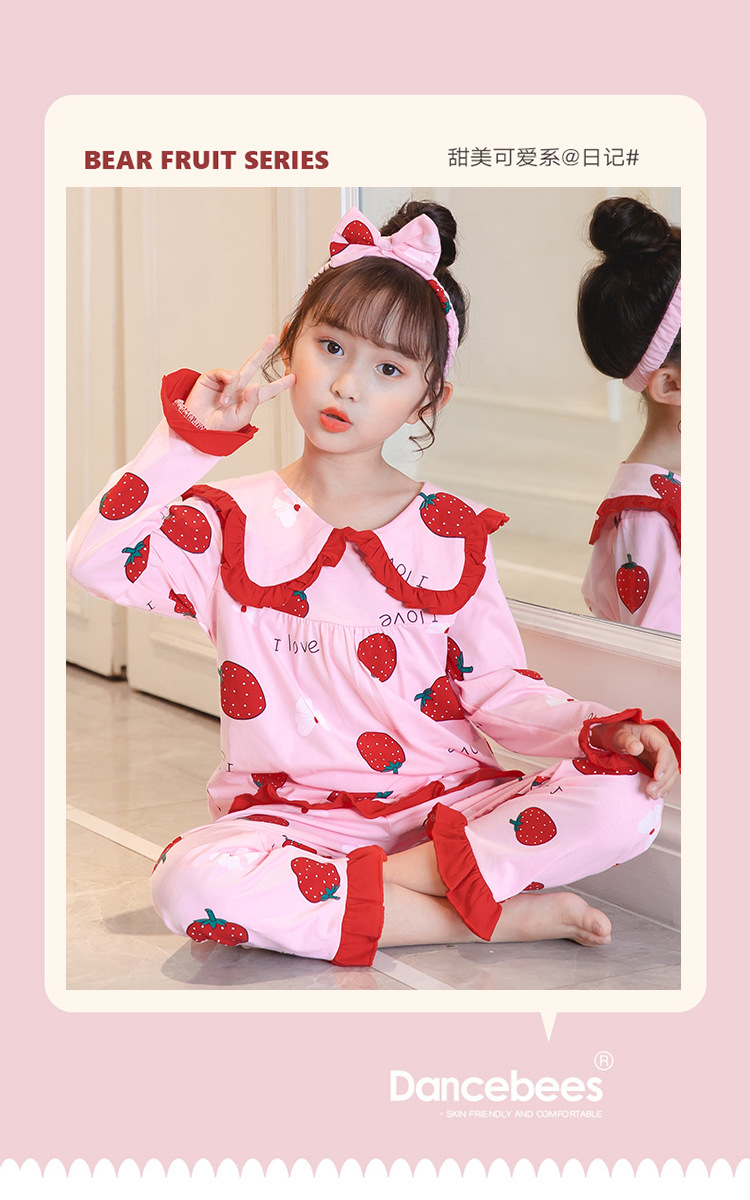어린이 잠옷 소녀 봄과 가을 여름 새로운 단색 면 귀여운 긴 소매 세트 소녀 잠옷 어린이 의류 공주 스타일스토어 가기