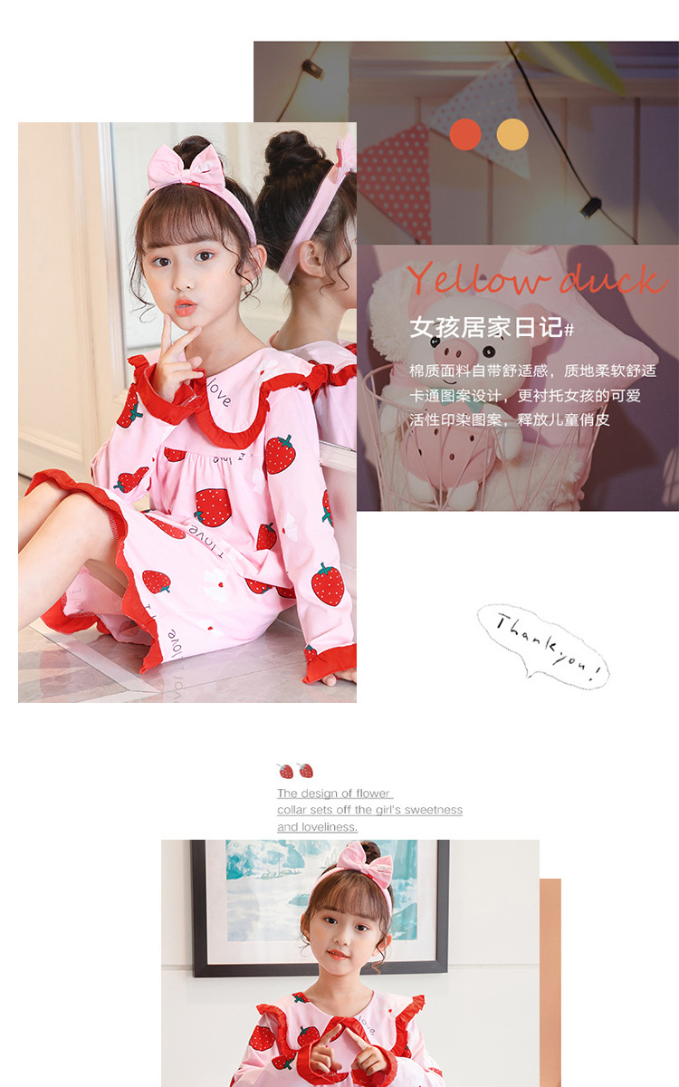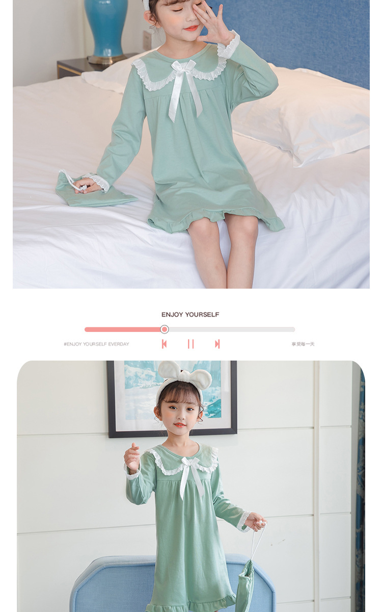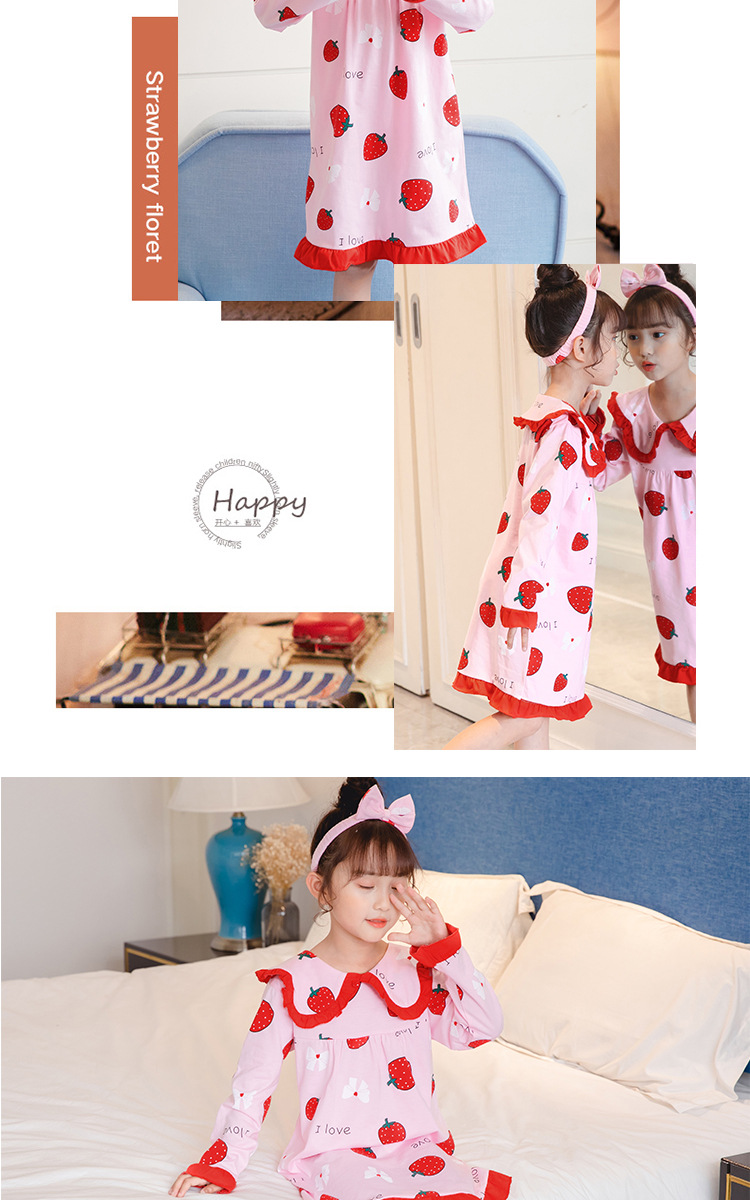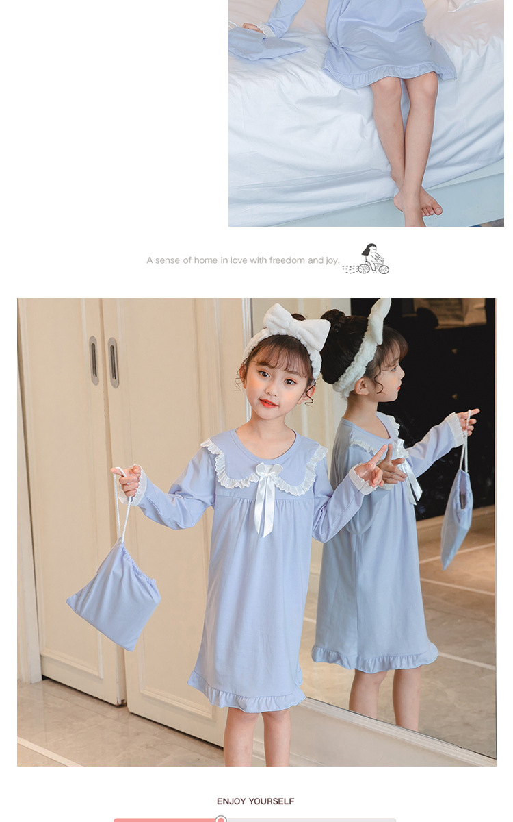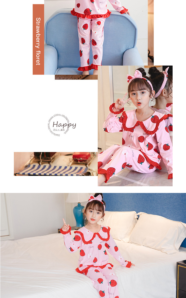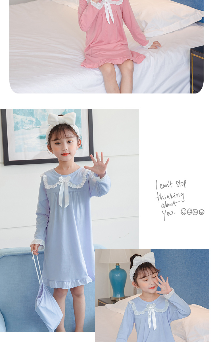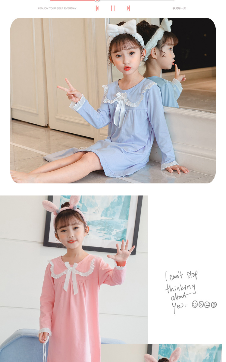어린이 잠옷 소녀 봄과 가을 여름 새로운 단색 면 귀여운 긴 소매 세트 소녀 잠옷 어린이 의류 공주 스타일스토어 가기
