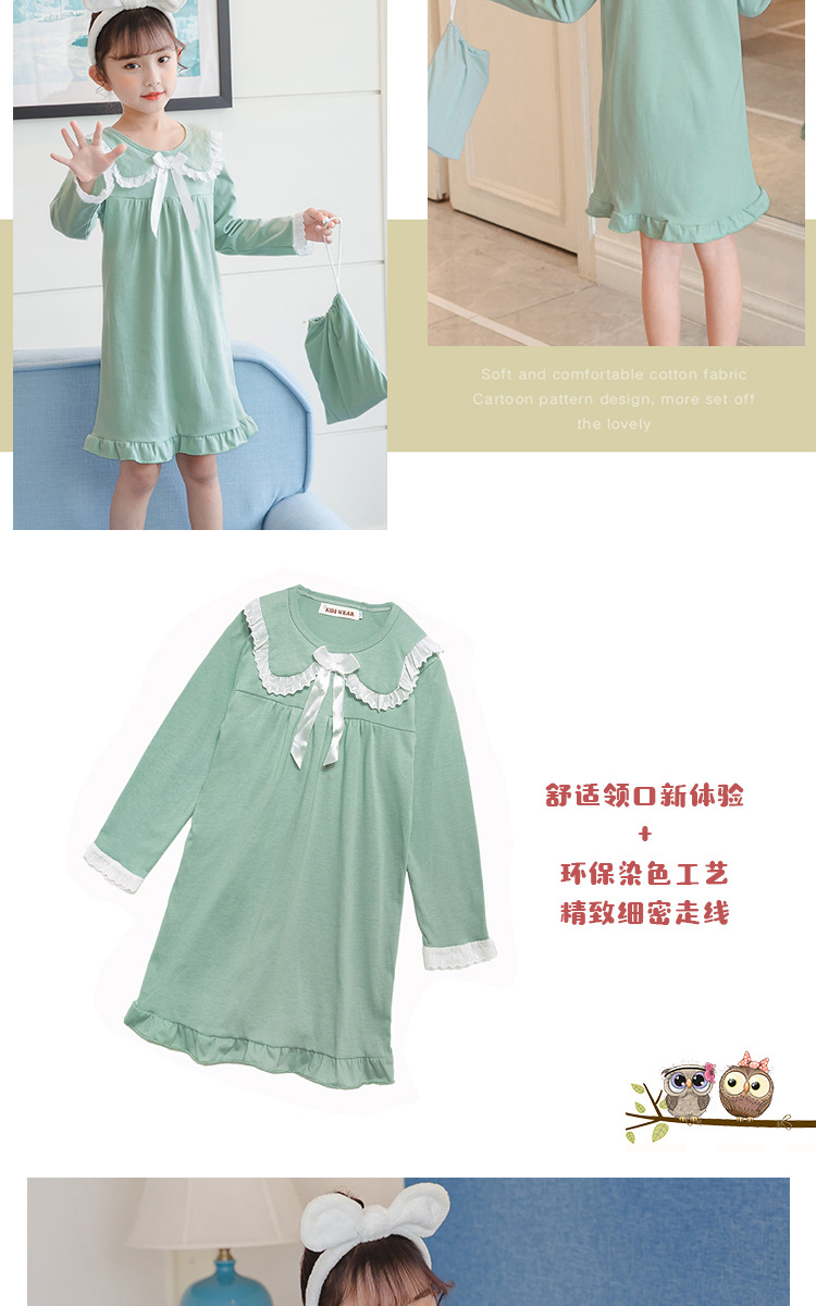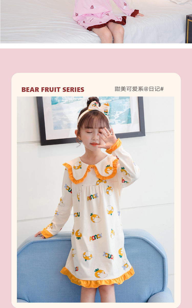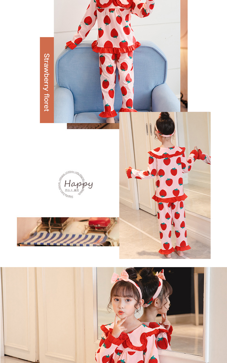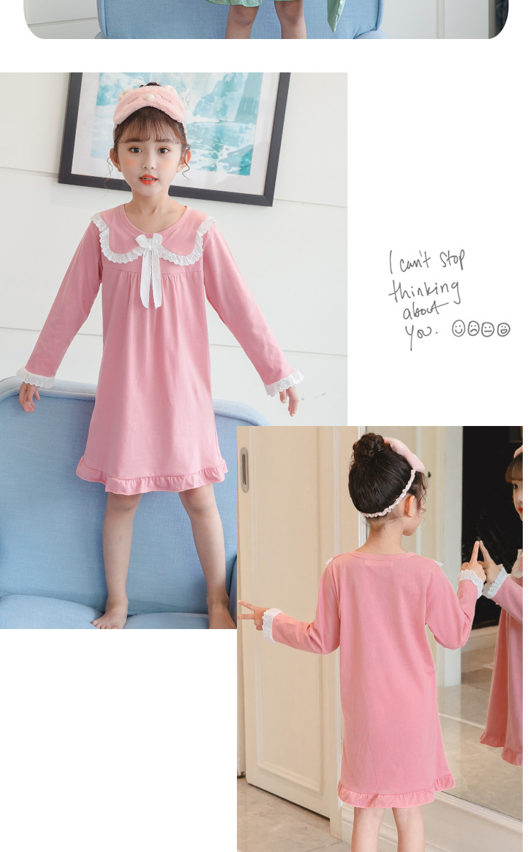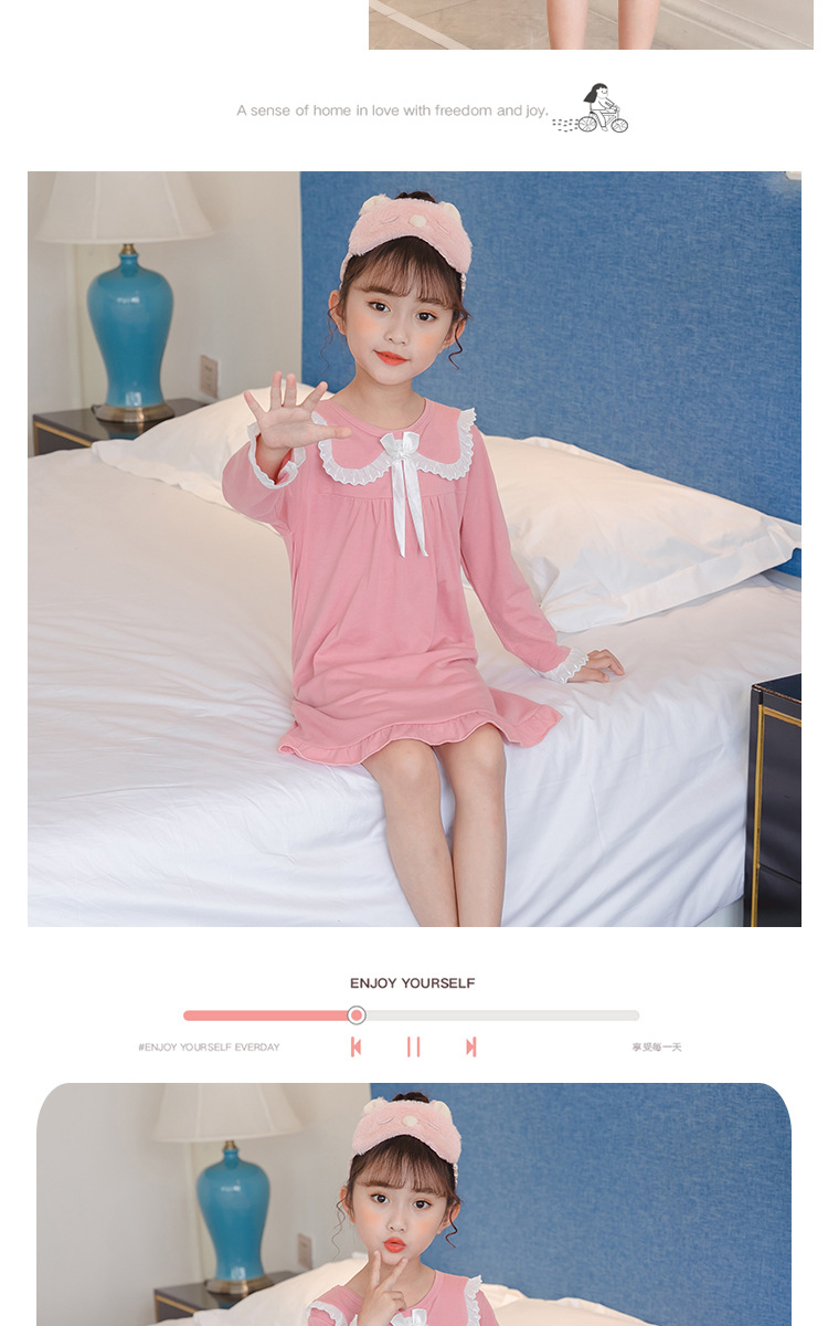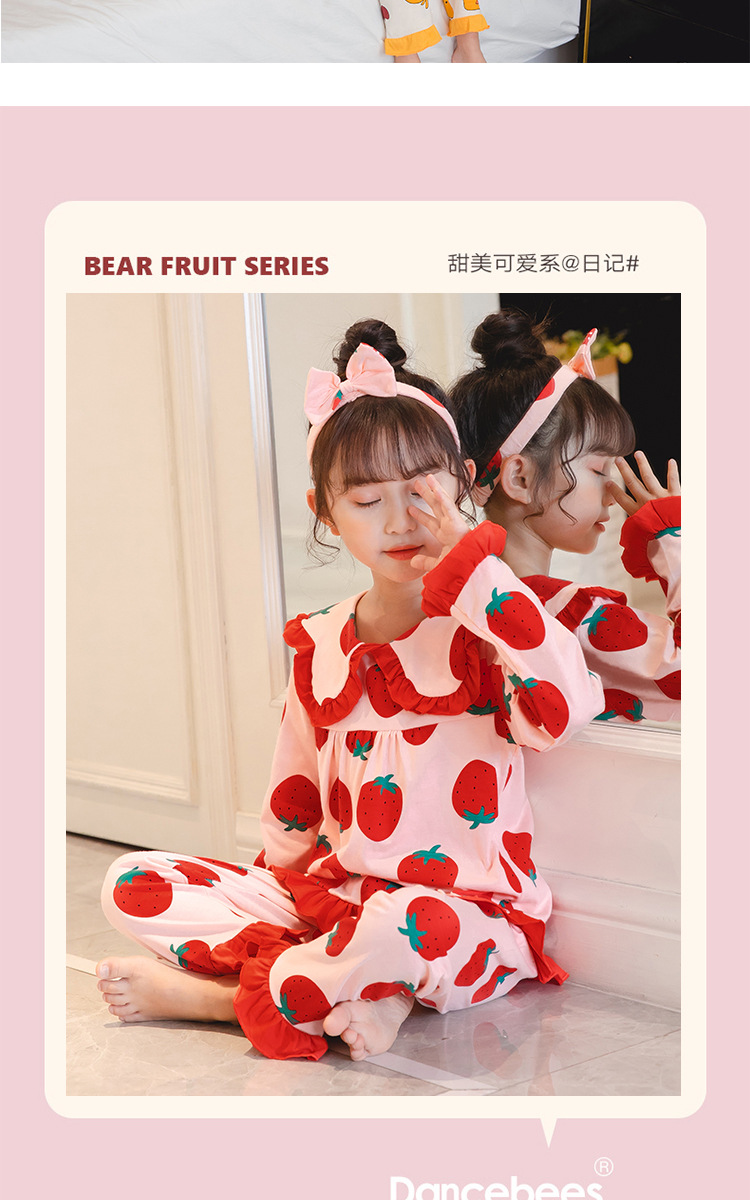 어린이 잠옷 소녀 봄과 가을 여름 새로운 단색 면 귀여운 긴 소매 세트 소녀 잠옷 어린이 의류 공주 스타일스토어 가기