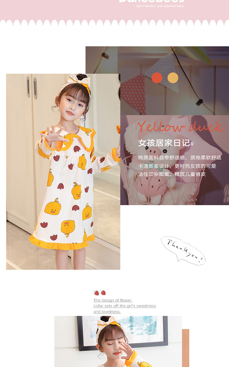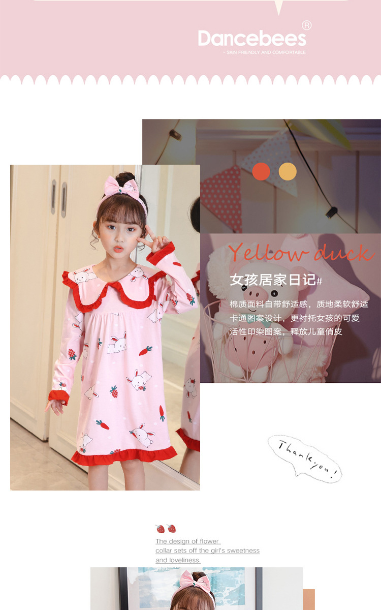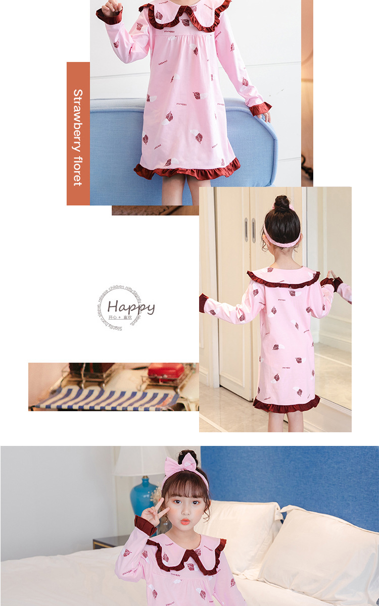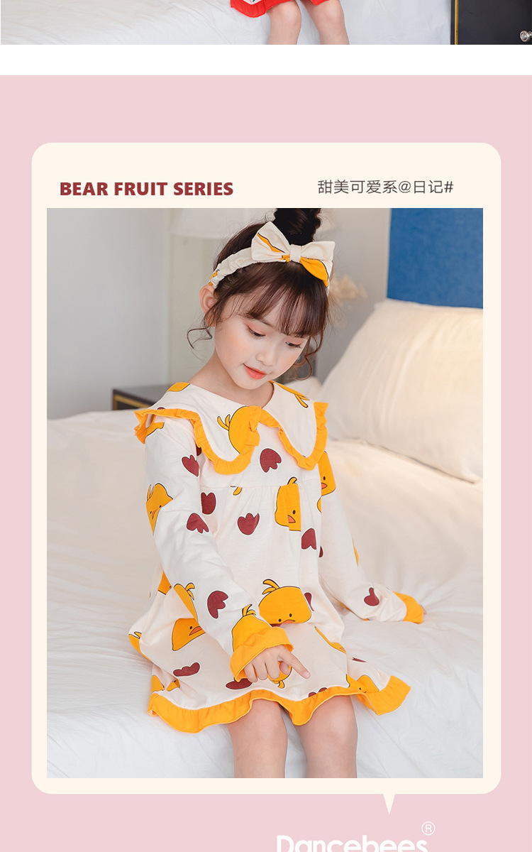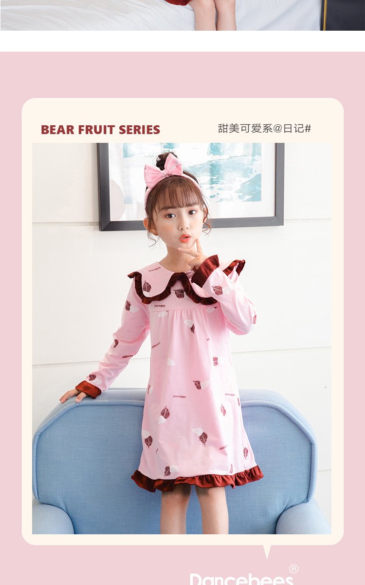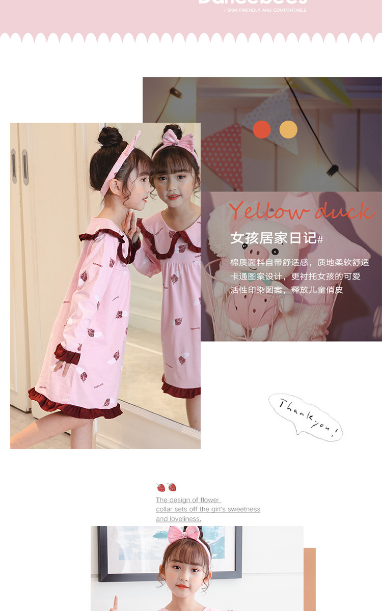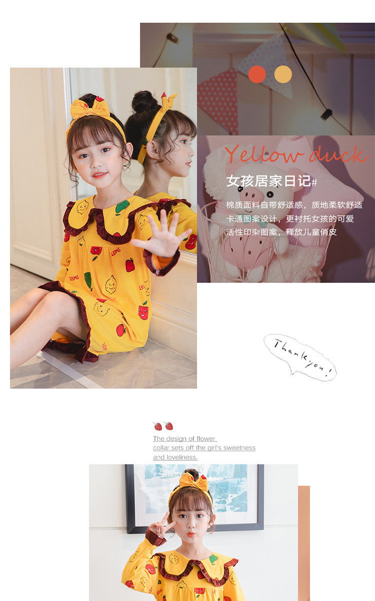 어린이 잠옷 소녀 봄과 가을 여름 새로운 단색 면 귀여운 긴 소매 세트 소녀 잠옷 어린이 의류 공주 스타일스토어 가기