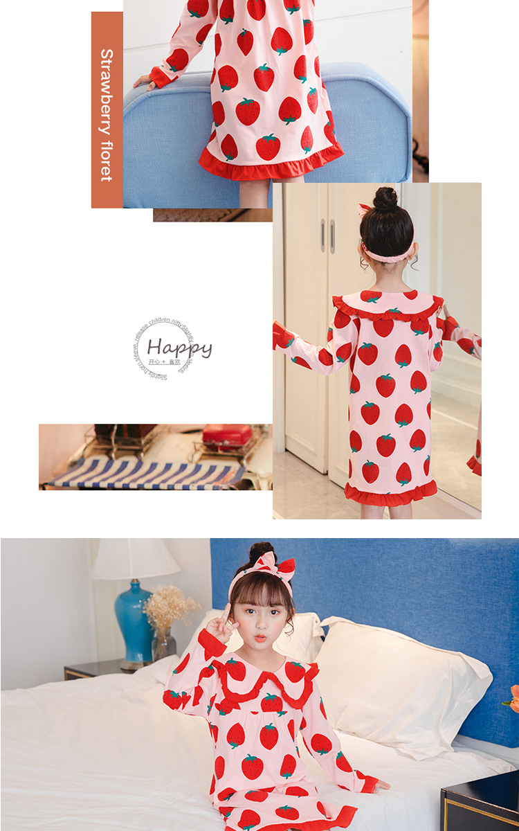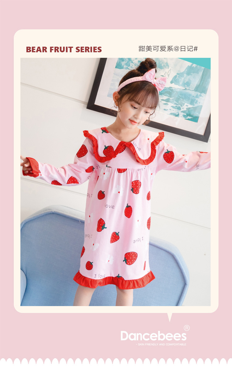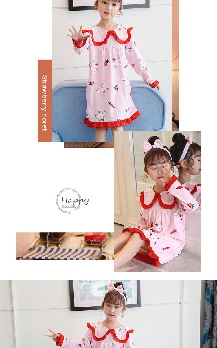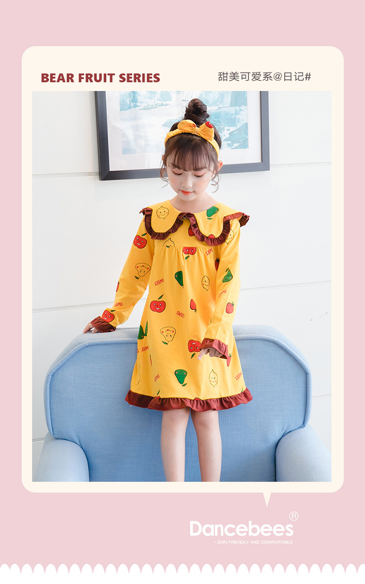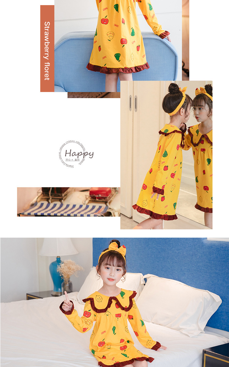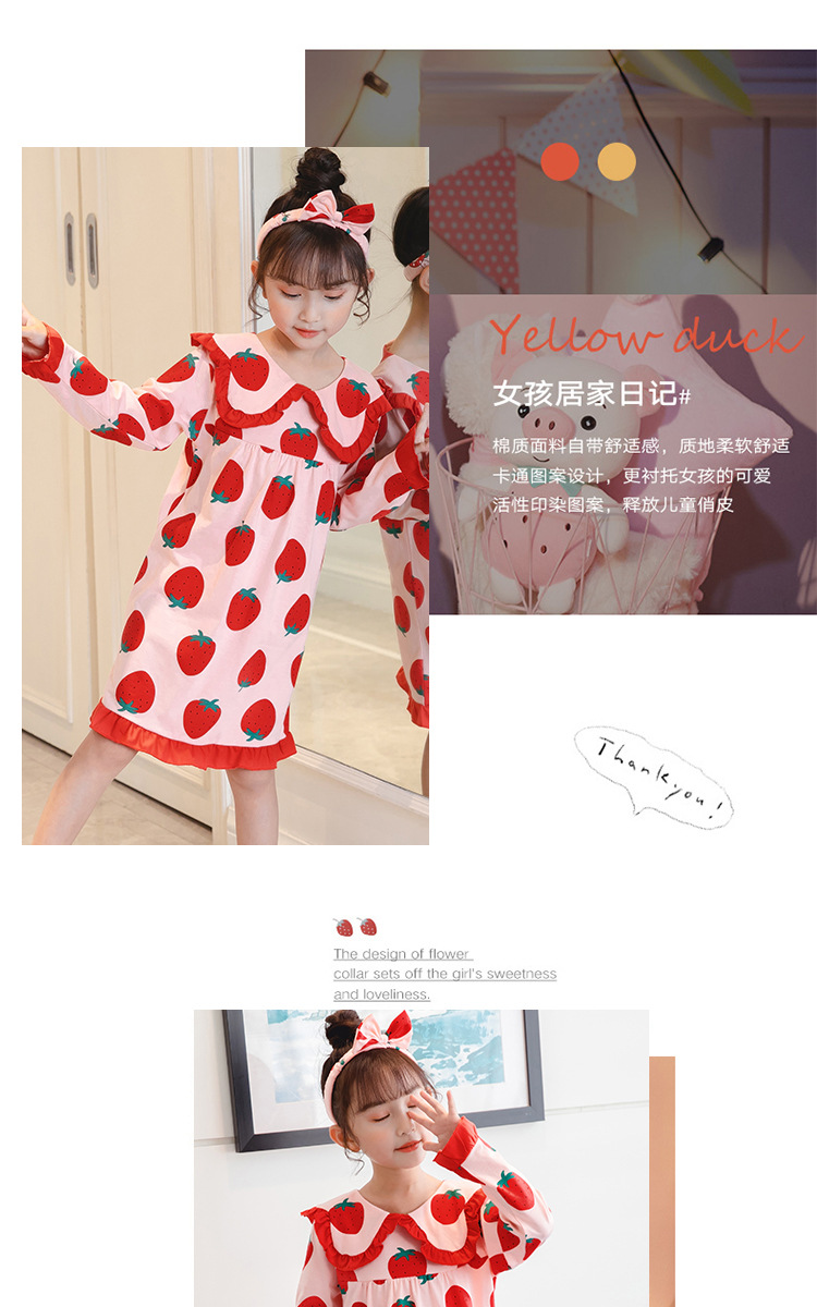 어린이 잠옷 소녀 봄과 가을 여름 새로운 단색 면 귀여운 긴 소매 세트 소녀 잠옷 어린이 의류 공주 스타일스토어 가기