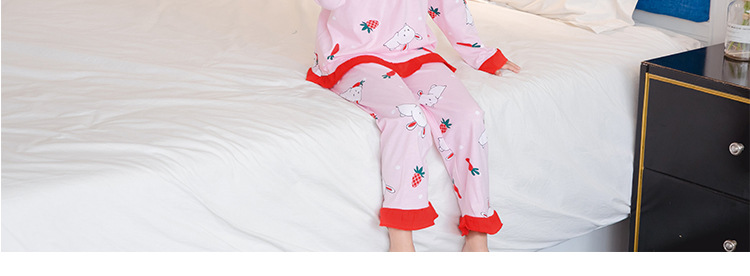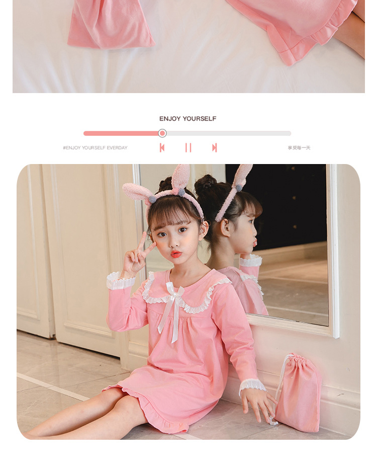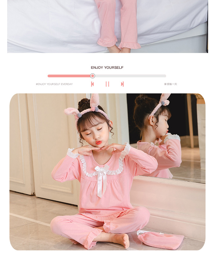 어린이 잠옷 소녀 봄과 가을 여름 새로운 단색 면 귀여운 긴 소매 세트 소녀 잠옷 어린이 의류 공주 스타일