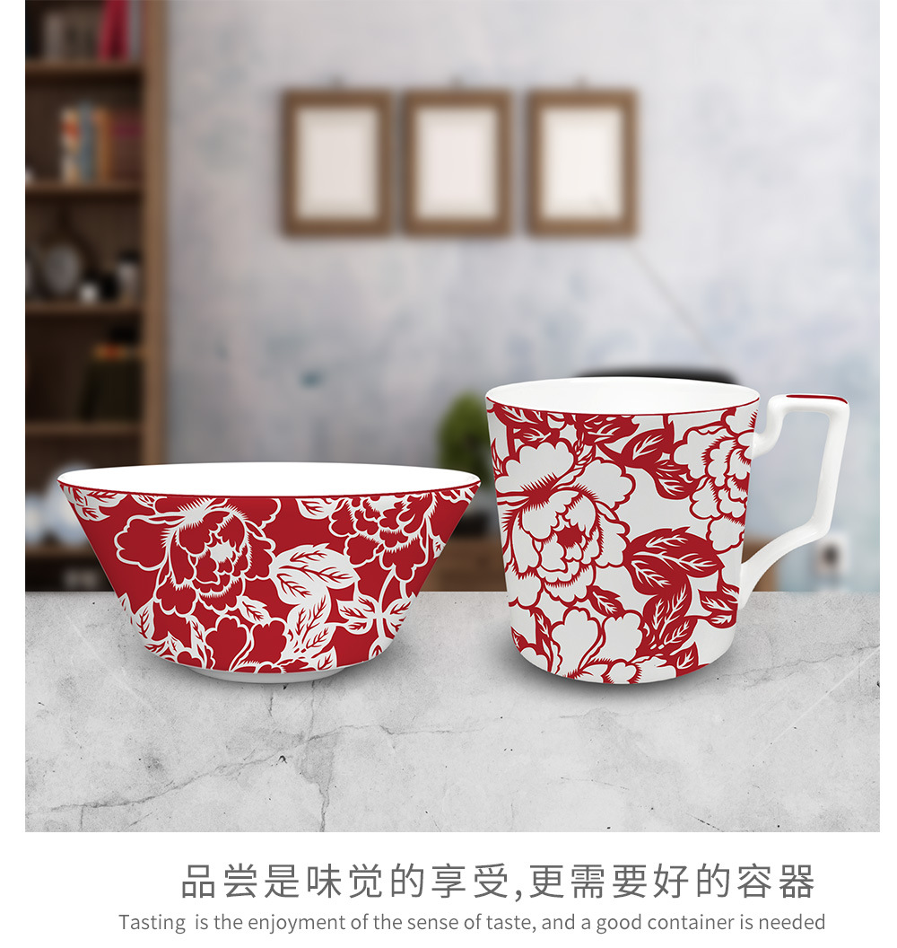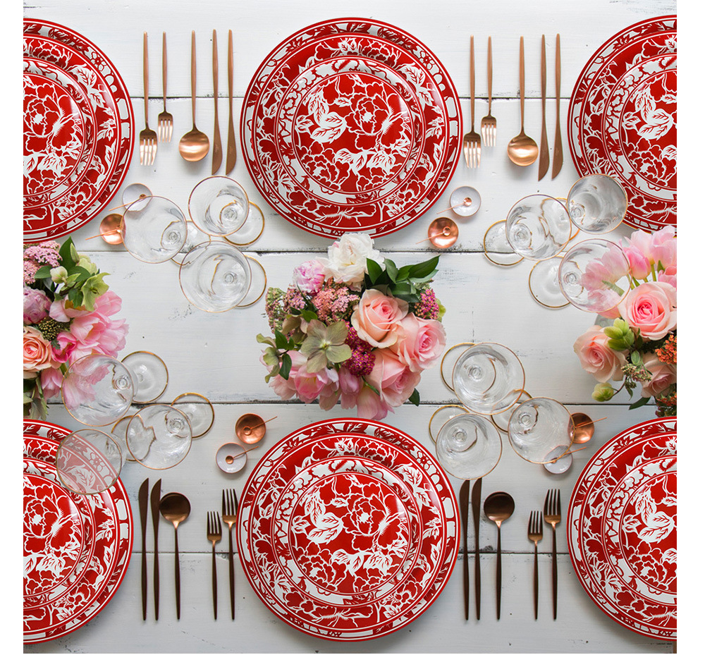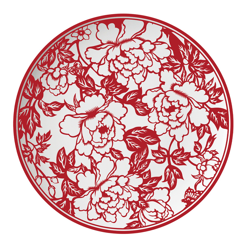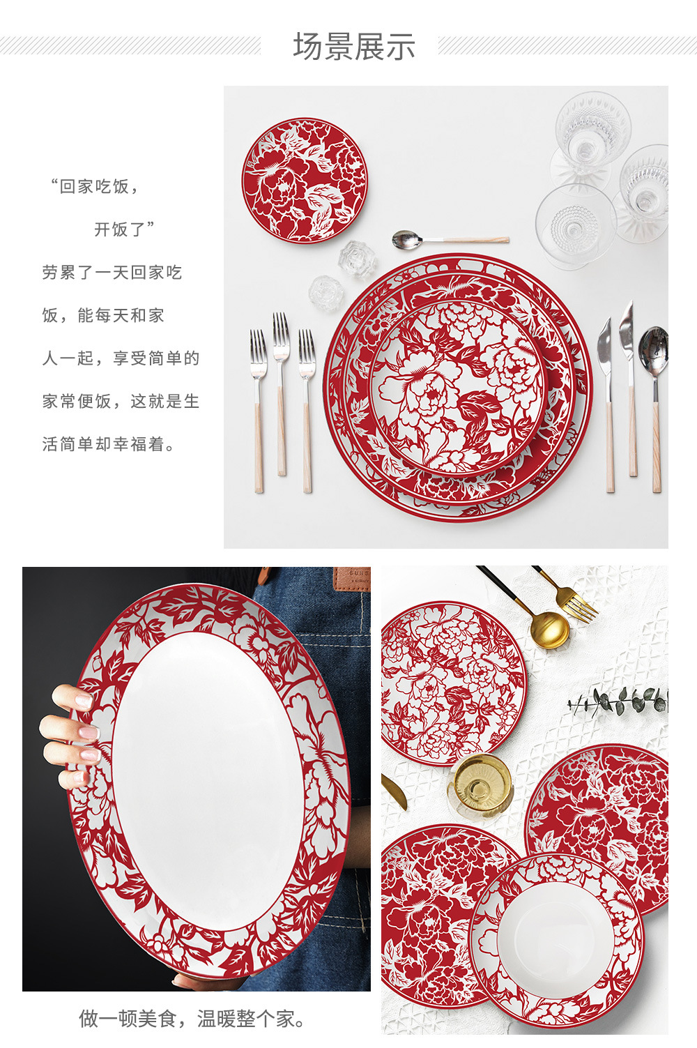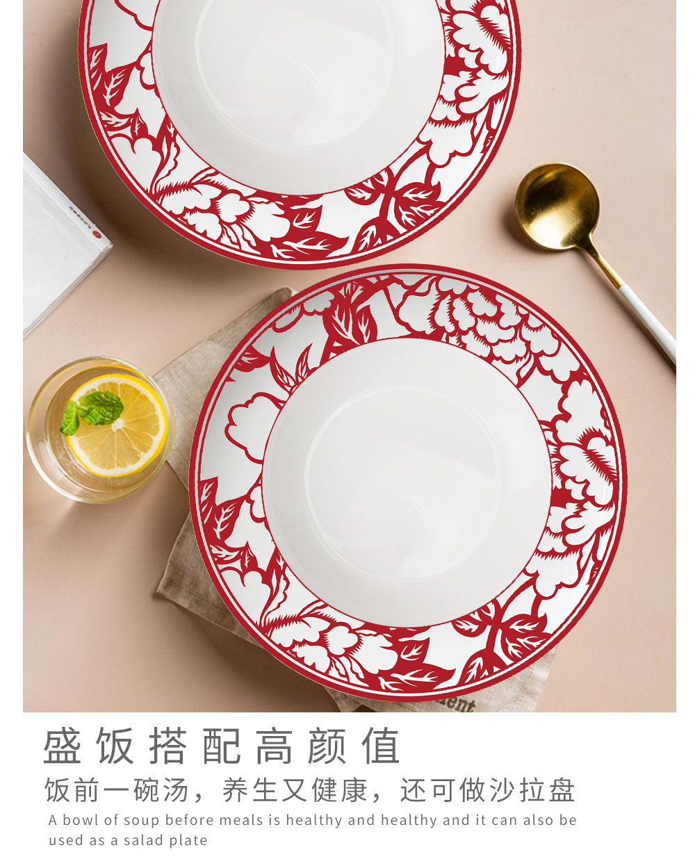 중국 스타일 종이 컷 모란 축제 웨딩 본 중국 세라믹 디너 플레이트 호텔 레스토랑 과일 스테이크 플레이트 결혼 선물