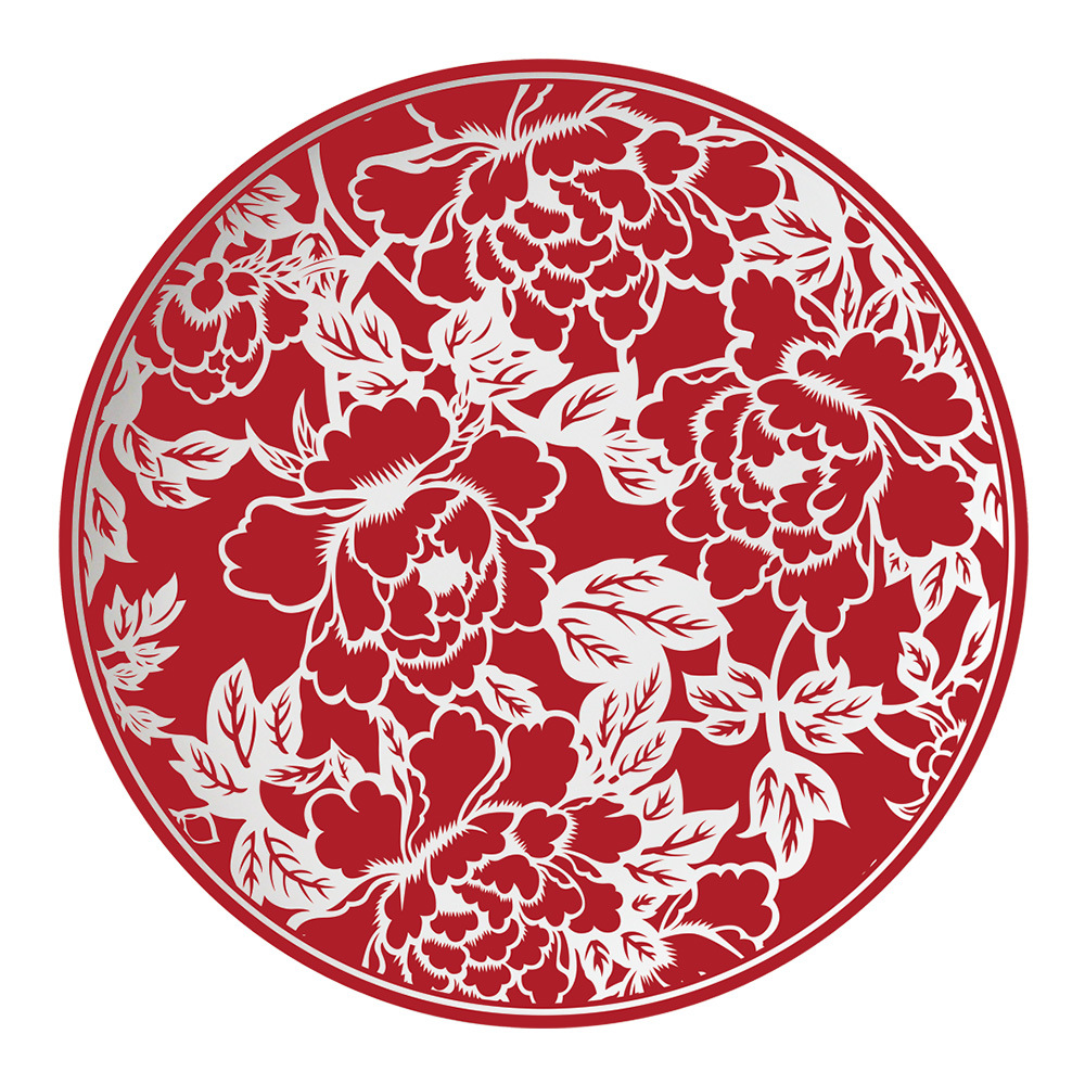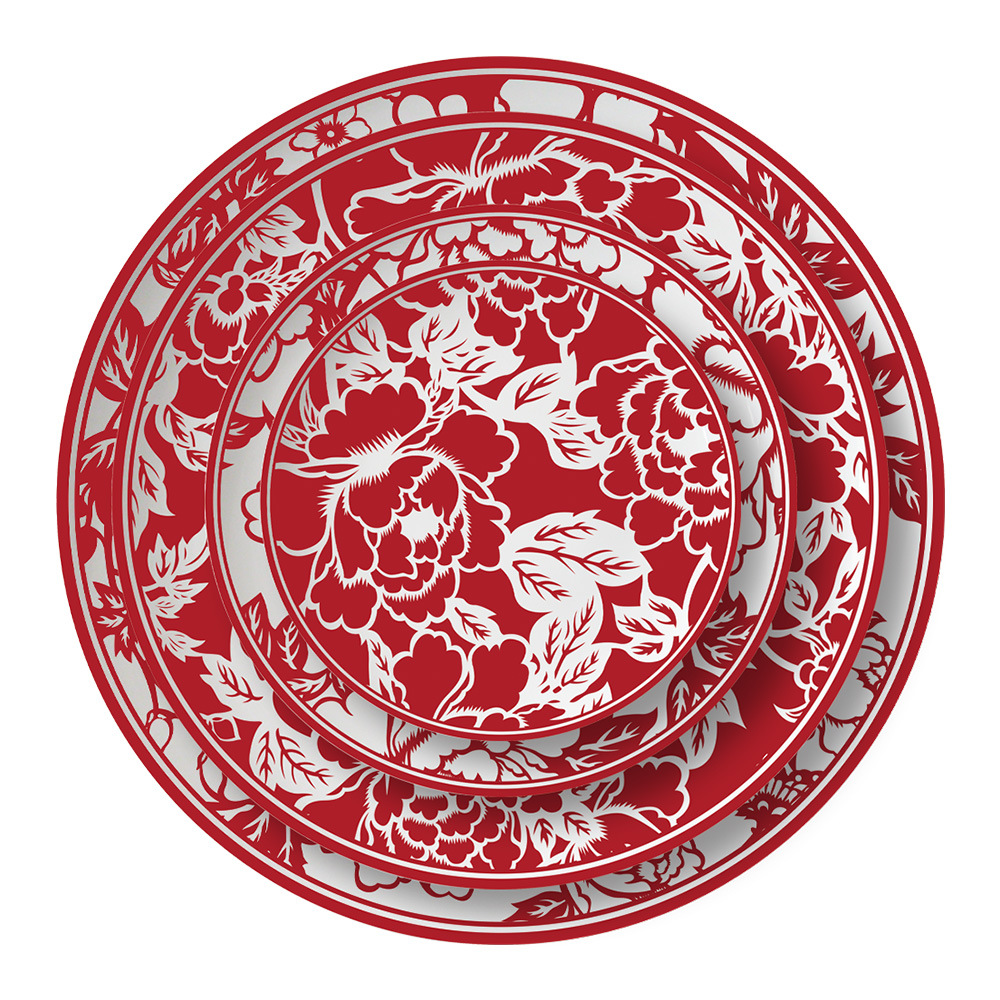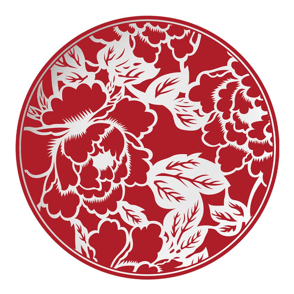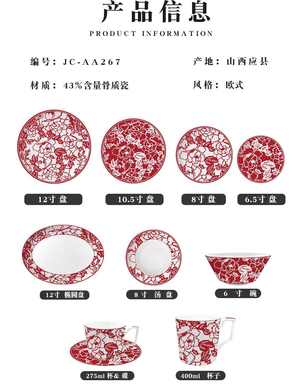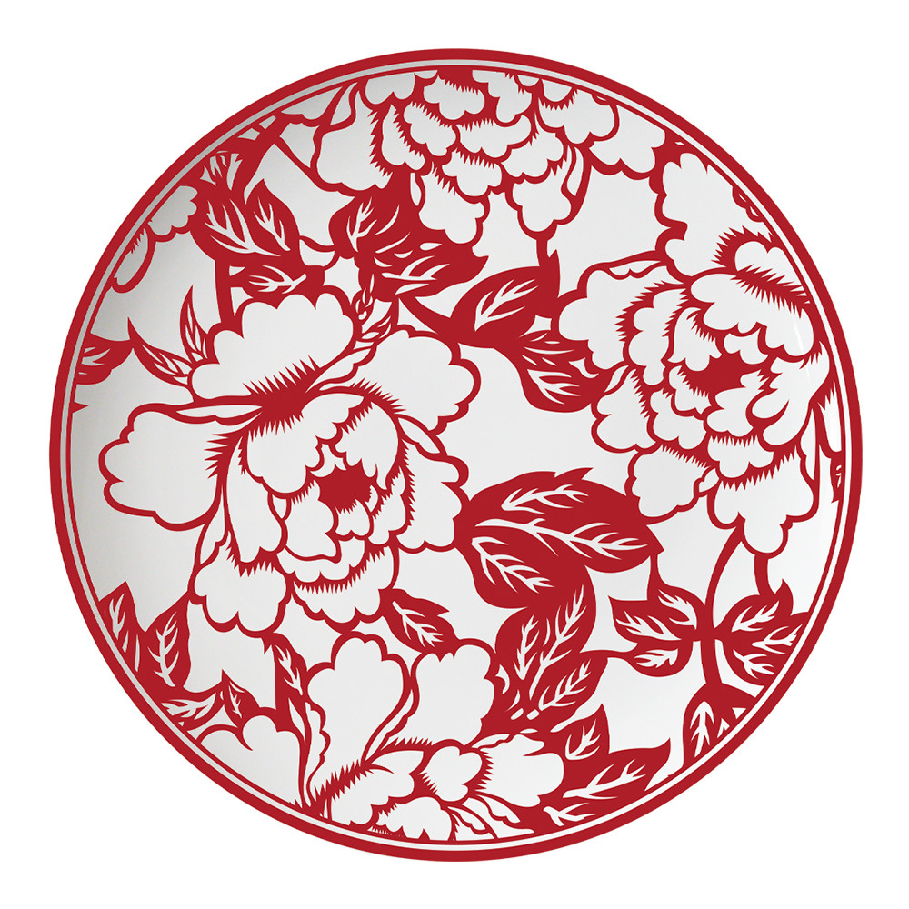 중국 스타일 종이 컷 모란 축제 웨딩 본 중국 세라믹 디너 플레이트 호텔 레스토랑 과일 스테이크 플레이트 결혼 선물