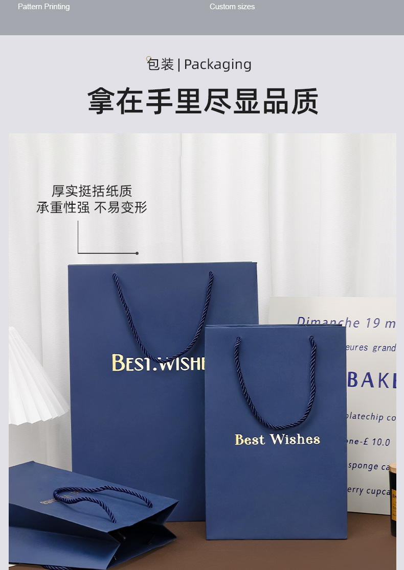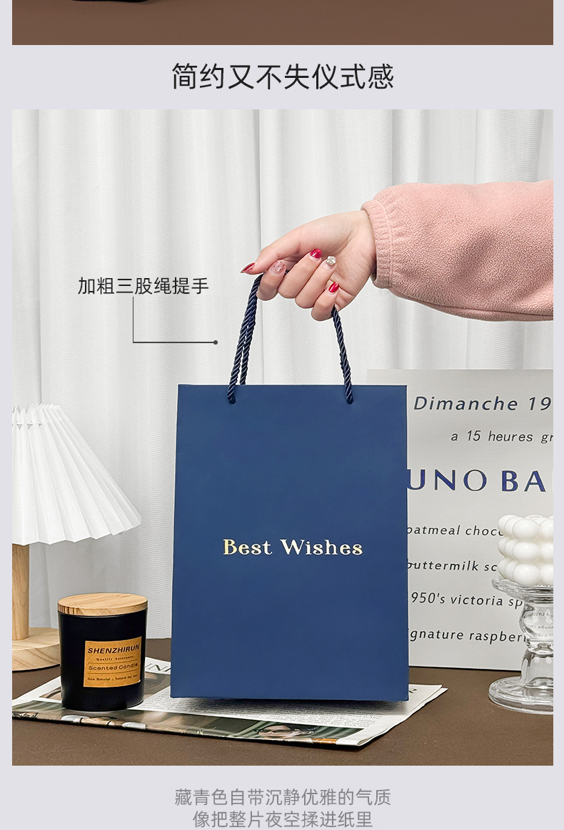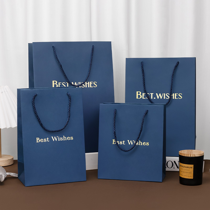 재고 블루 선물 가방 손 종이 가방 절묘한 쇼핑 대형 포장 가방 화장품 선물 가방스토어 가기