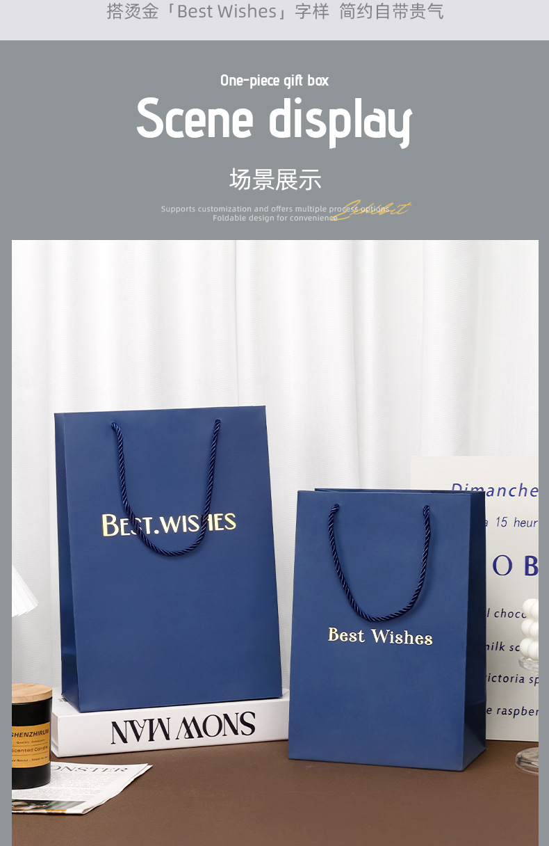 재고 블루 선물 가방 손 종이 가방 절묘한 쇼핑 대형 포장 가방 화장품 선물 가방
