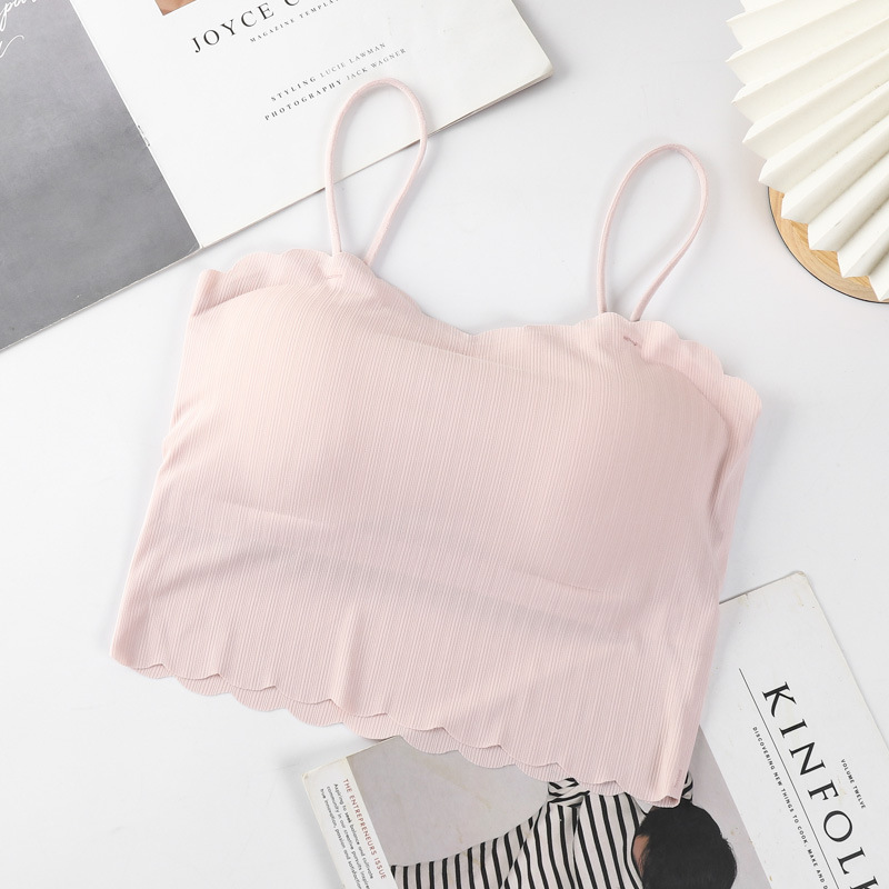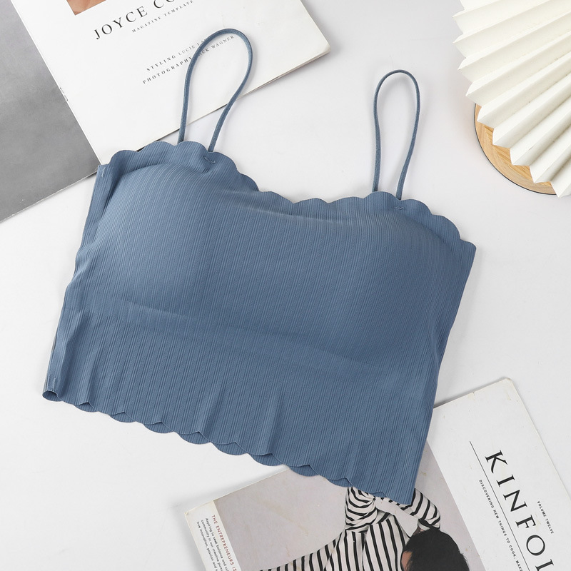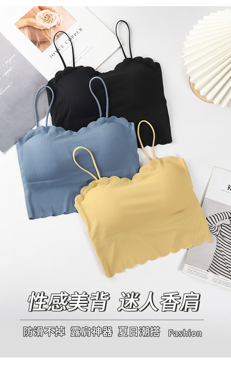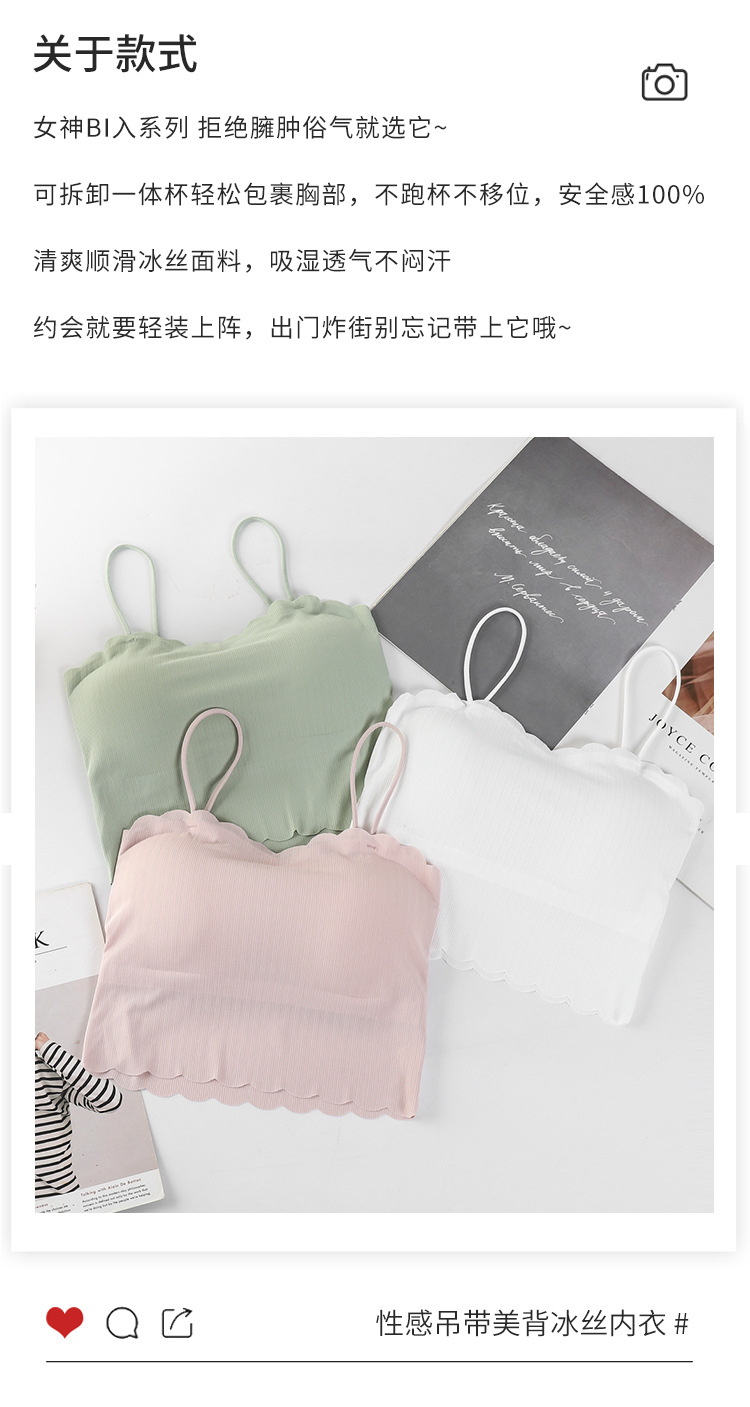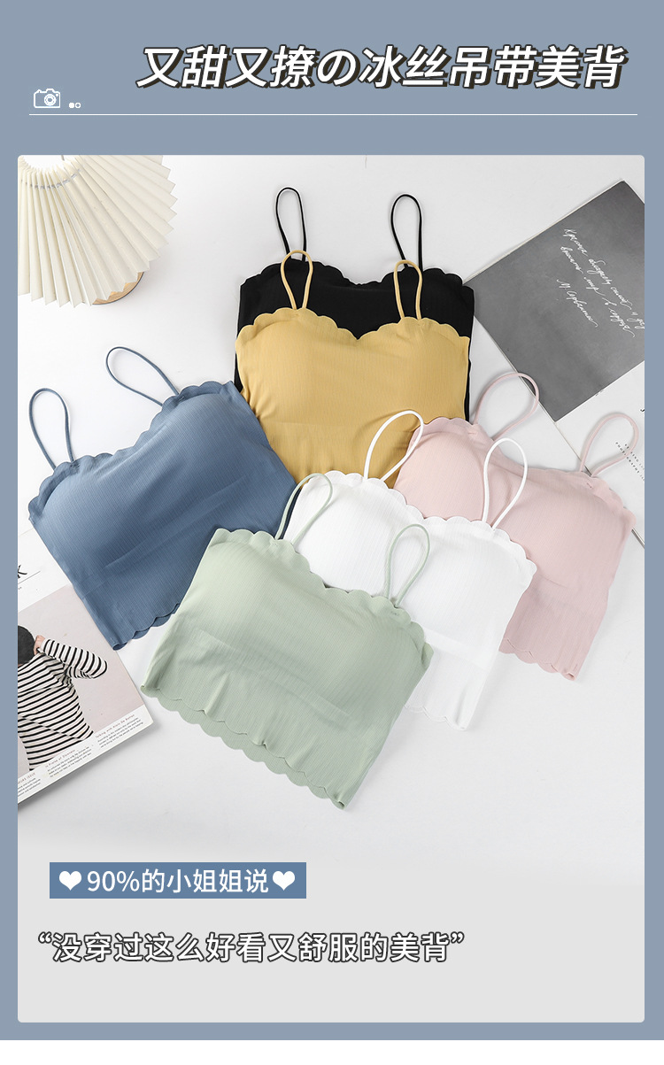 달콤한 아이스 실크 아름다운 백 슬링 속옷 여성용 안티 러닝 라이트 노 스틸 링 가슴 패드 통기성 바닥 내부 랩 유방 튜브 탑