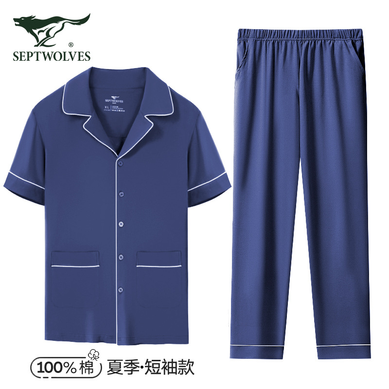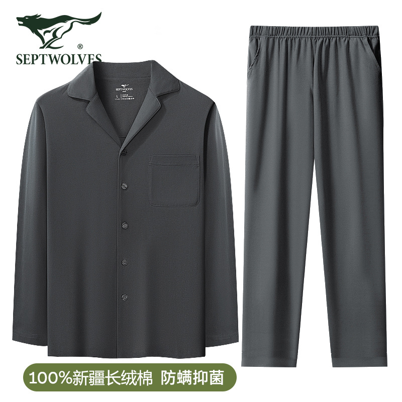 7 개의 늑대 남자 순면 홈 옷 클리어 컬러 카디건 긴 소매 홈 세트 코튼 워킹 홈 잠옷 세트