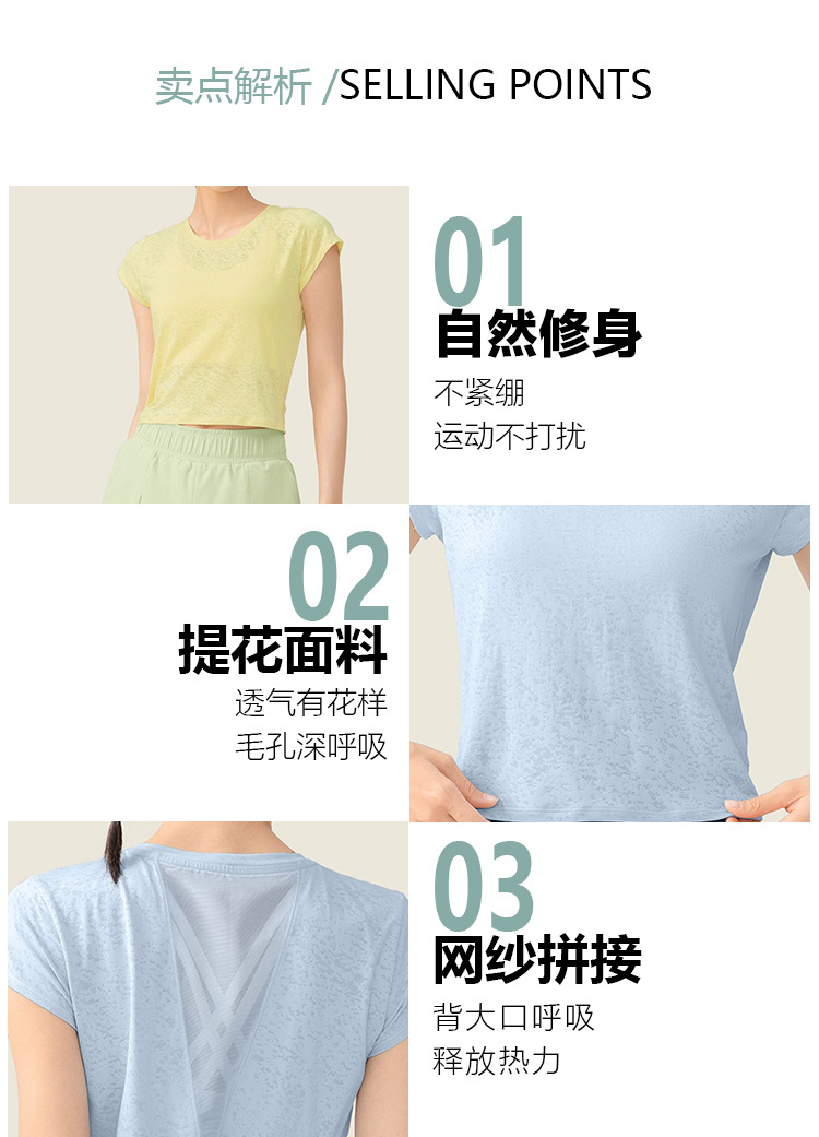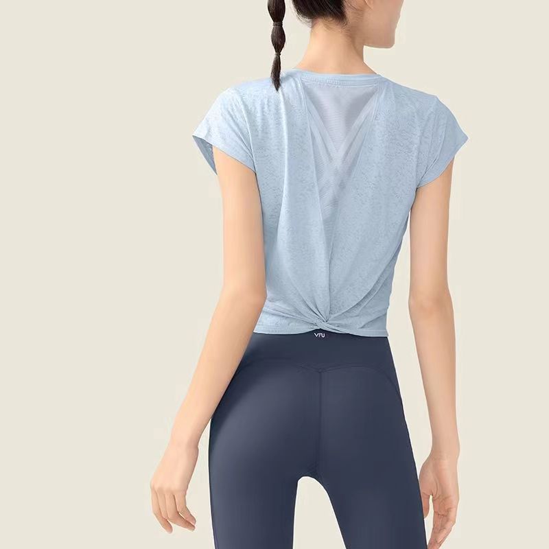 요가 커버 업 속건 티셔츠 여성 봄 아름다운 등 스포츠 메쉬 봄과 여름 반팔 피트니스웨어 요가 탑 여성스토어 가기
