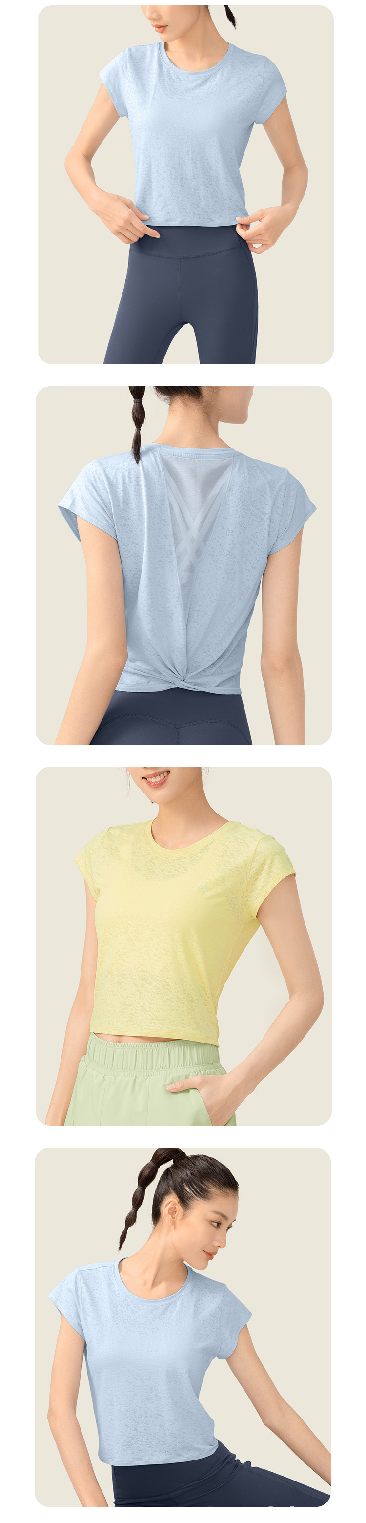 요가 커버 업 속건 티셔츠 여성 봄 아름다운 등 스포츠 메쉬 봄과 여름 반팔 피트니스웨어 요가 탑 여성
