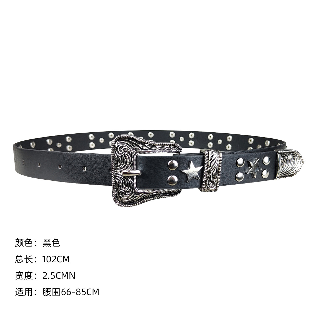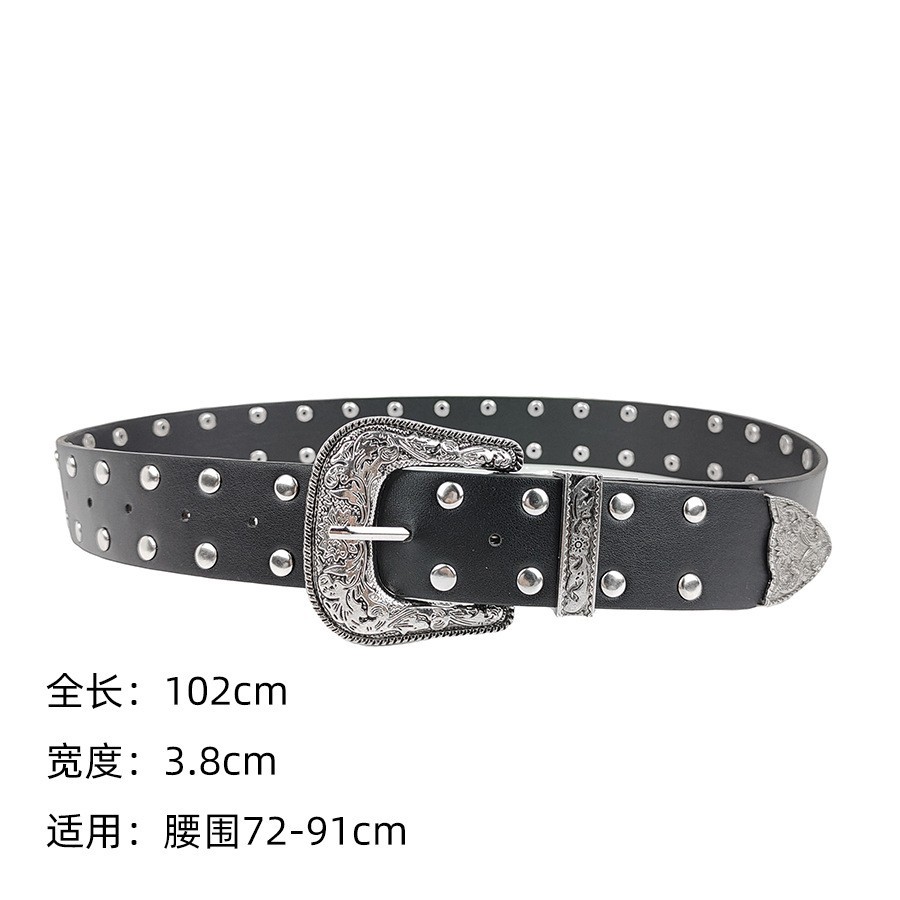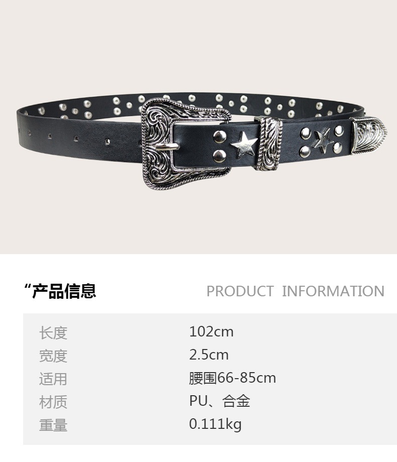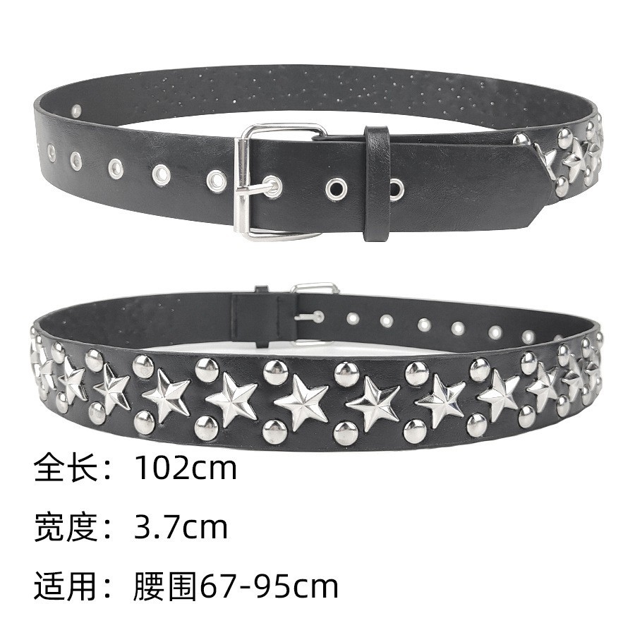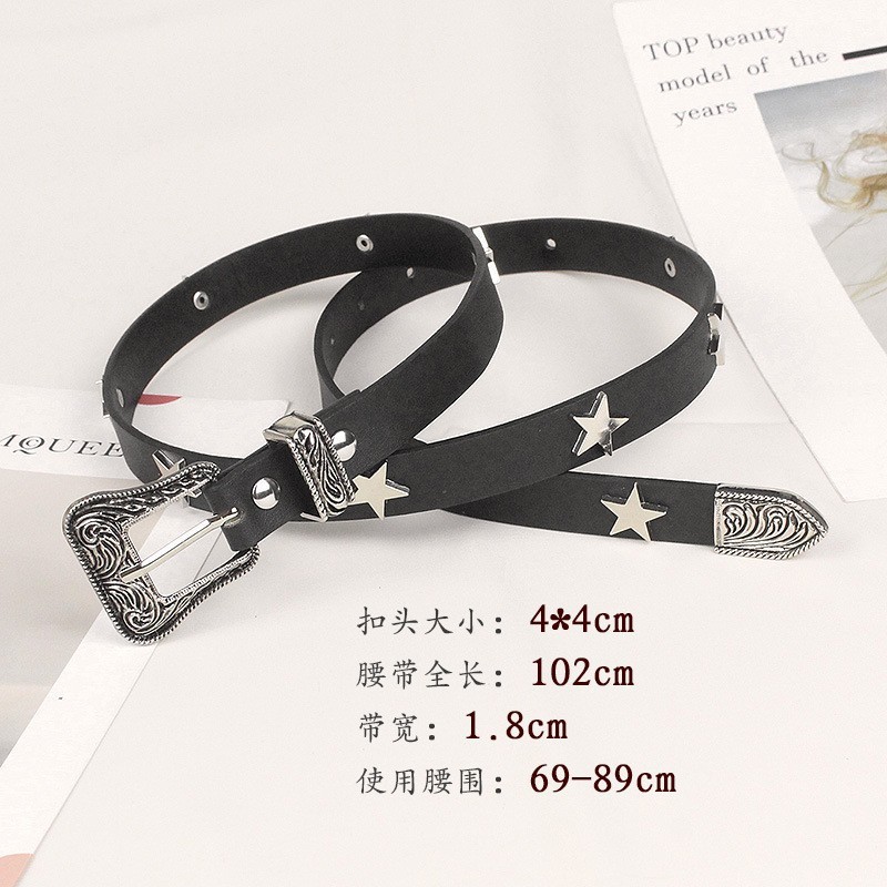 크로스보더 인기 펑크 스타일 오각별 여성용 벨트 디자인 리벳 질감 벨트 도매 조각 버클 PU스토어 가기
