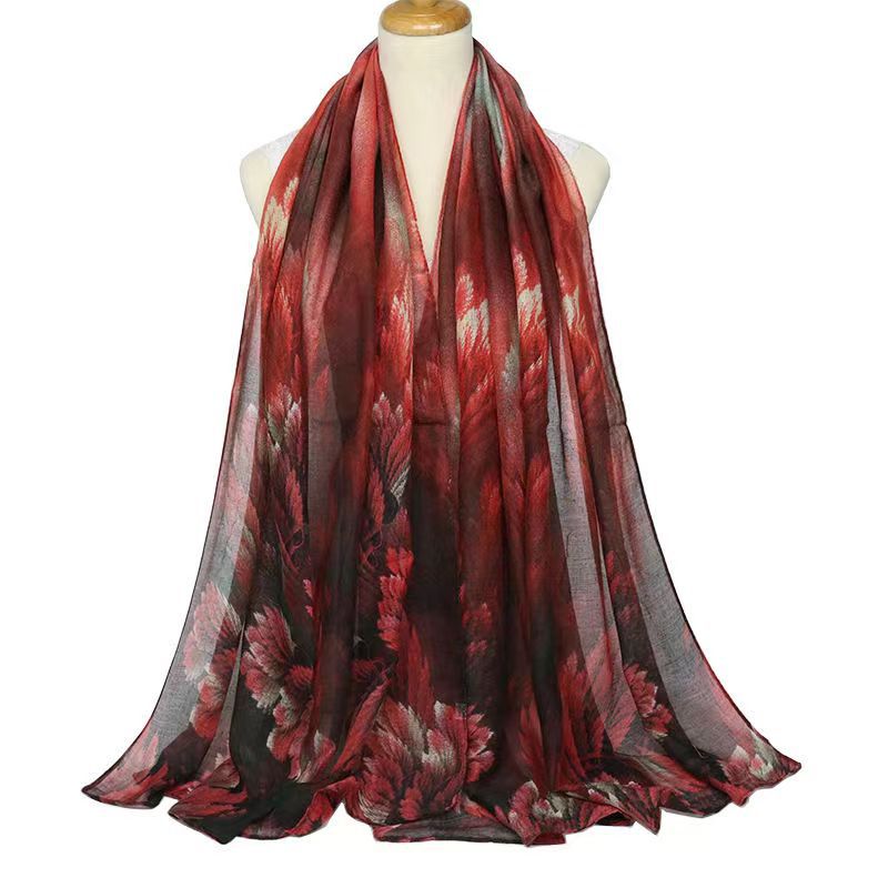 봄여름 여성용 발리사 스카프, 산호꽃무늬 실크 스카프, 면마 느낌의 거즈 스카프, 수출용 숄, 다용도 스카프