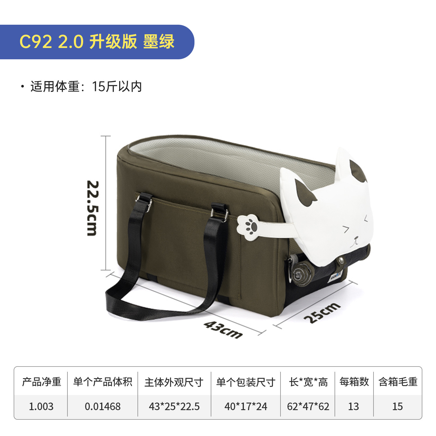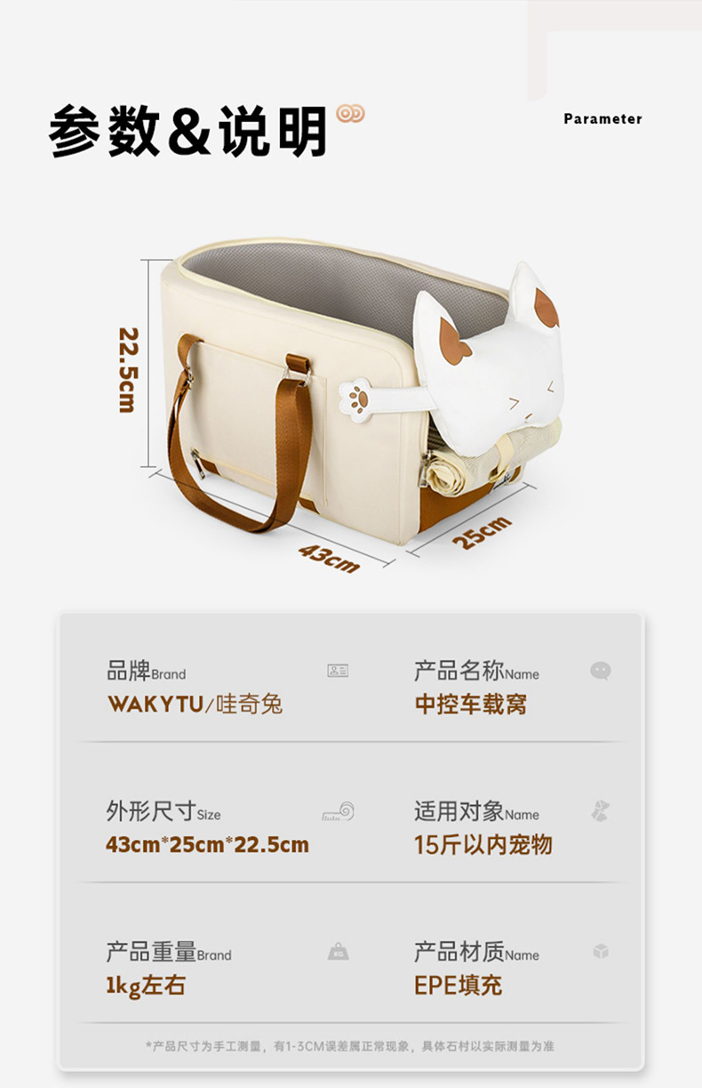 Wakytu 영국산 차량용 반려동물 가방 통기성 좋고 편안한 휴대용 개집 어깨에 메는 야외 고양이집 반려동물 집
