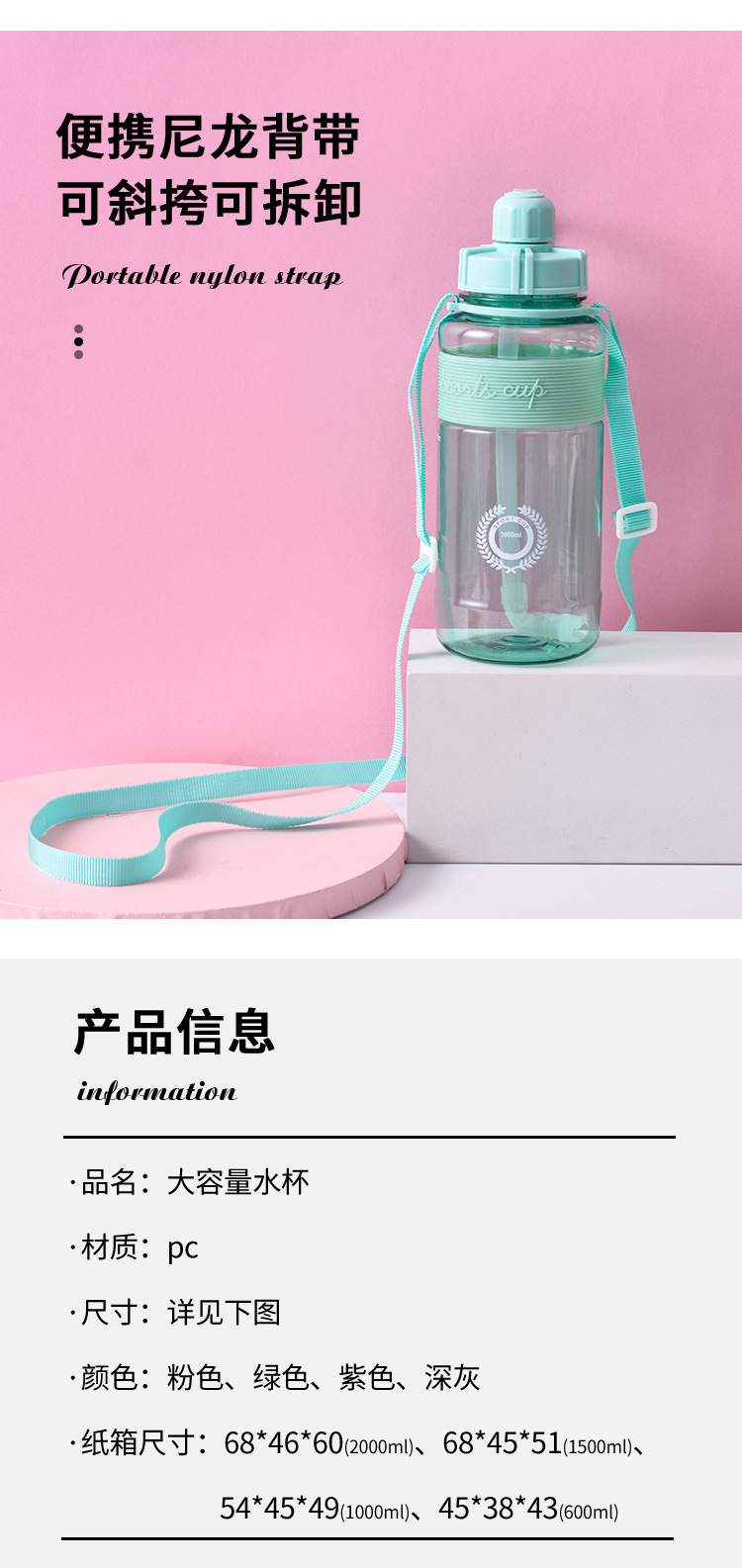 도매 대용량 휴대용 휴대용 스포츠 주전자 야외 피트니스 빨대 공간 컵 사이클링 등산 플라스틱 물 컵스토어 가기