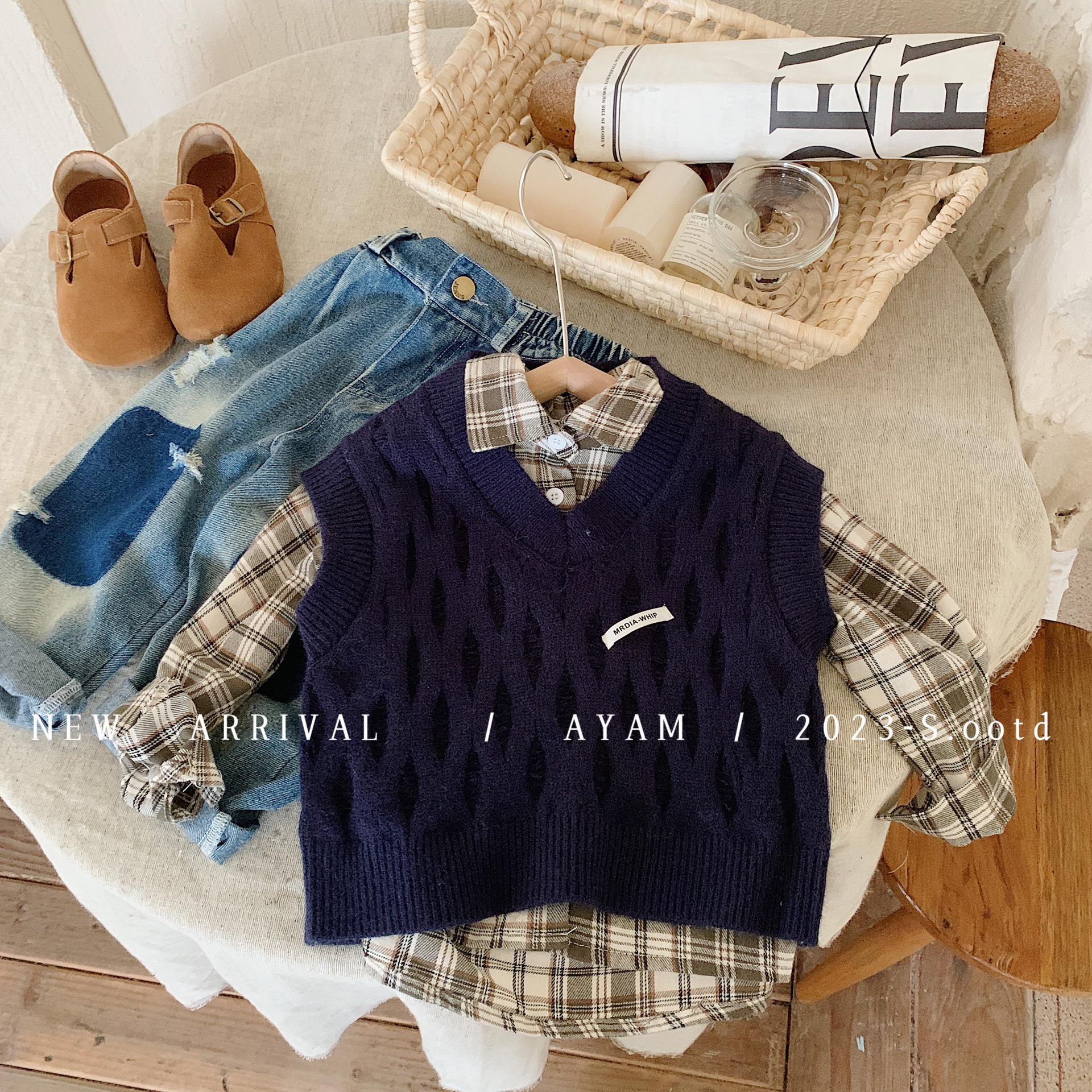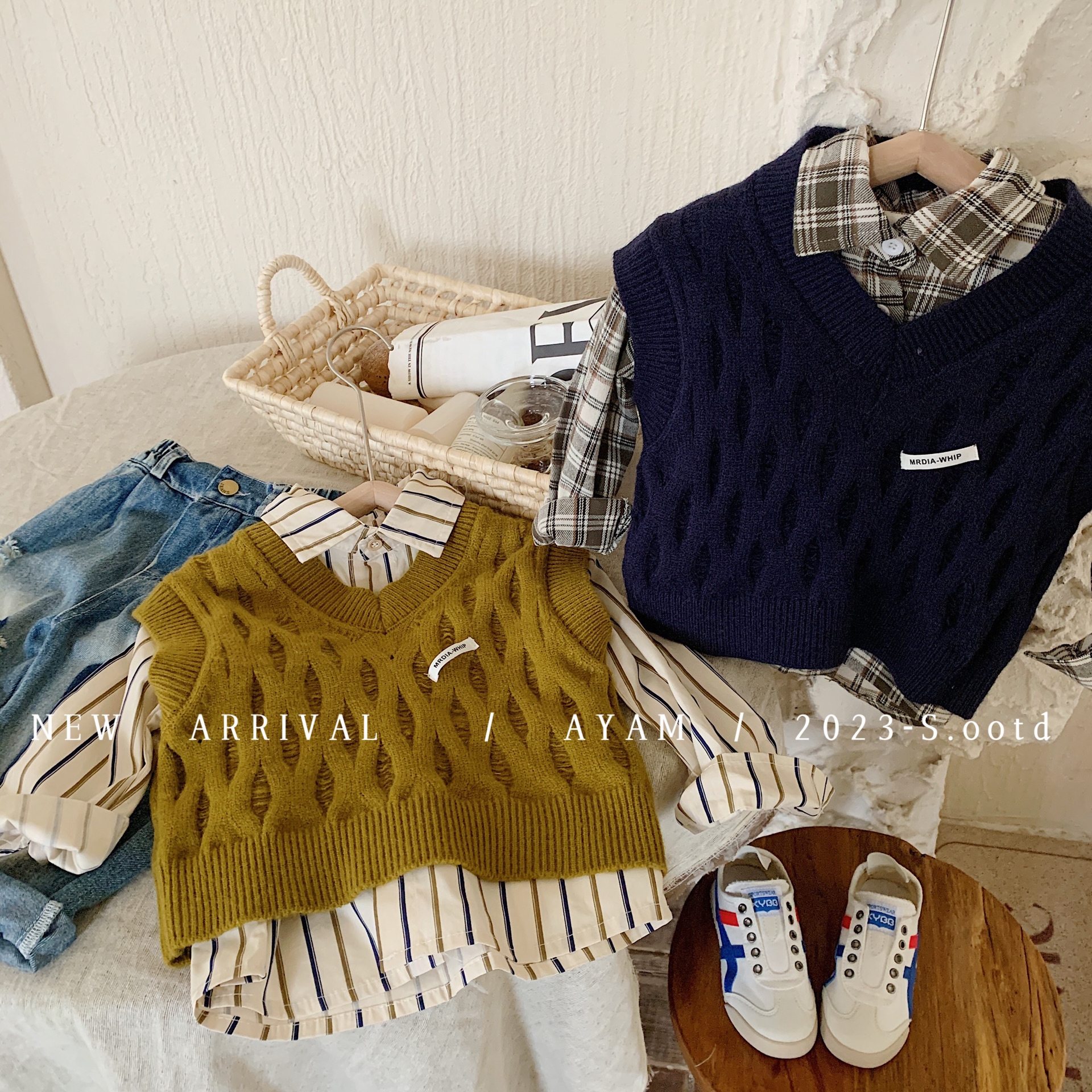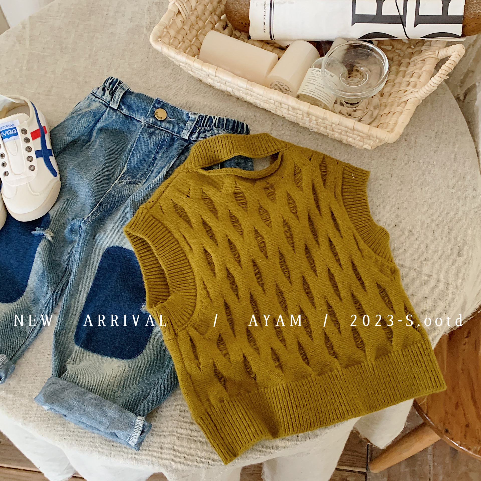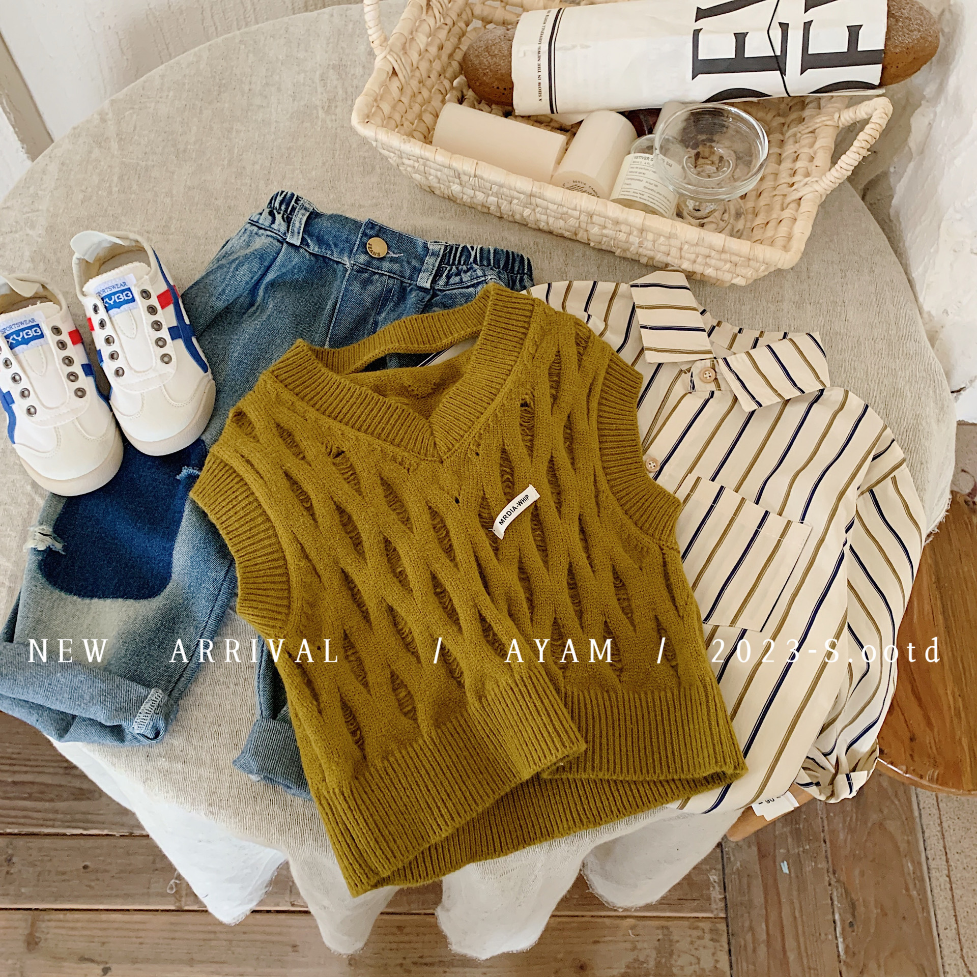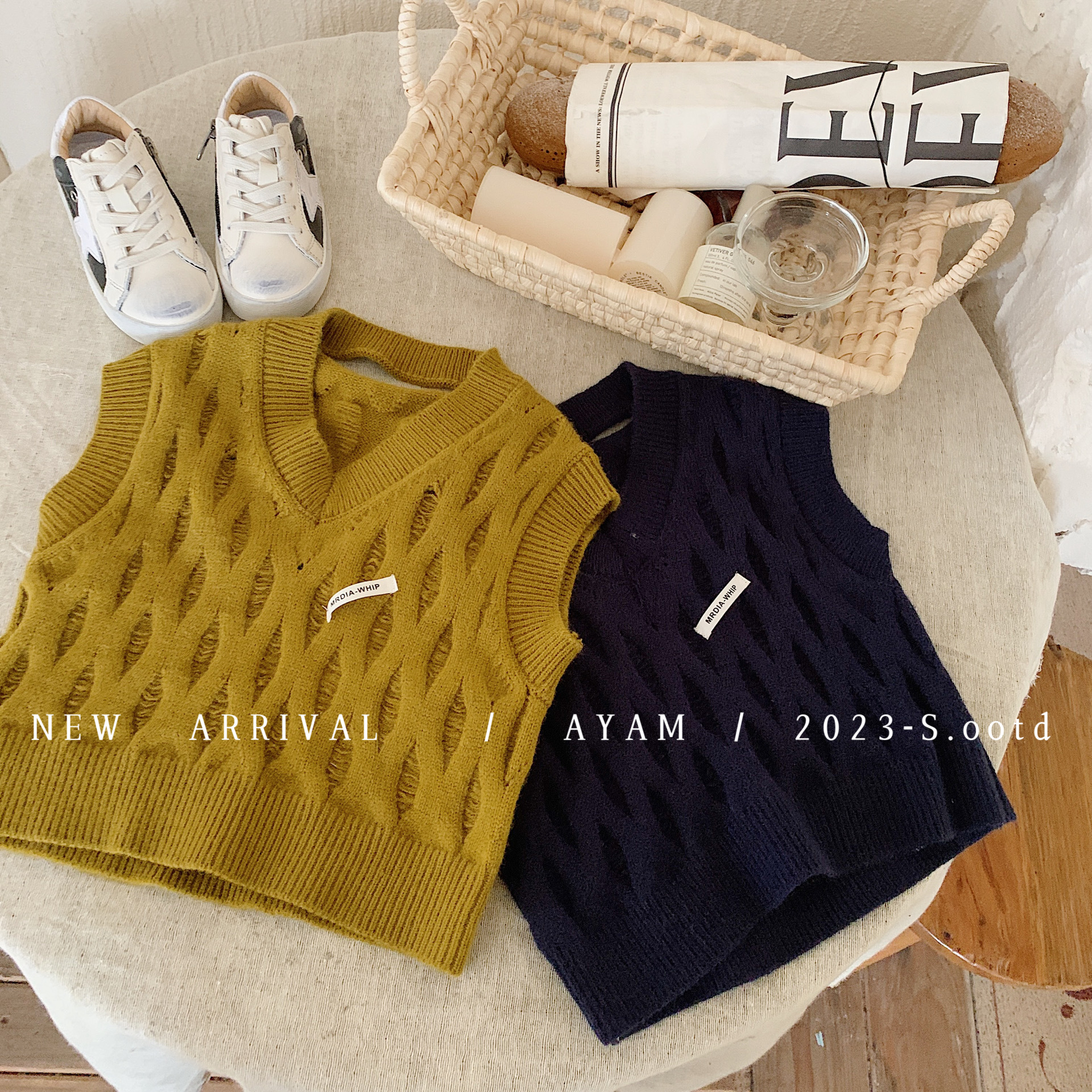 클리어런스 아동용 봄 조끼 스웨터 한국 스타일 일본 스타일 찢어진 디자인 남아용 외투 공장 직판 스타일리시스토어 가기