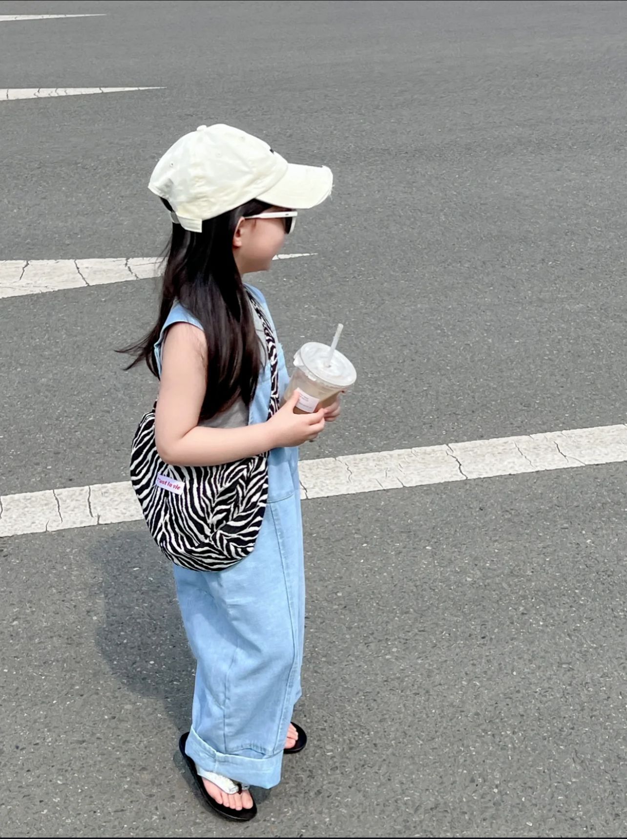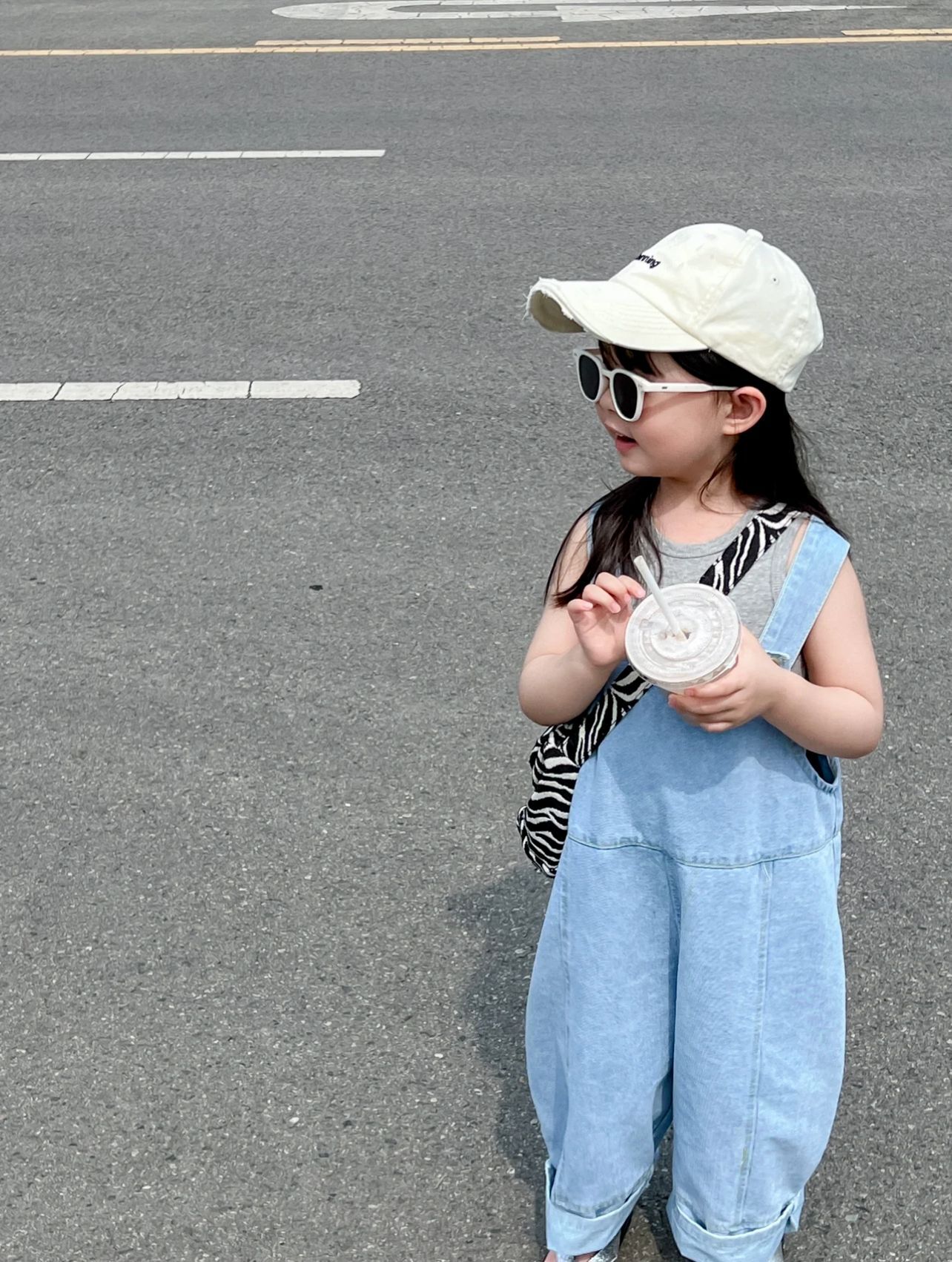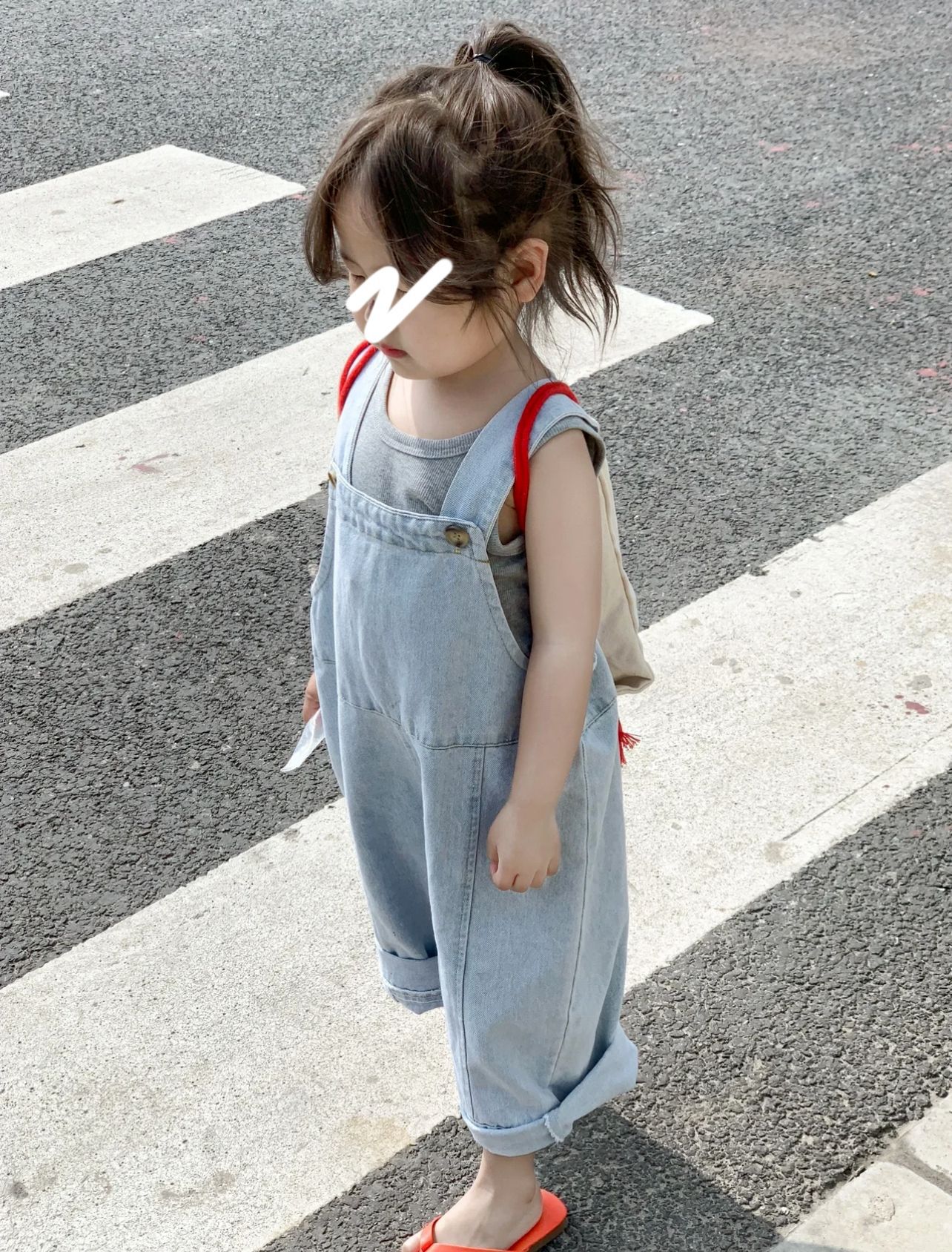 Beibei Yule 한국식 2023 여름 어린이 라이트 블루 데님 느슨한 고생 복고풍 색조 민소매 죄수복스토어 가기