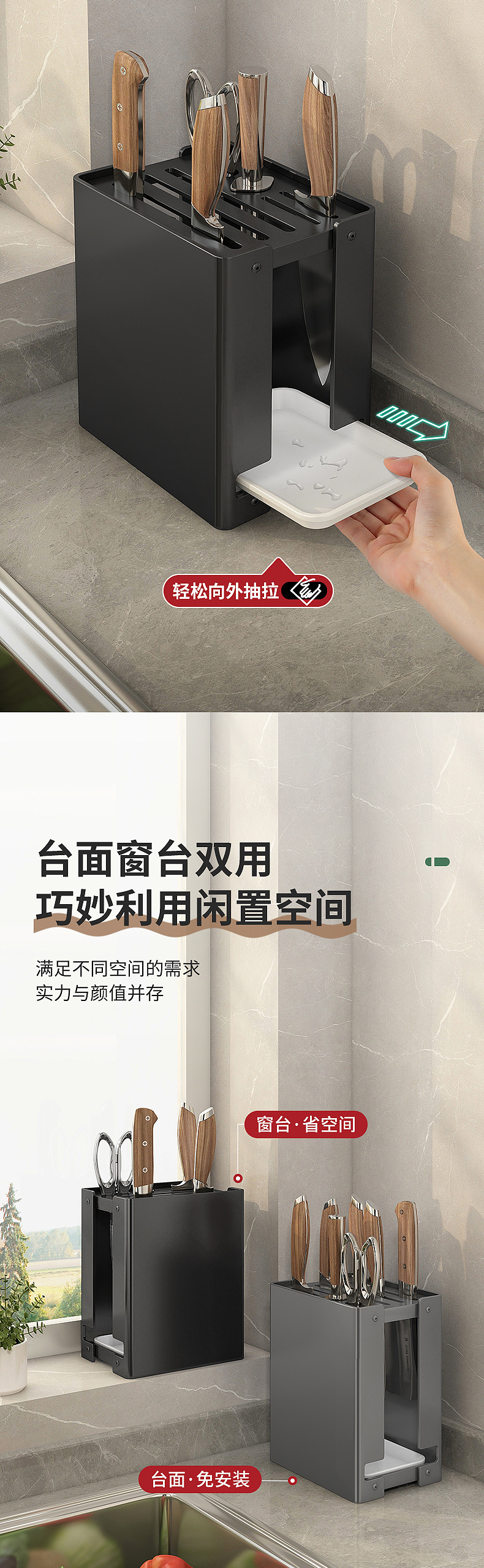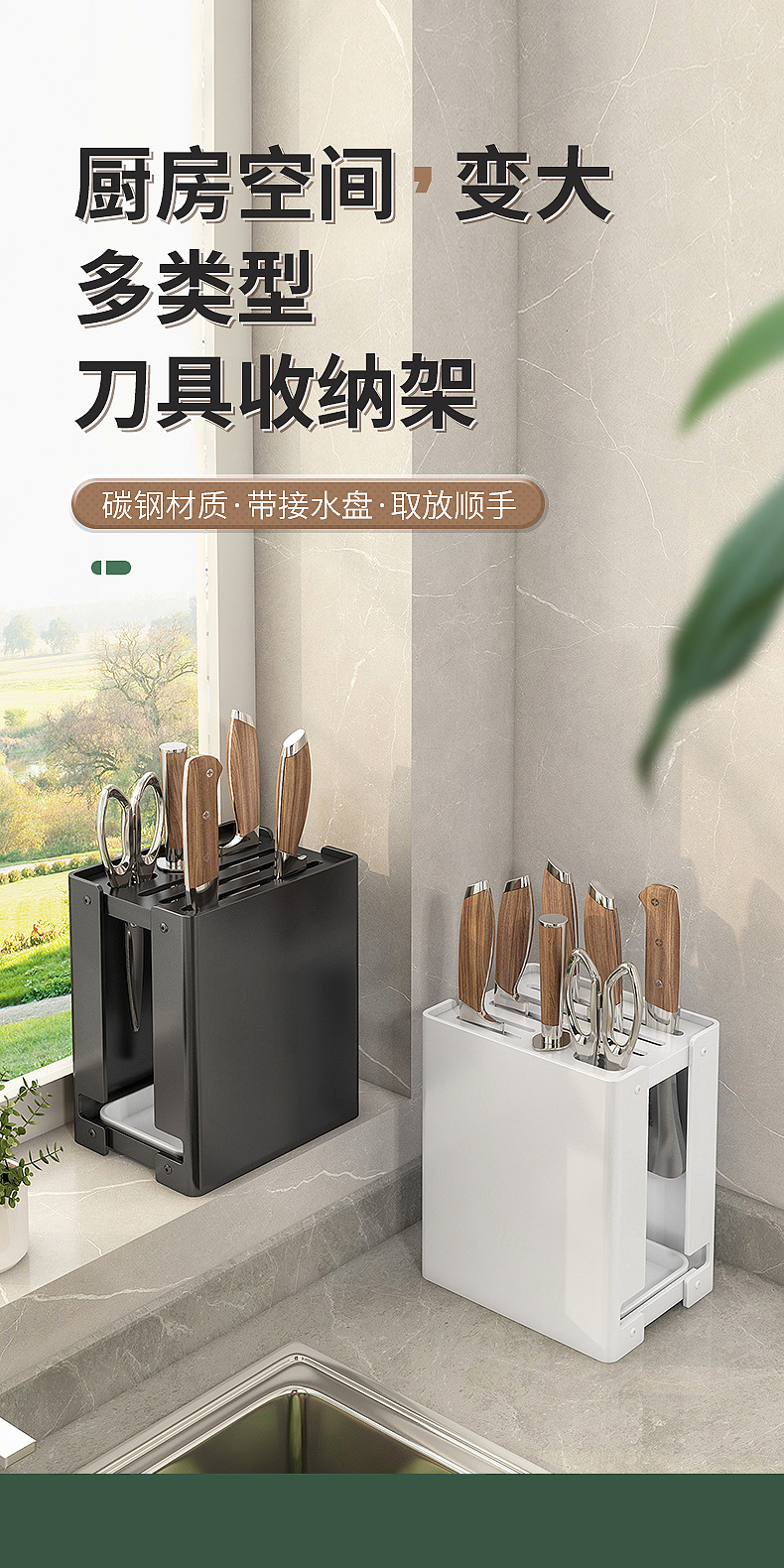 나이프 랙 다기능 스토리지 랙 주방 나이프 랙 커터 랙 주방 배수 자석 주방 창문 통합 스토리지 랙
