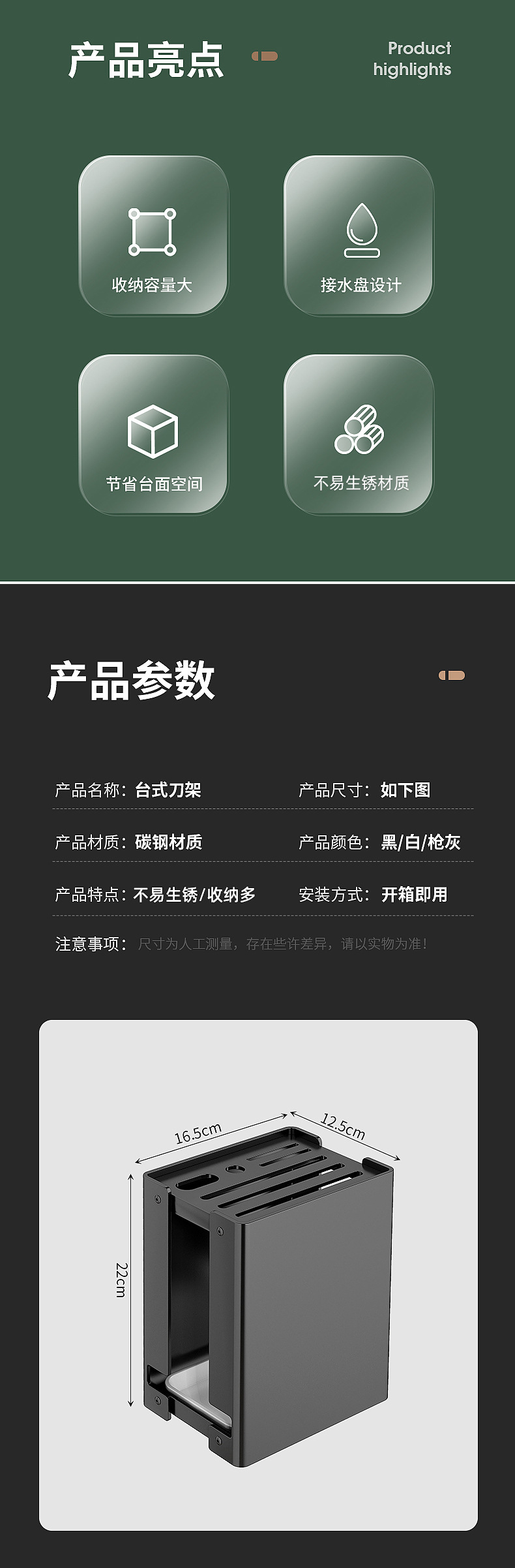 • 수직 카운터 나이프 홀더 (피치 블랙)