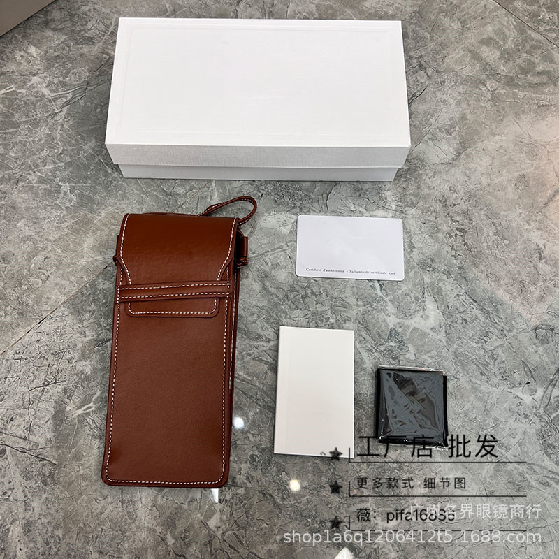 • 황금 차 다크 브라운 가죽 가방