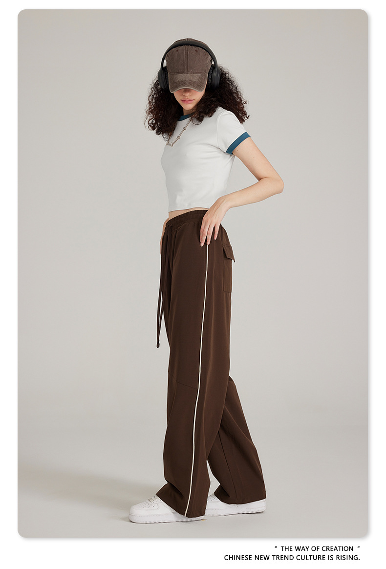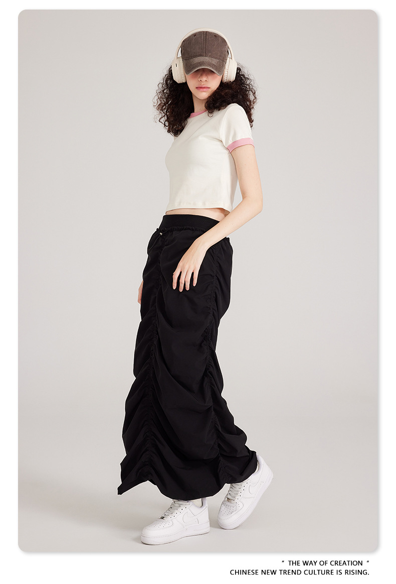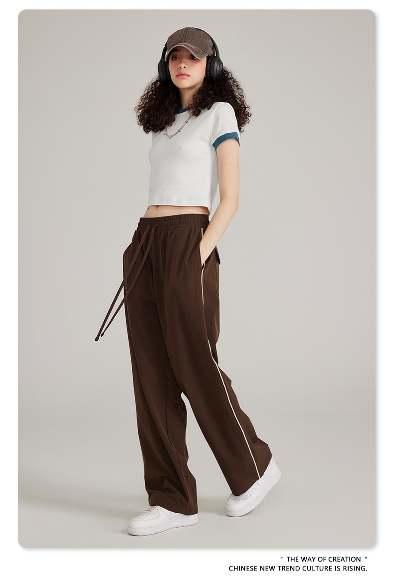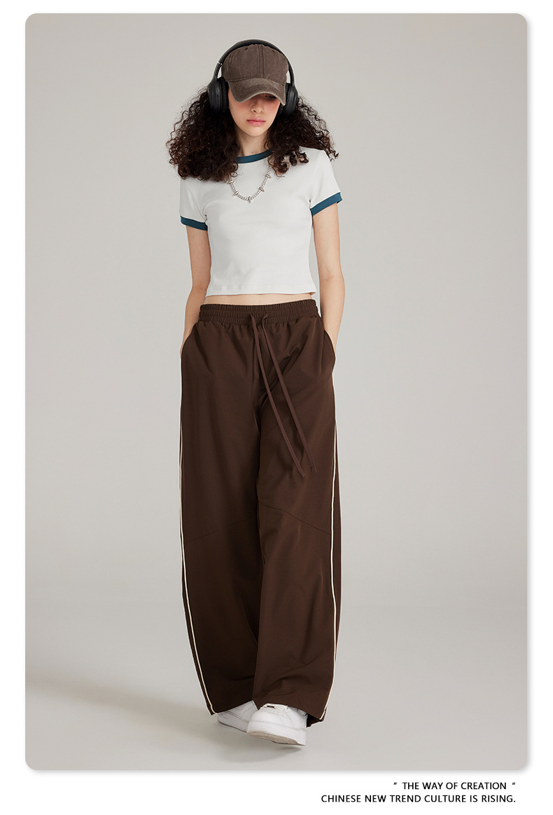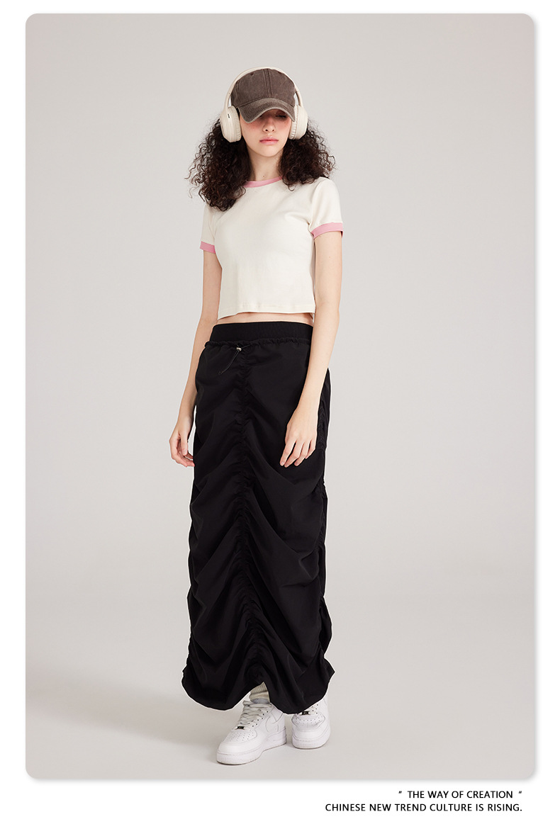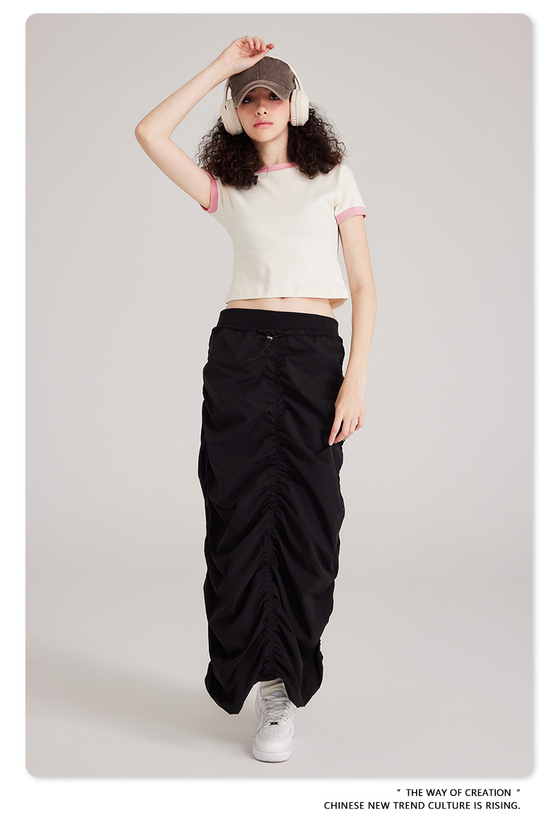 BE 여성 의류 여름 미국 복고풍 대비 색상 라운드 넥 반팔 핫 소녀 짧은 기능 배꼽 노출 오른쪽 어깨 티셔츠 트렌디 브랜드스토어 가기