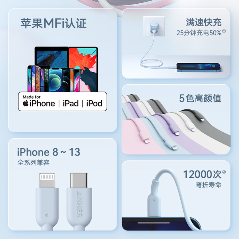Anker Anker 애플 아이폰 충전 라인 mfi 인증 0.98632 에 대한 고속 충전 데이터 케이블