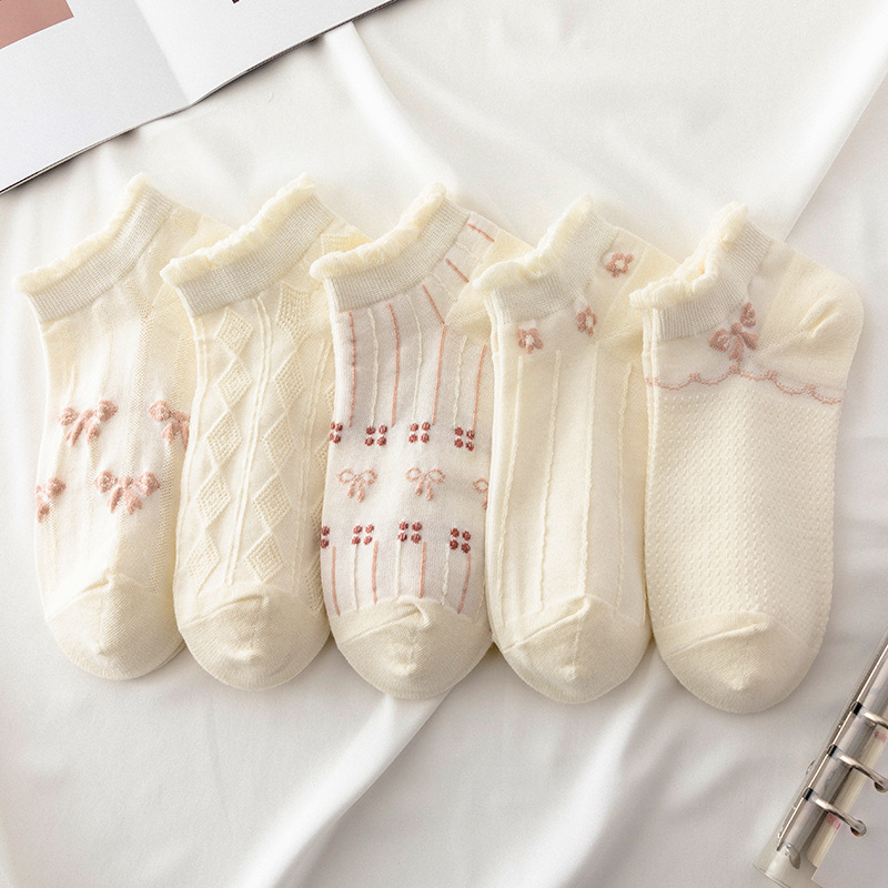 양말 여성용 짧은 양말 봄과 여름 얇은 최신 유행 온라인 인기 귀여운 귀여운 만화 저층 흰색 얕은 입 보트 양말